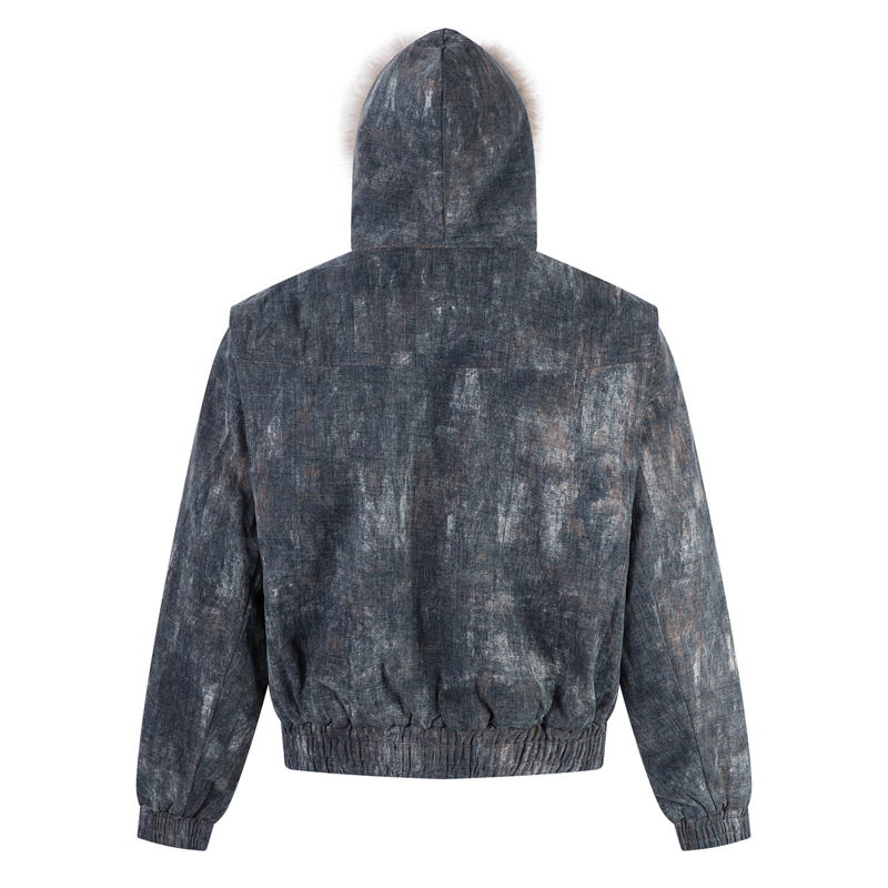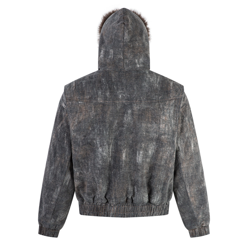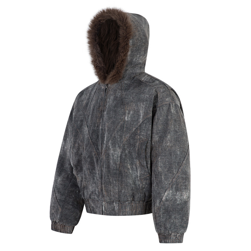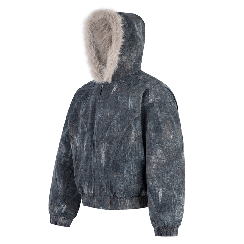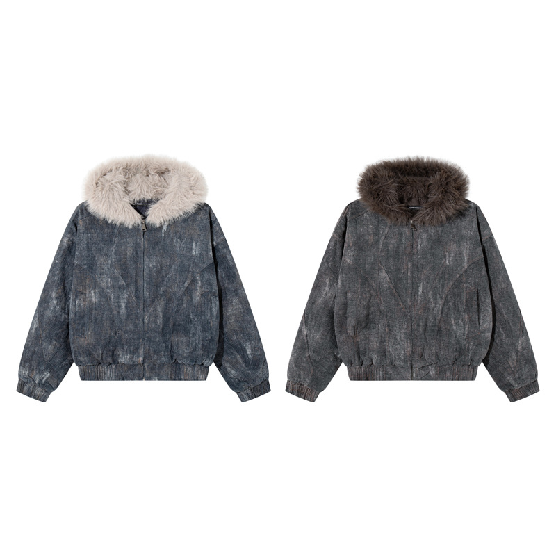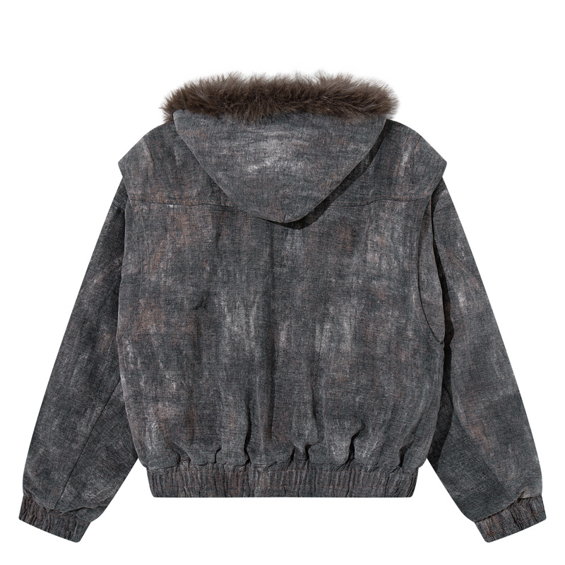 겨울 복고풍 트렌디 브랜드 디자인 짧고 넓은 발효 가공 Zhishandiao 후드 코튼 재킷 남성과 여성을위한 같은 스타일 루즈 자켓