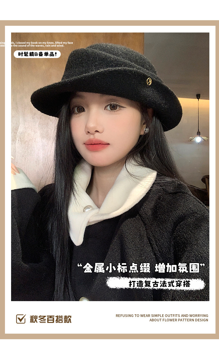 가을 겨울 여성을 위한 프렌치 햅번 스타일의 우아한 모직 컬 모자 새로운 복고풍 다용도 작은 어부 모자