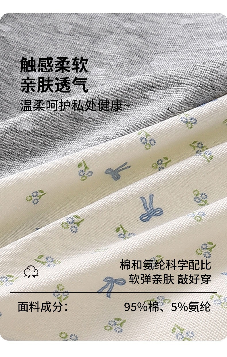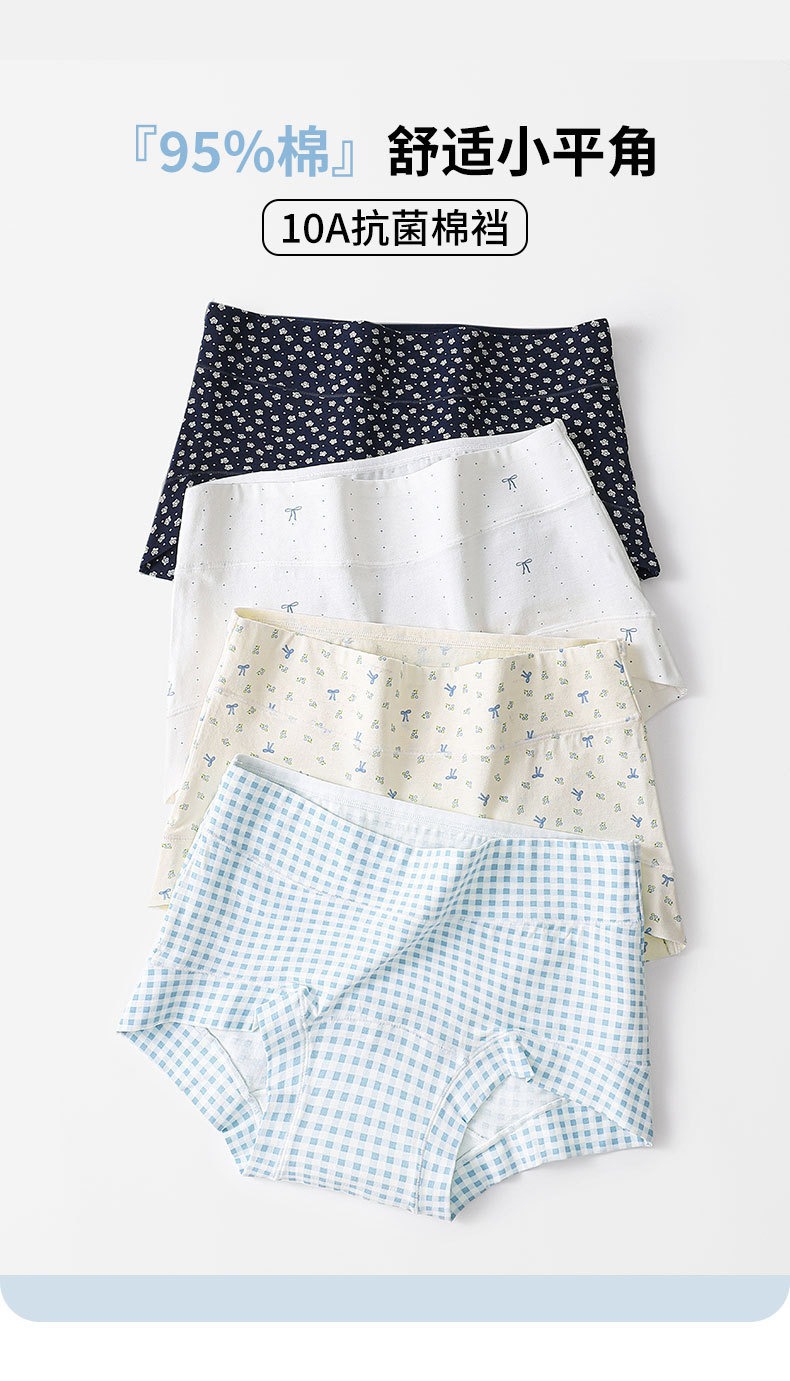 신선한 프린트 순면 소형 복서 여성 속옷 중간 허리 피부 친화적 인 통기성 10A 항균 확장 가랑이 순면 여성 속옷