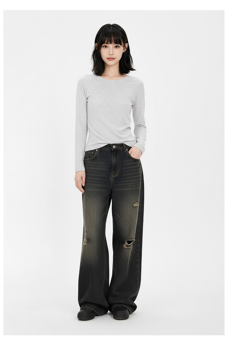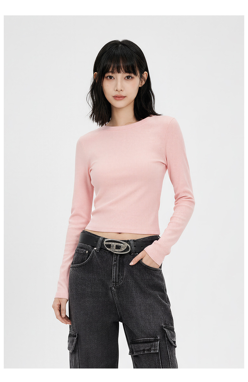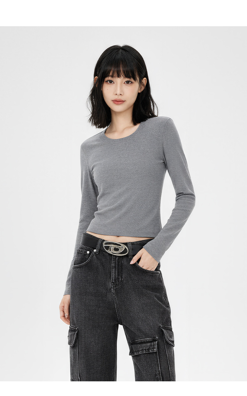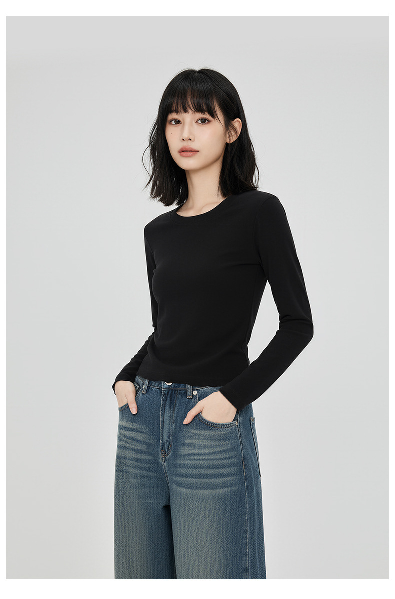 가을 겨울 단색 다용도 헤비웨이트 라운드넥 긴팔 티셔츠 여성 슬림핏 신상 이너웨어 베이스 레이어 탑 티셔츠