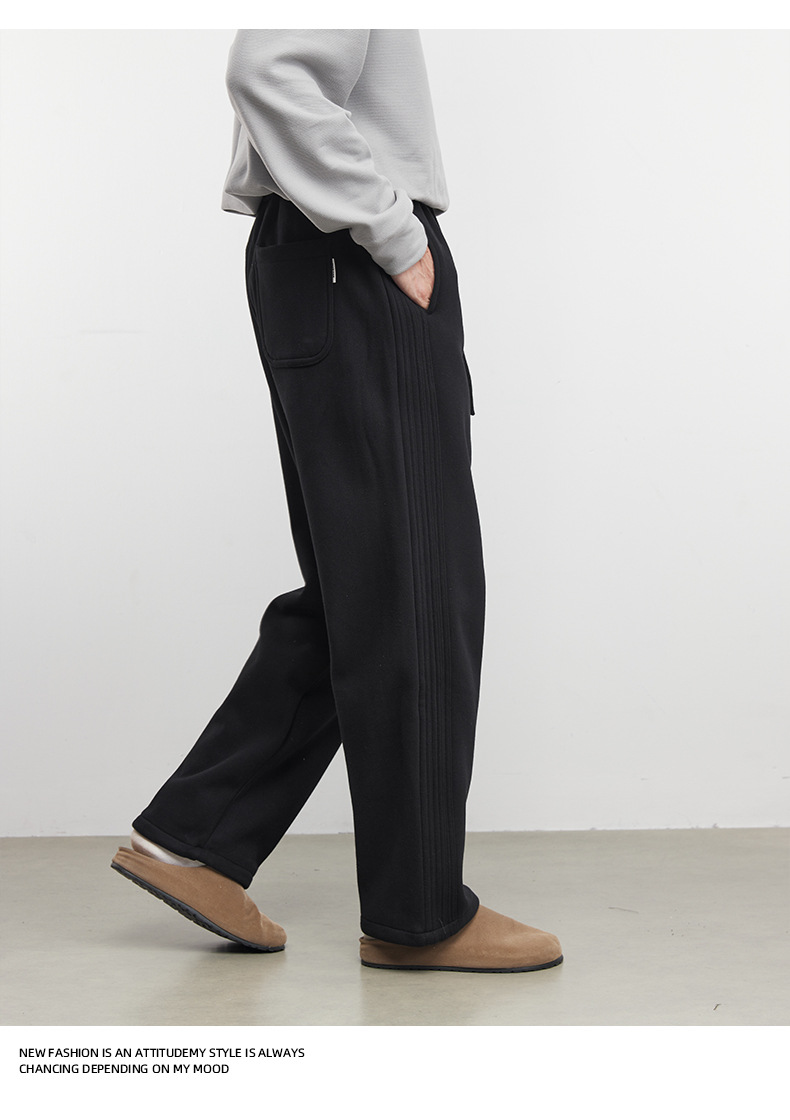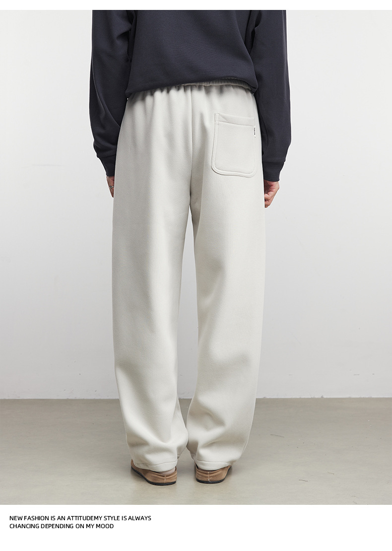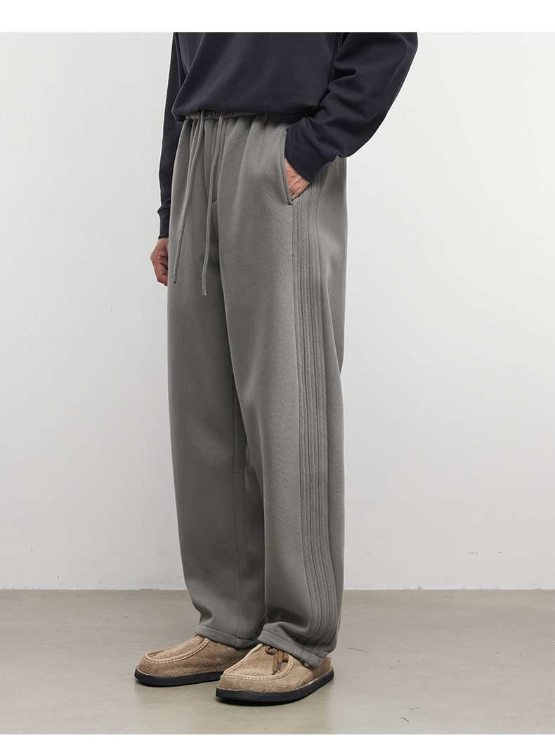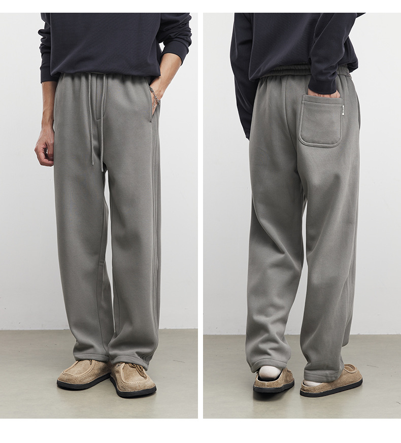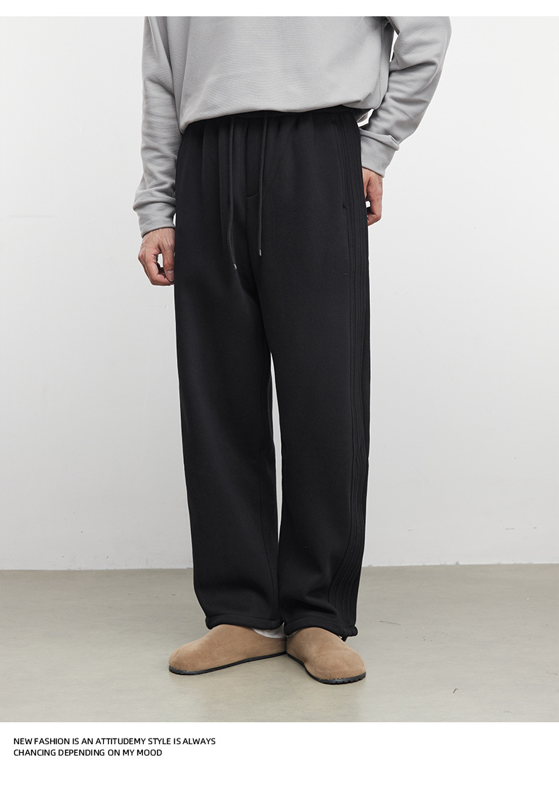 Yizhi "Pleated" 남성용 사이드 슬릿 플리츠 스트레이트 스웨트팬츠 가을 겨울 벨벳 루즈 드레이프 와이드 레그 스웨트팬츠