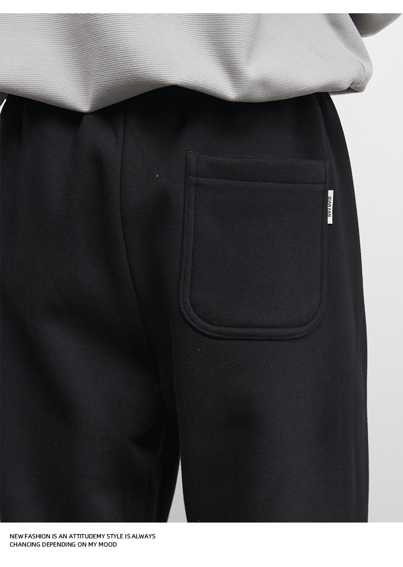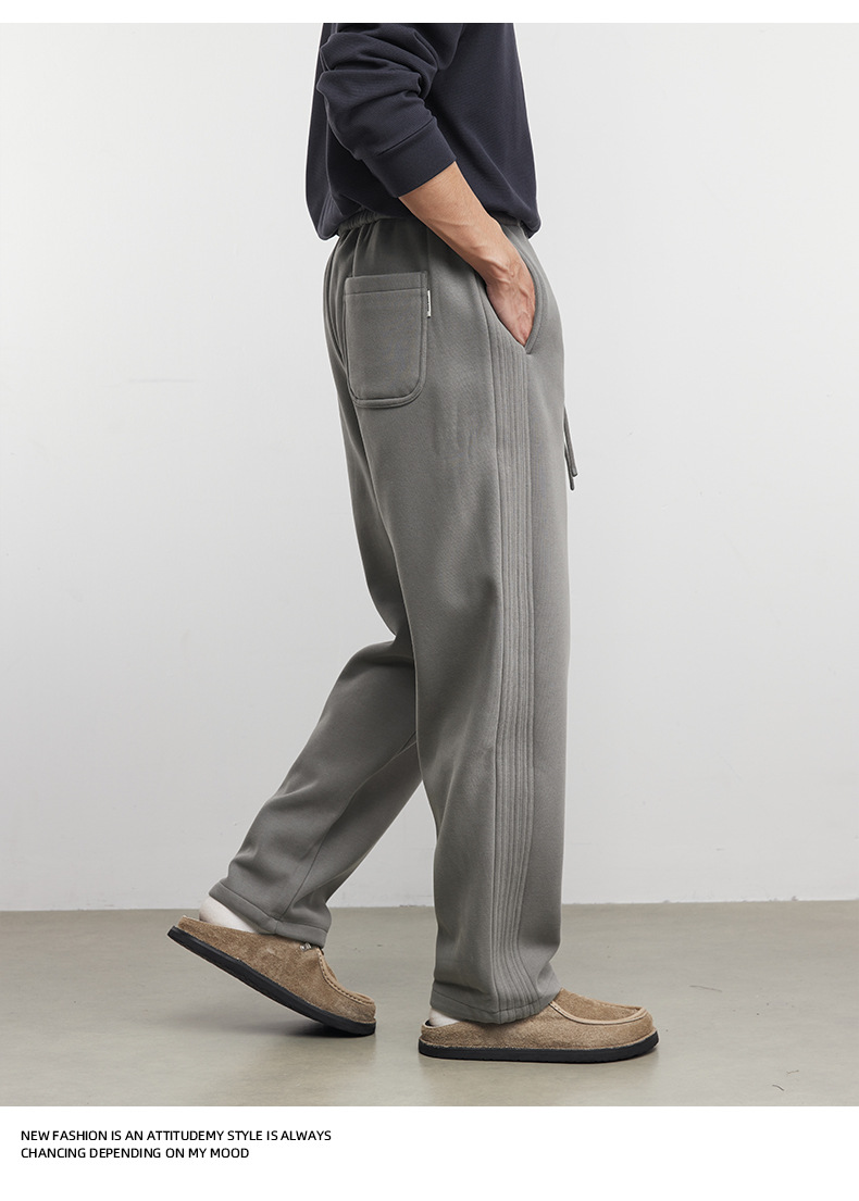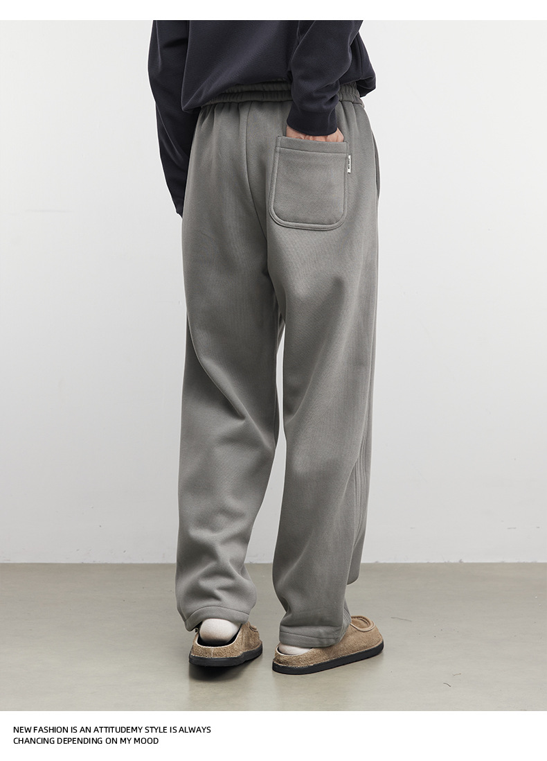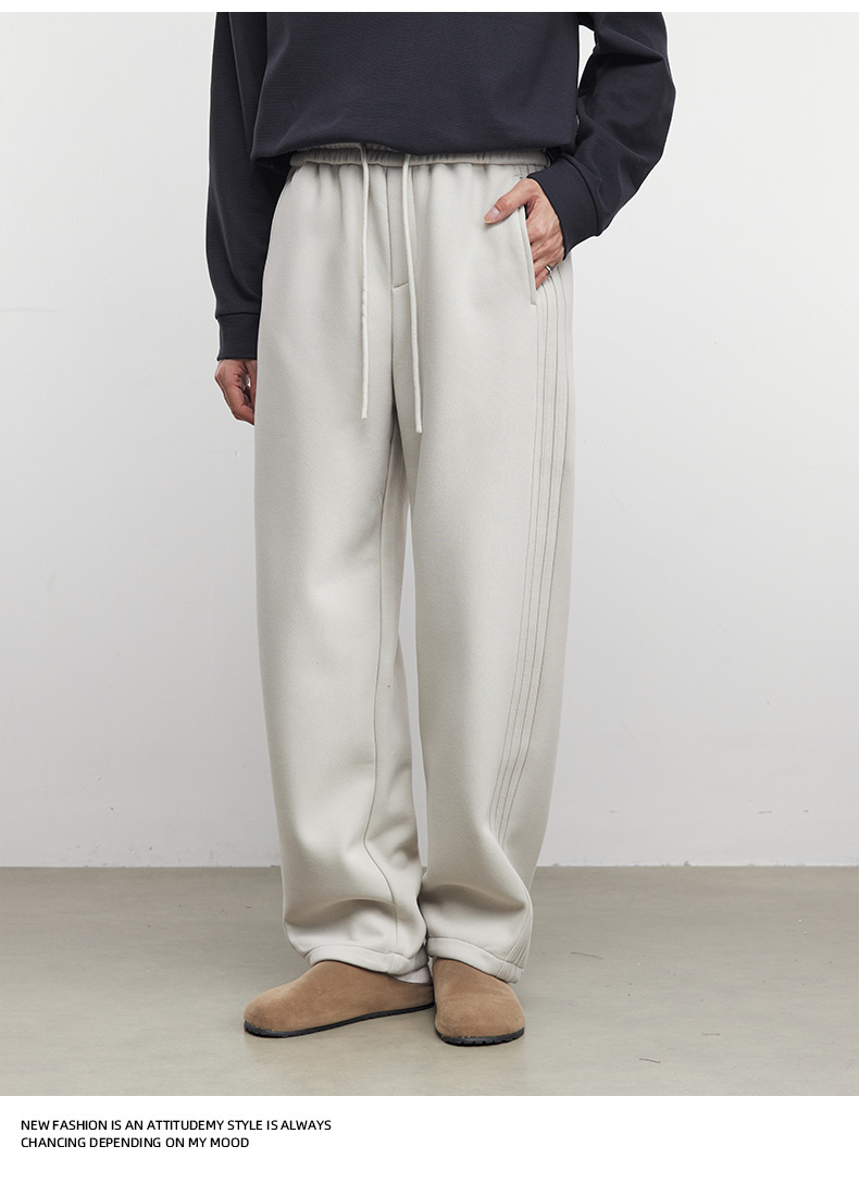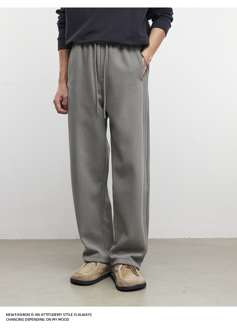 Yizhi "Pleated" 남성용 사이드 슬릿 플리츠 스트레이트 스웨트팬츠 가을 겨울 벨벳 루즈 드레이프 와이드 레그 스웨트팬츠