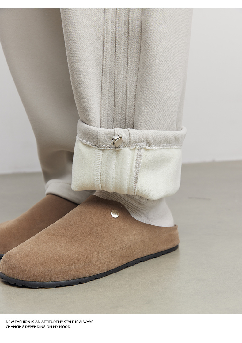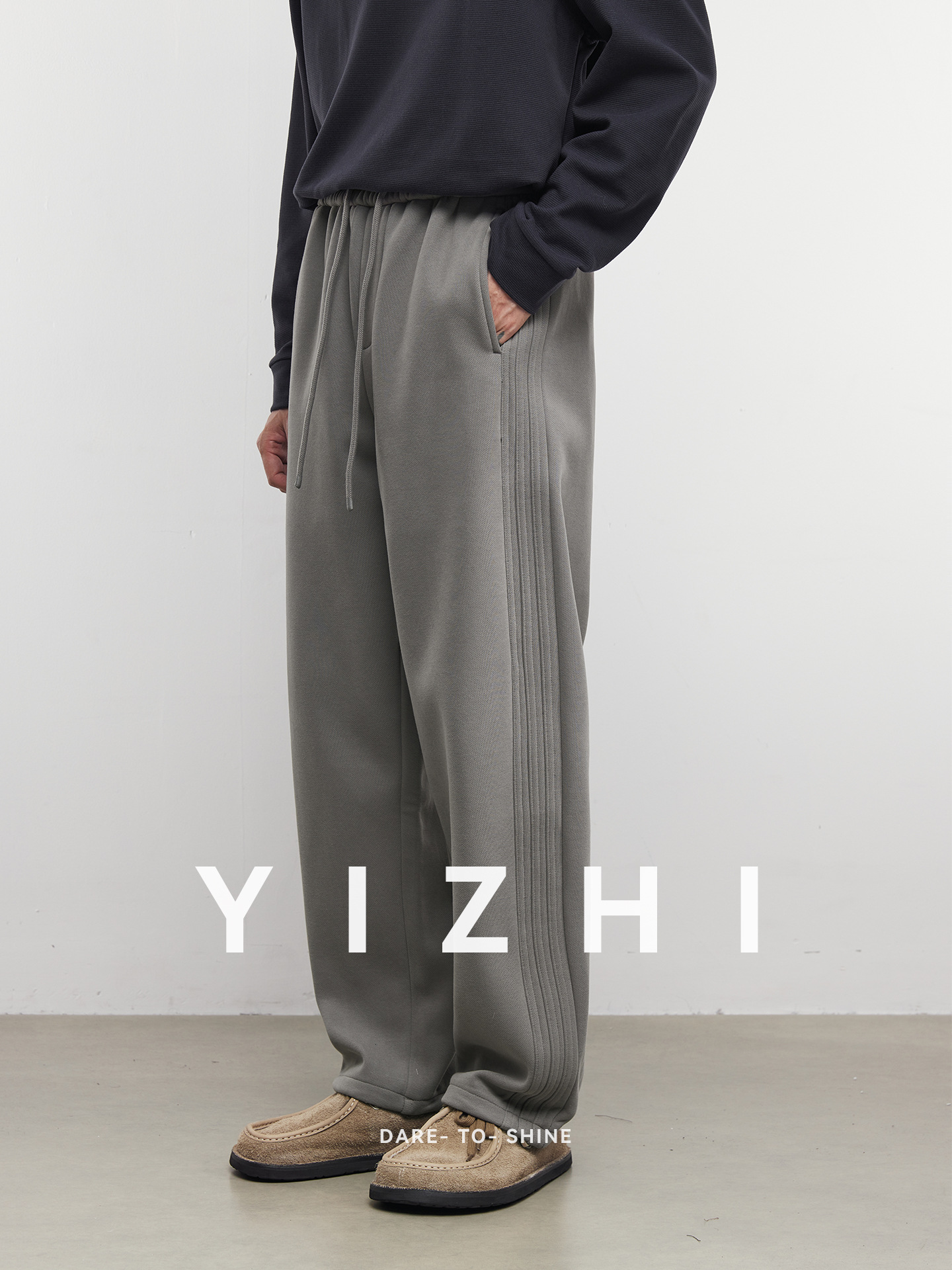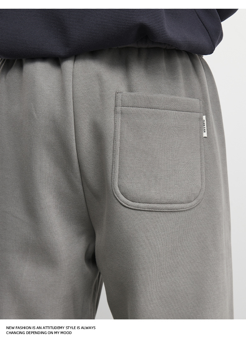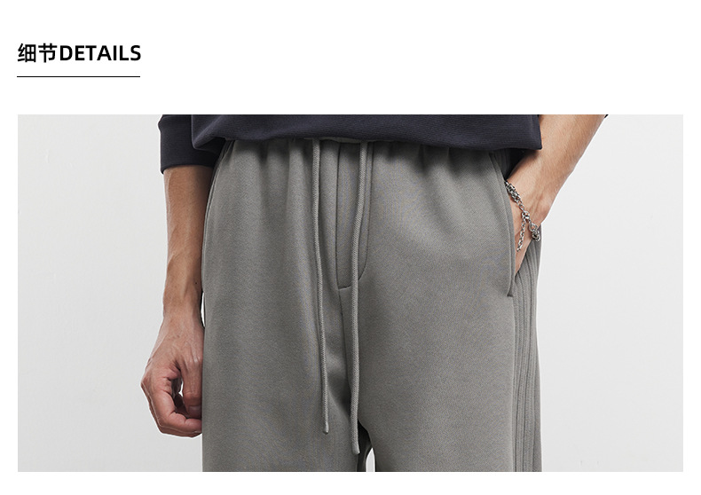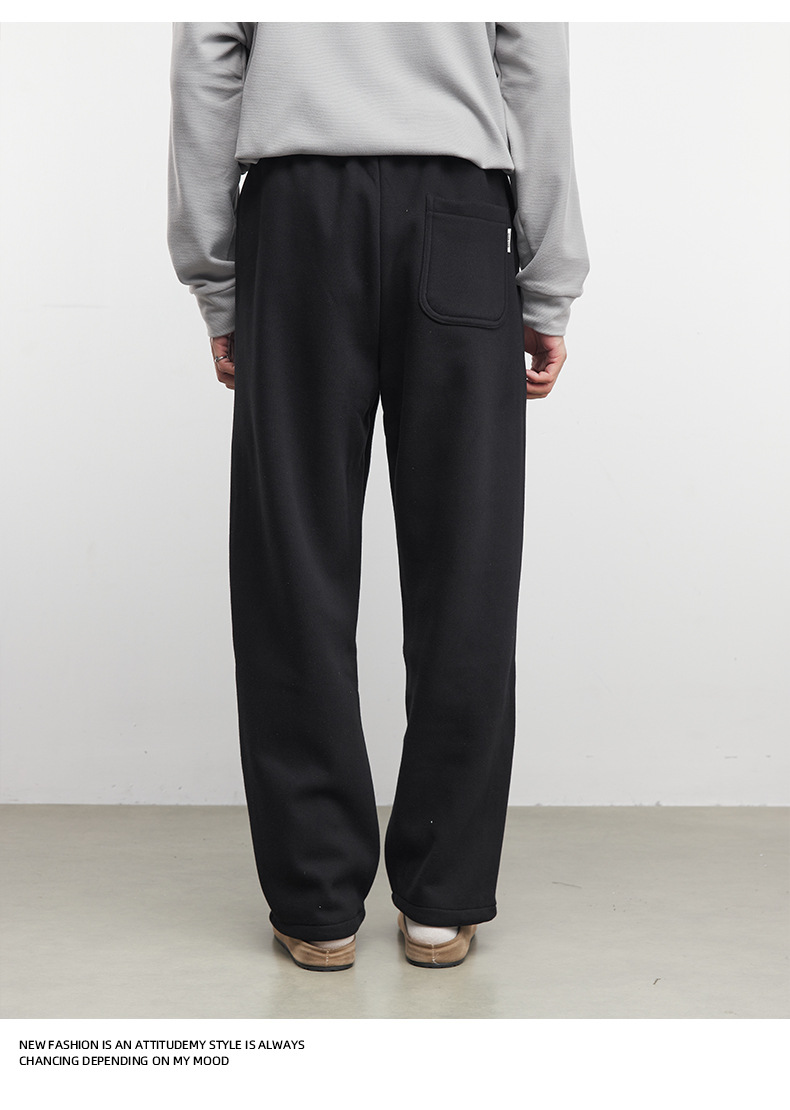 Yizhi "Pleated" 남성용 사이드 슬릿 플리츠 스트레이트 스웨트팬츠 가을 겨울 벨벳 루즈 드레이프 와이드 레그 스웨트팬츠