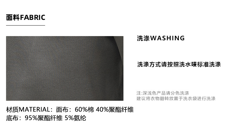 | 主面料成分 | 棉 | 主面料成分的含量 | 60 |