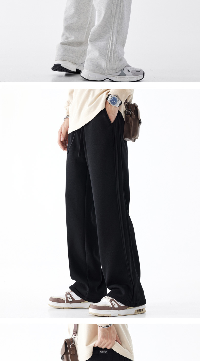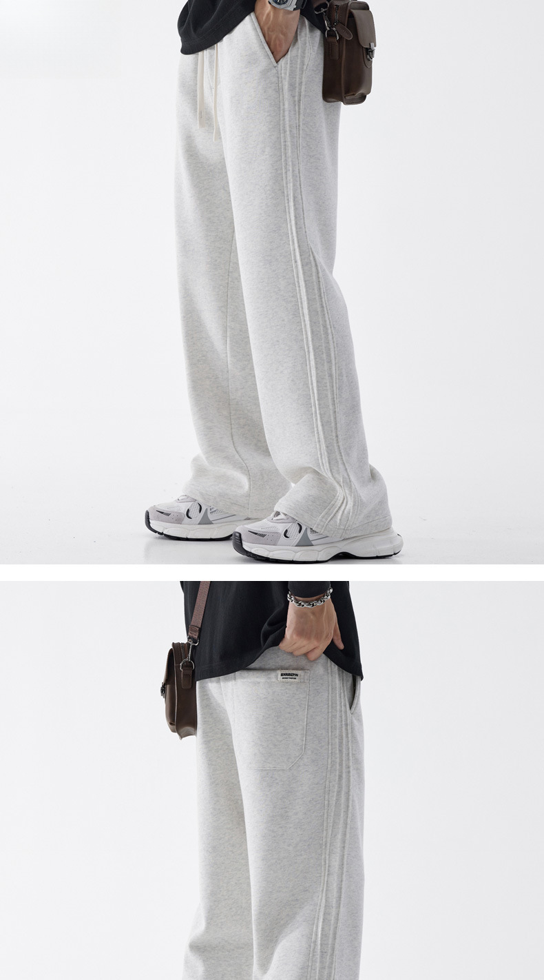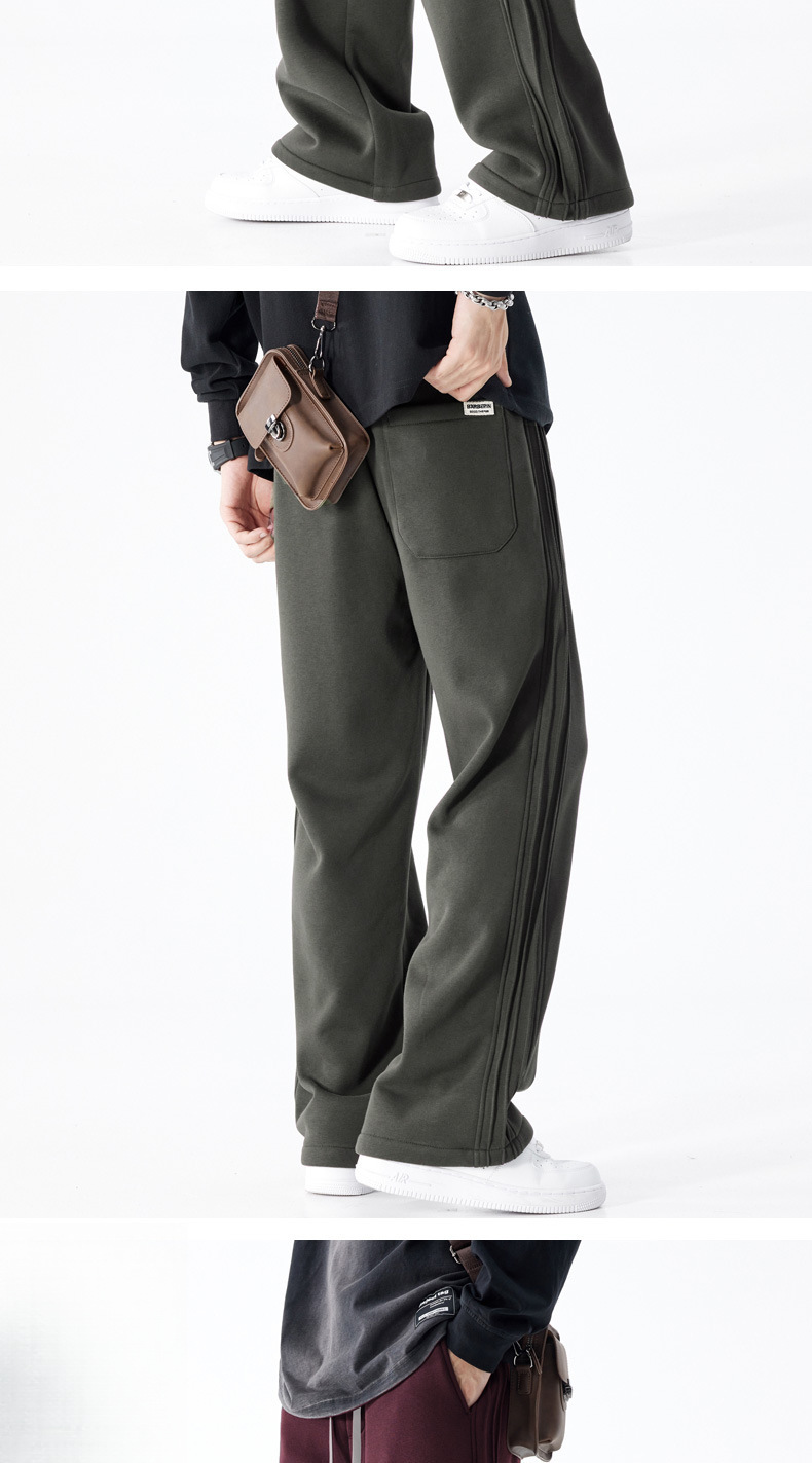 남성용 아메리칸 스포츠 바지 2025 가을 겨울 새로운 스타일 벨벳 두꺼운 루즈 스트레이트 캐주얼 긴 바지