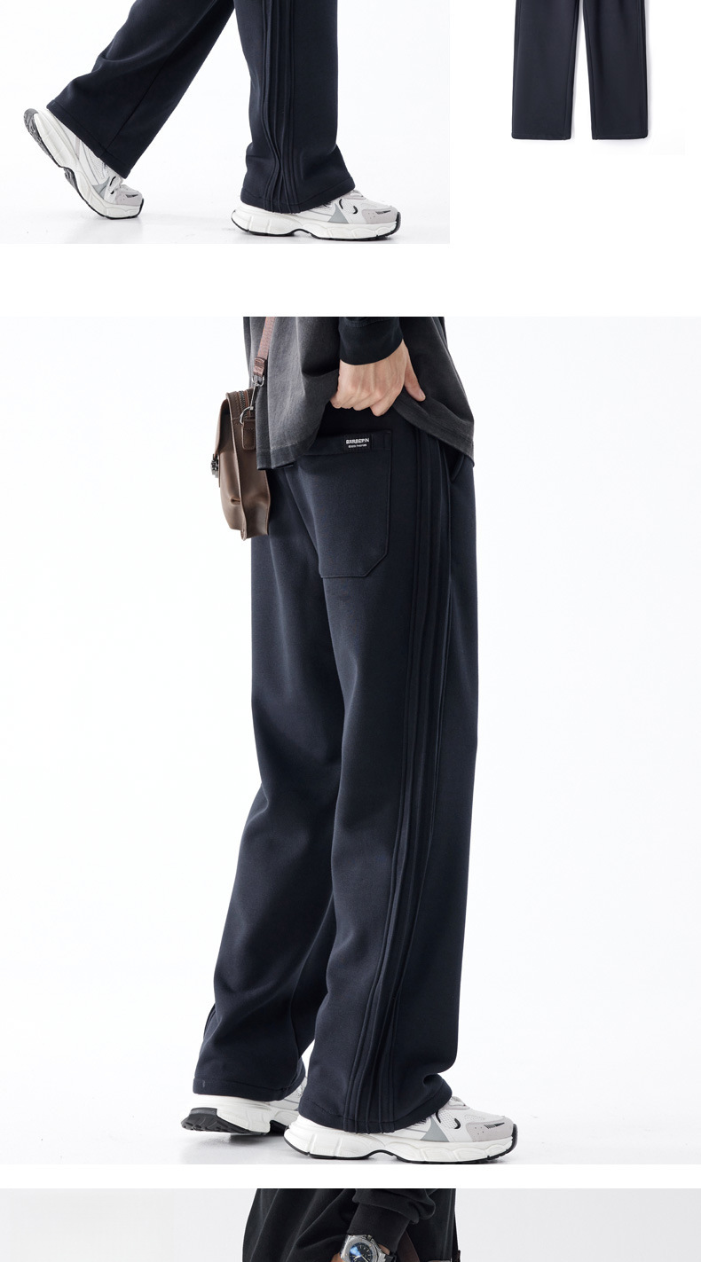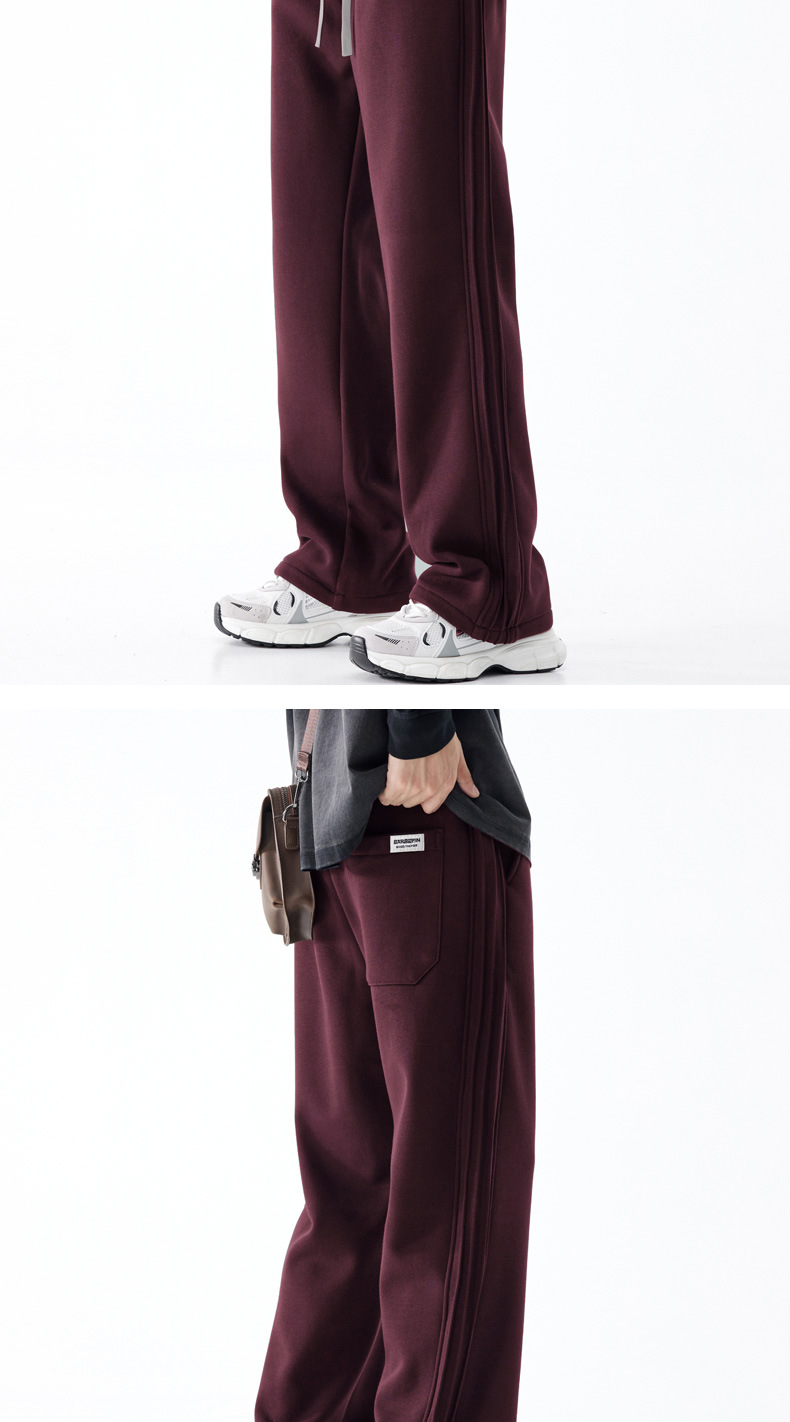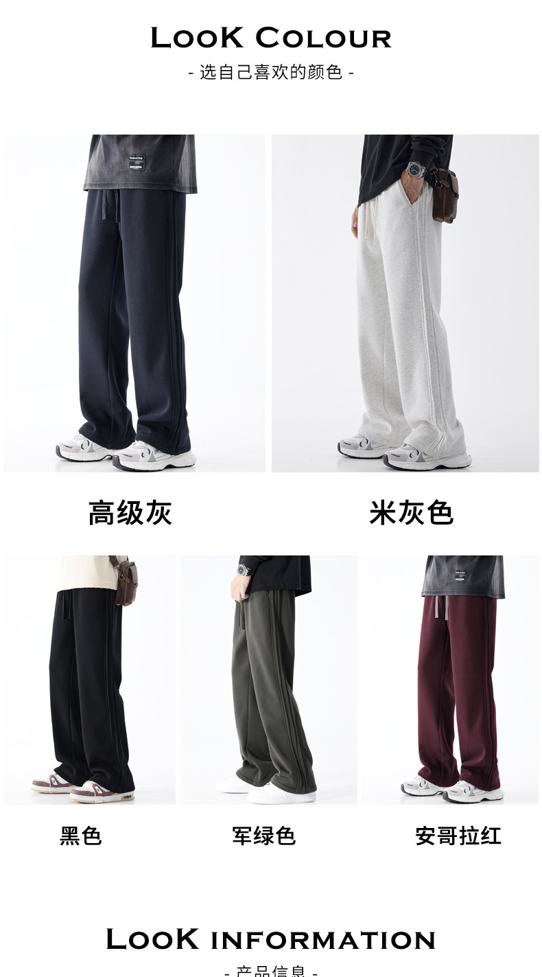 남성용 아메리칸 스포츠 바지 2025 가을 겨울 새로운 스타일 벨벳 두꺼운 루즈 스트레이트 캐주얼 긴 바지