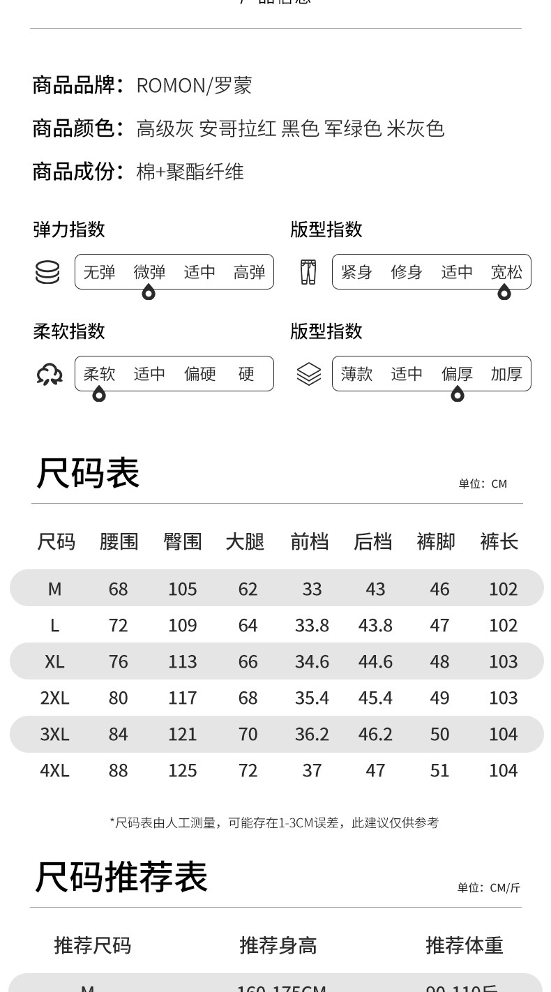 | 裤门襟 | 拉链开襟 | 厚薄 | 厚款 |