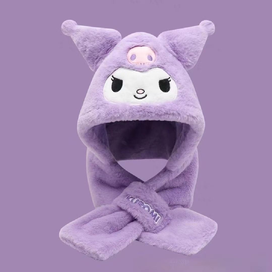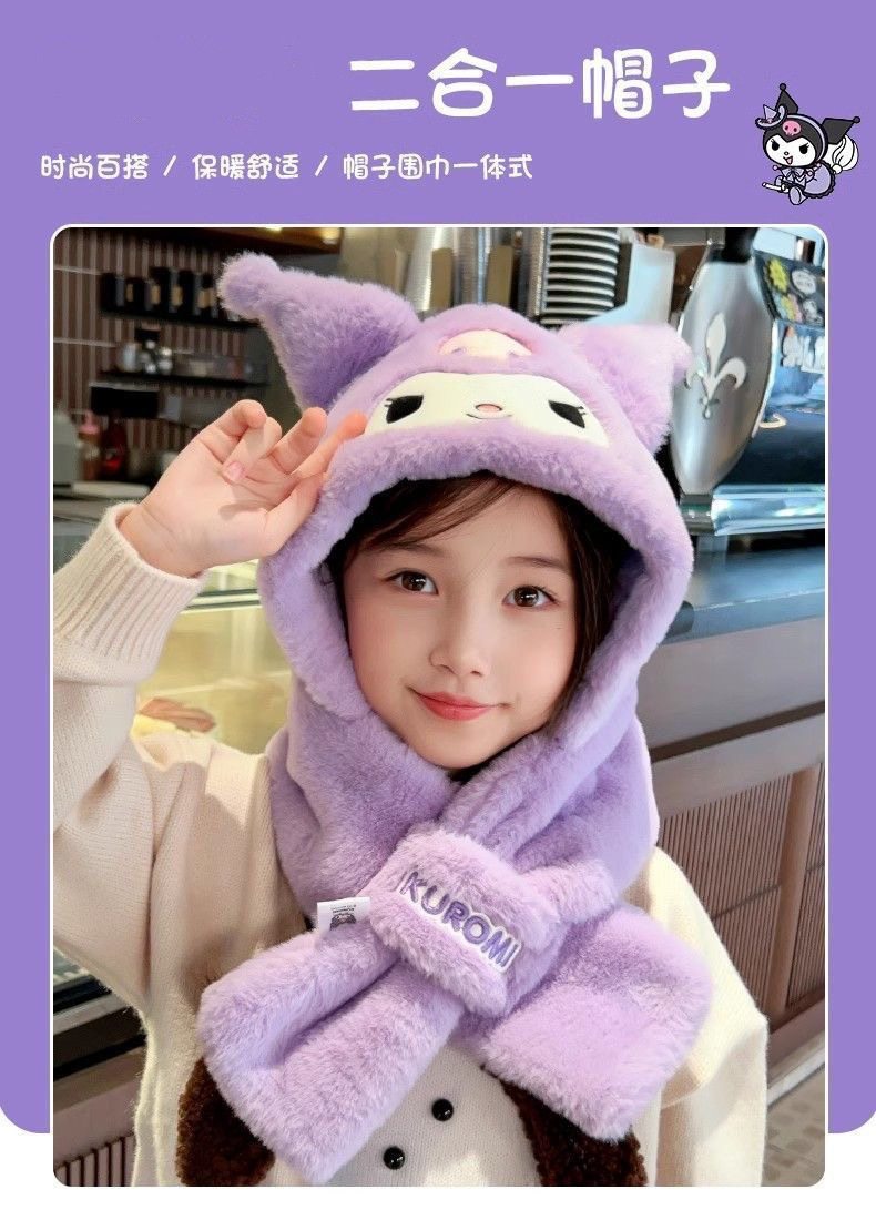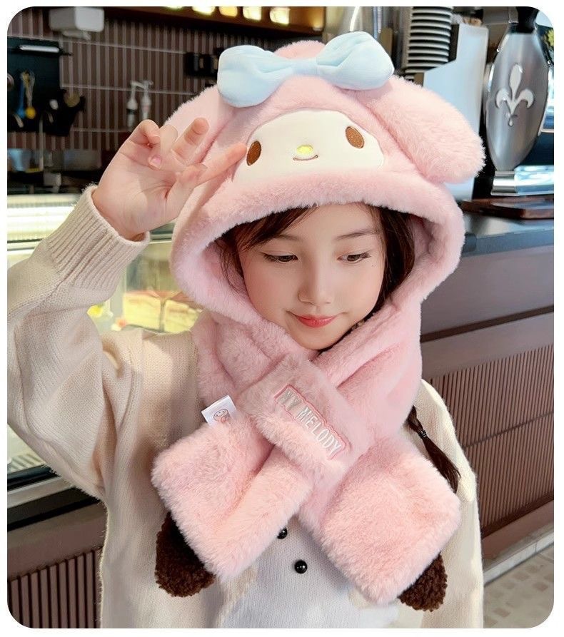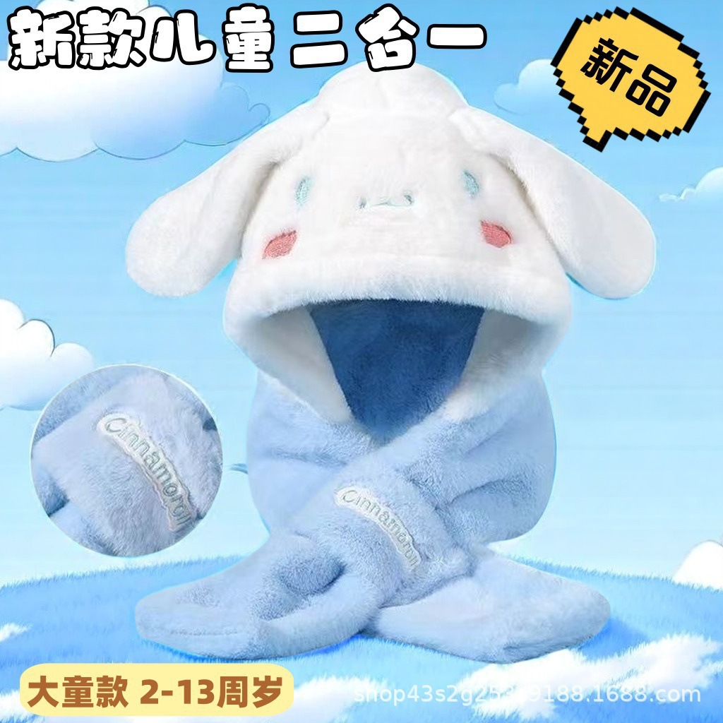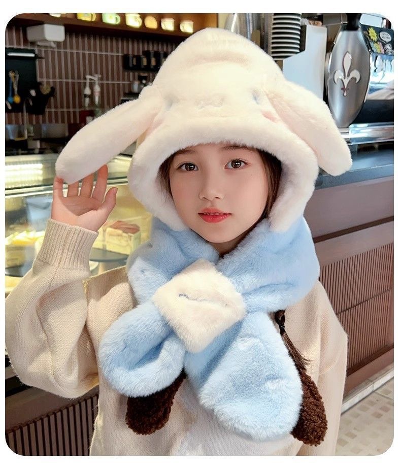 가을, 겨울 계피 개 래브 브레드 멜로디 어린이 모자 스카프 올인원 모자 겨울 따뜻하고 귀여운 만화 어린이