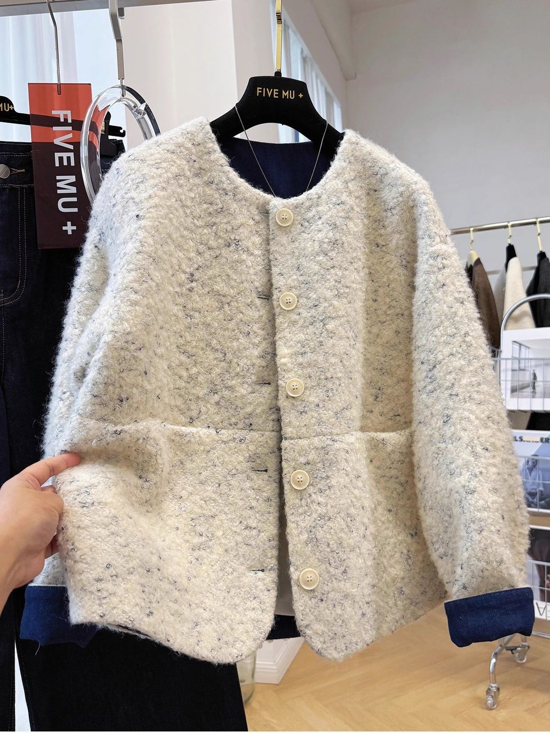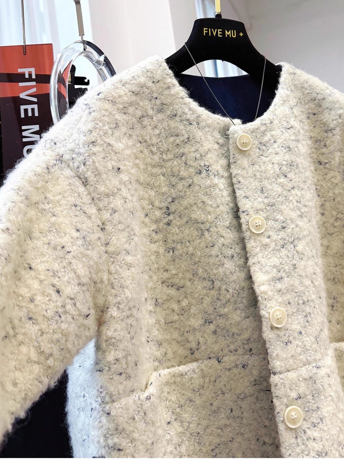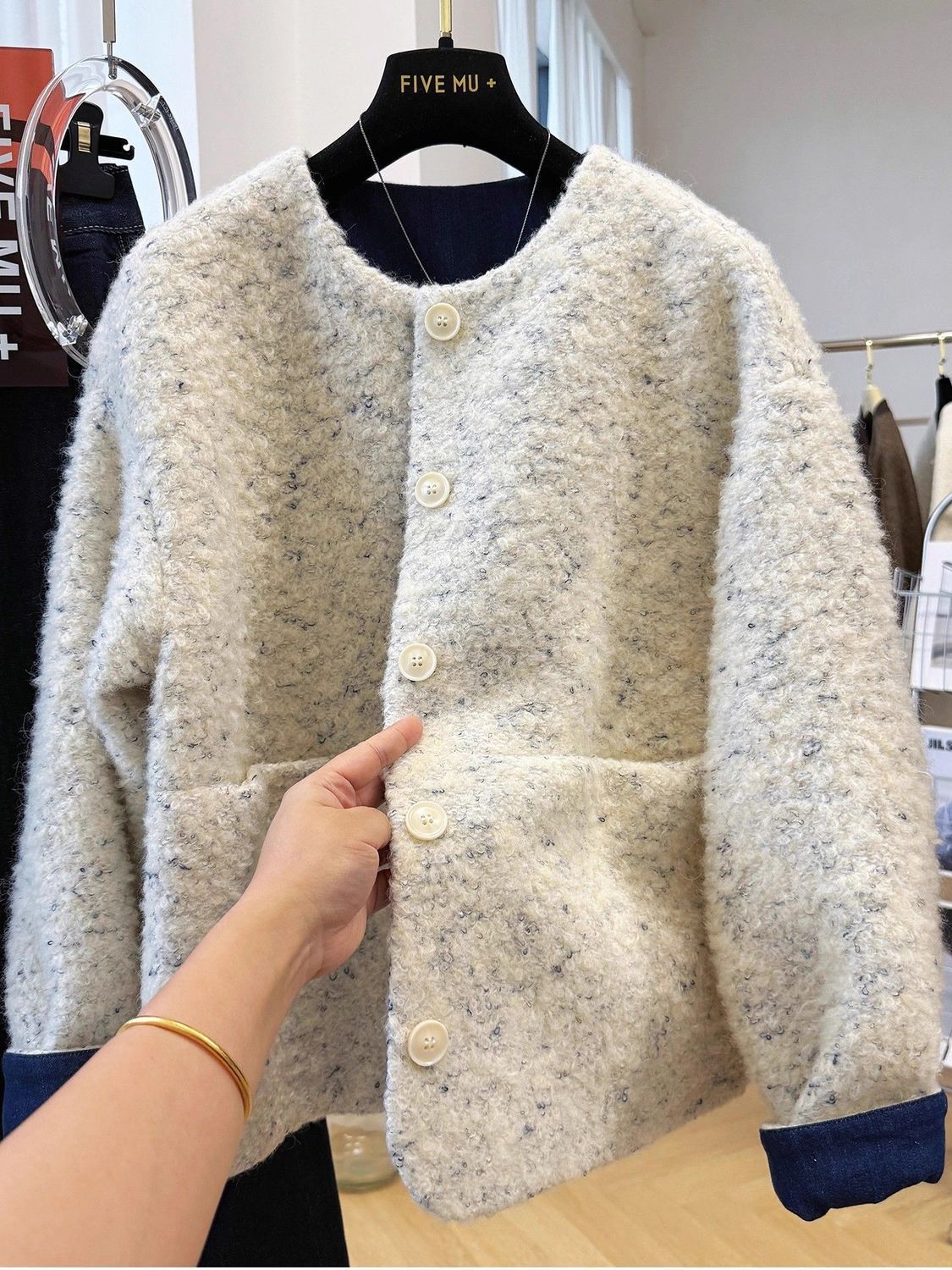 2025년 새로운 한국식 중간 두께의 라운드 넥 짧은 재킷 여성 가을, 겨울 독특하고 멋진 모직 재킷