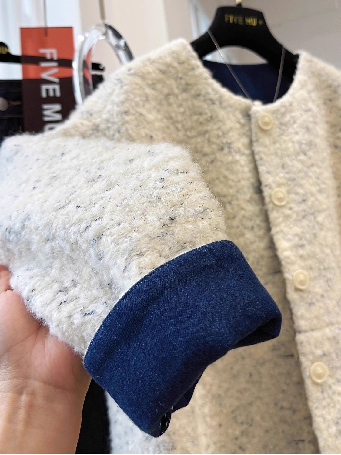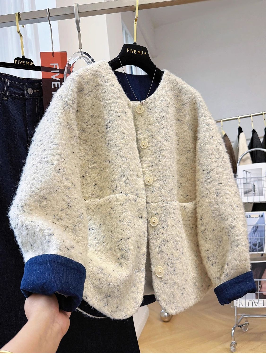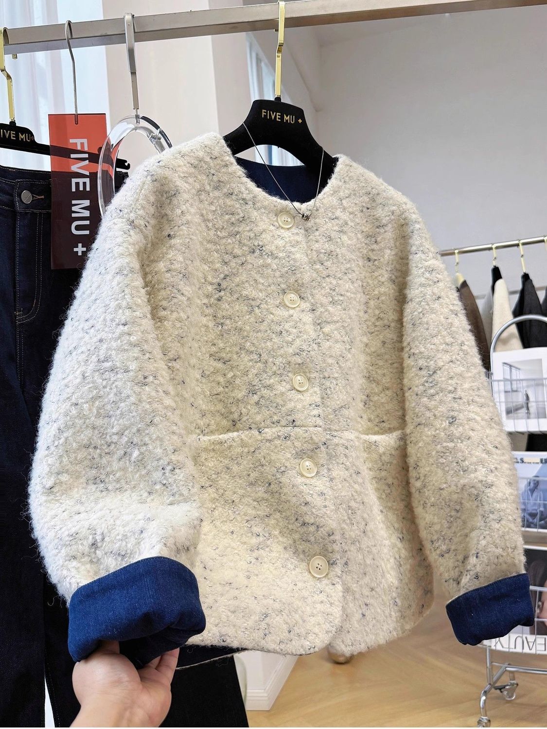 2025년 새로운 한국식 중간 두께의 라운드 넥 짧은 재킷 여성 가을, 겨울 독특하고 멋진 모직 재킷