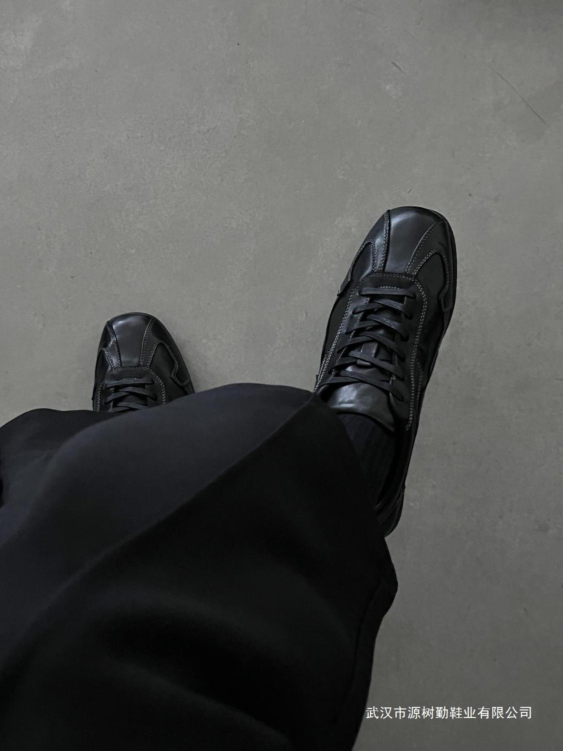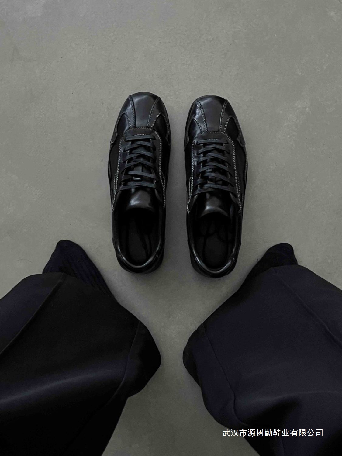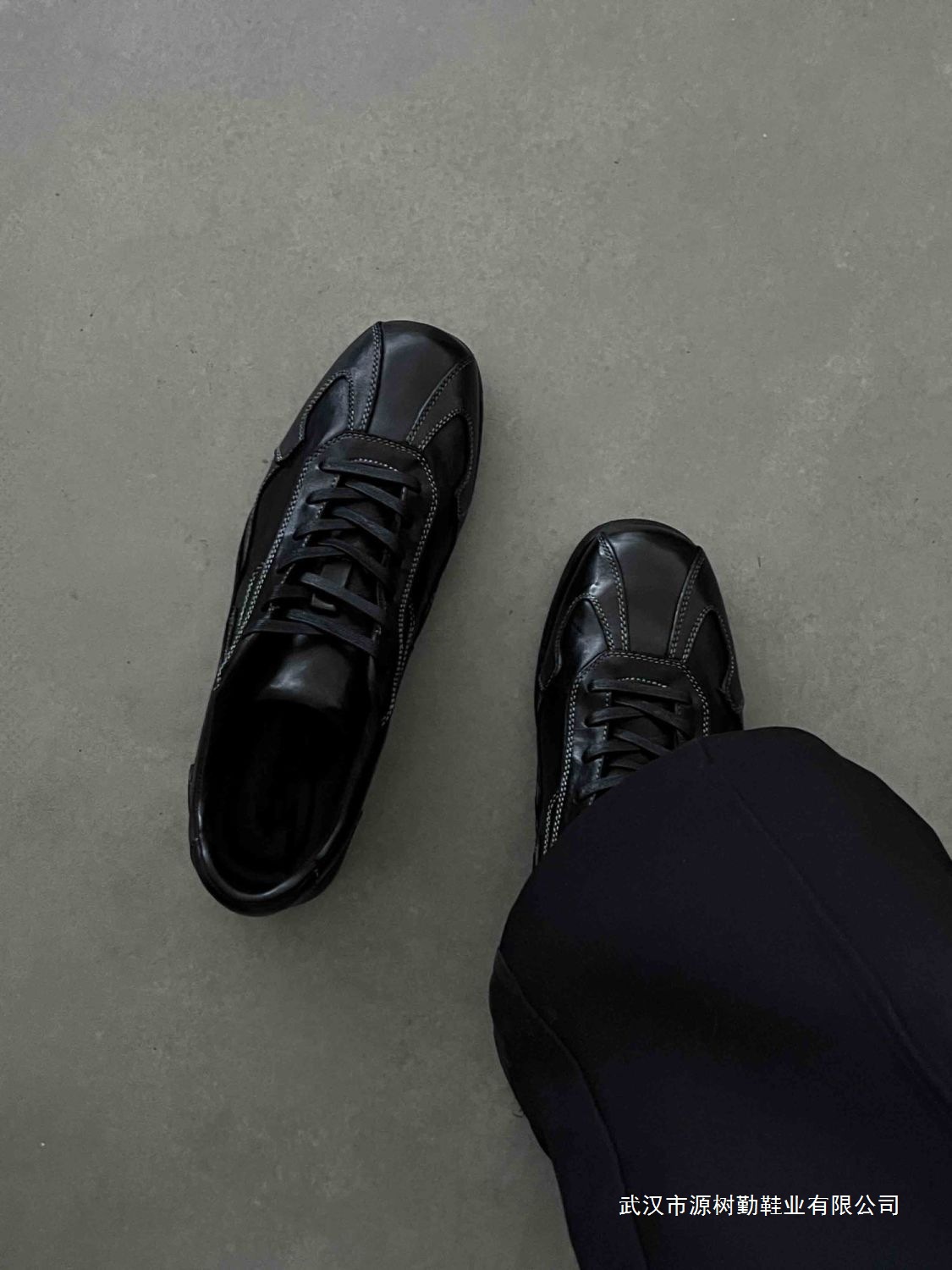 남성용 간단한 검은색 훈련 신발, 플랫 밑창 복고풍 고급 통근 소형 가죽 신발, 클린핏 캐주얼 더비 신발