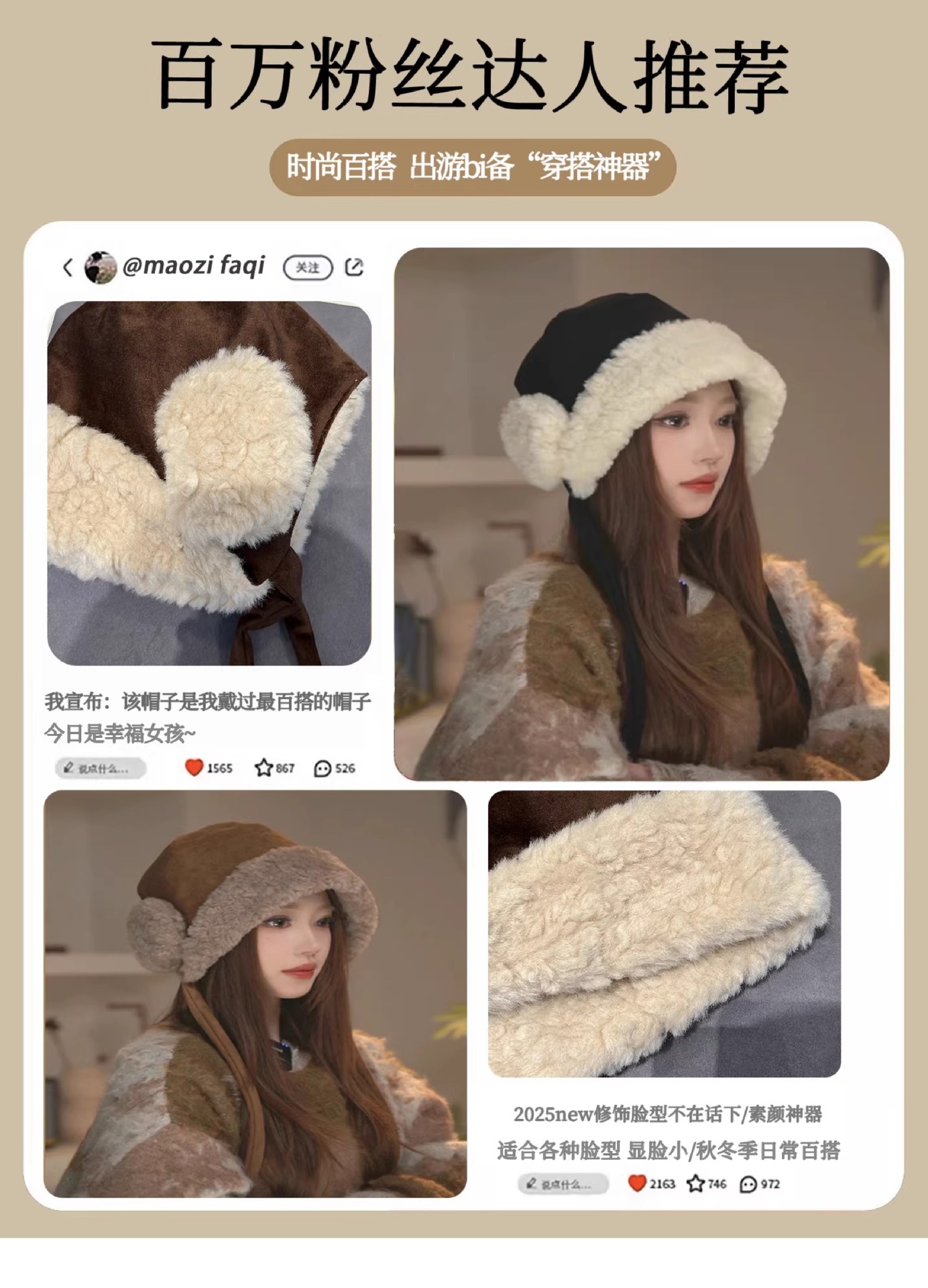 2025년 신작 가을 겨울 여성용 다용도 니트 모자, 두꺼워서 추위로부터 보호하고 귀를 보호하며 머리 둘레가 크고 일본식 방풍 사이클링 트렌드