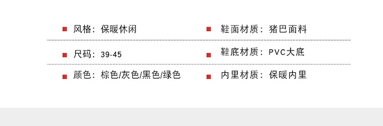 | 颜色 | 黑色升级款, 棕色升级款, 灰色升级款, 绿色升级款, 黑色, 棕色, 灰色, 绿色 | 尺码 | 39, 40, 41, 42, 43, 44, 45 |