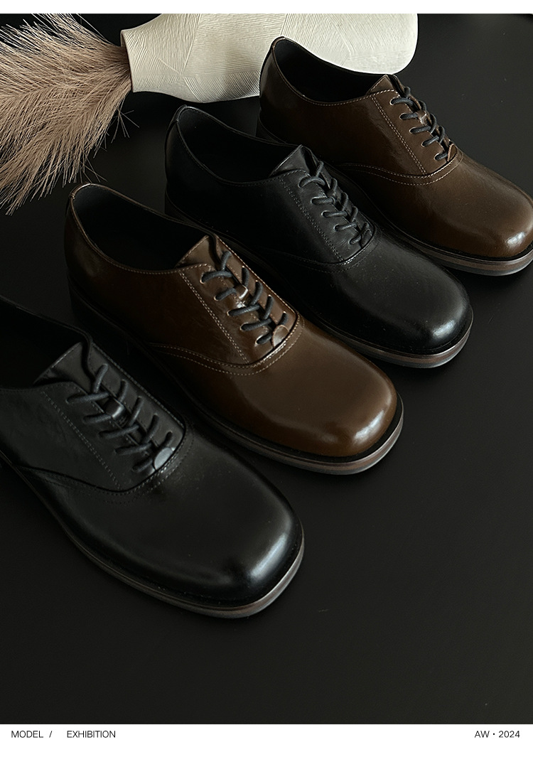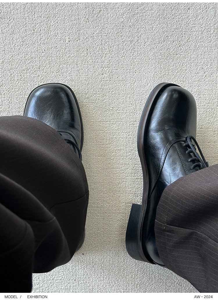 최상급 말기름 소가죽 안감 양가죽 클린핏 스퀘어토 더비 키높이 가죽 신발 남녀공용
