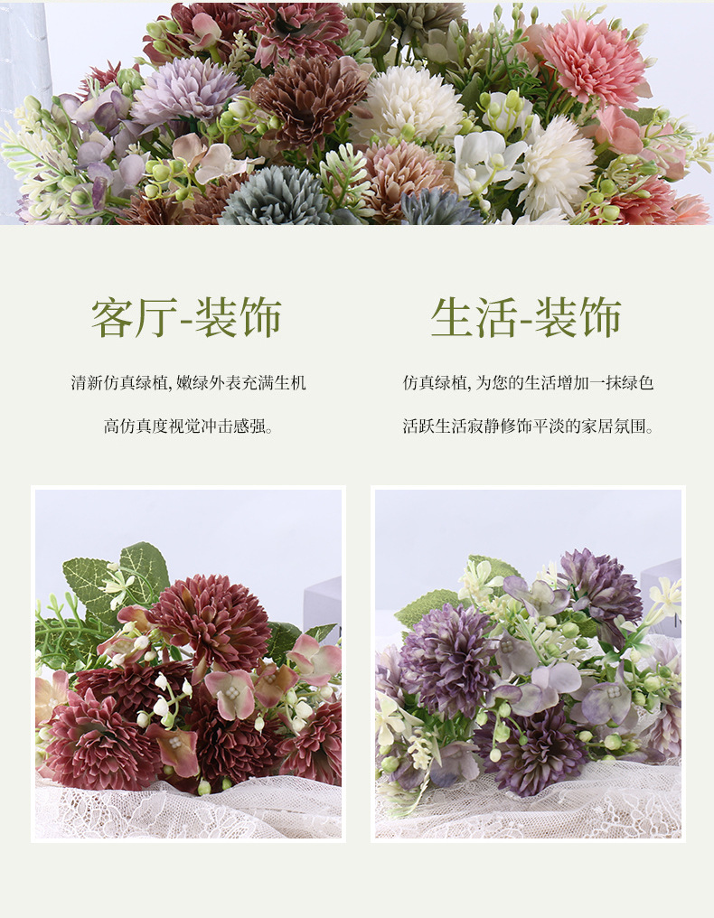 국경 간 아마존 조화 유럽 국화 장식 실크 꽃 카모마일 거실 사진 장식 꽃꽂이 꽃다발 가짜 꽃