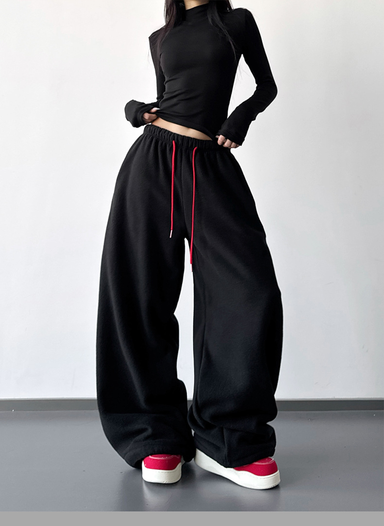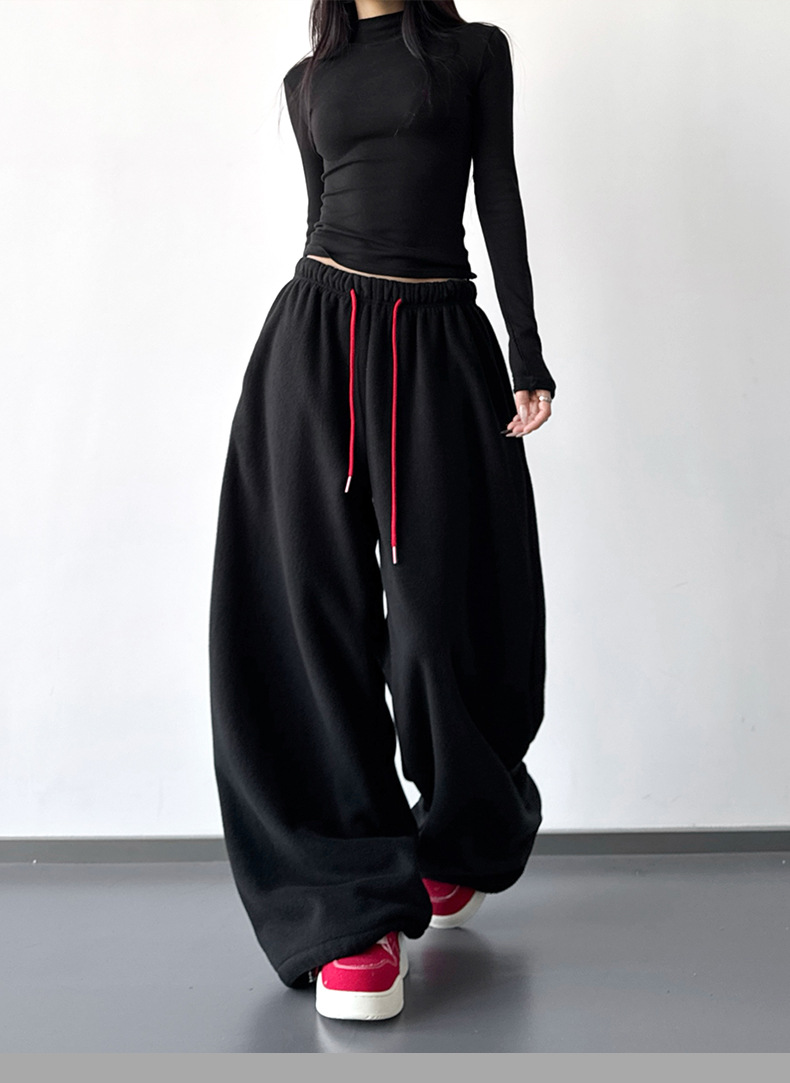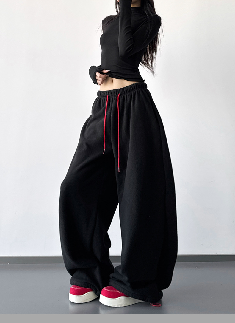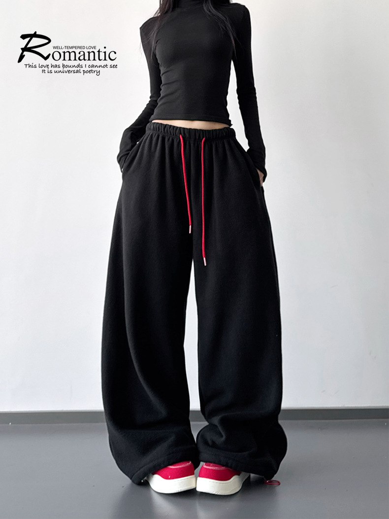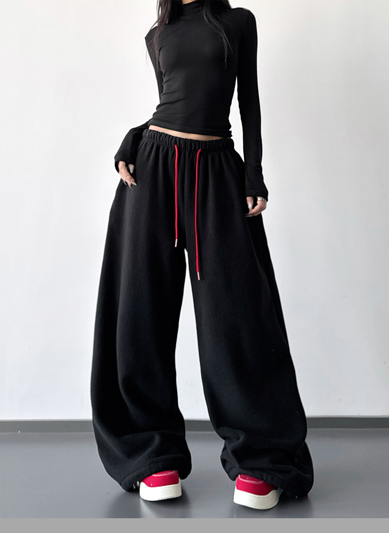 여성을위한 레드 하이 엔드 클린 피트 와이드 레그 팬츠 2025 겨울 신작 캐주얼 바지 루즈 드레이프 스트레이트 스웨트 팬츠