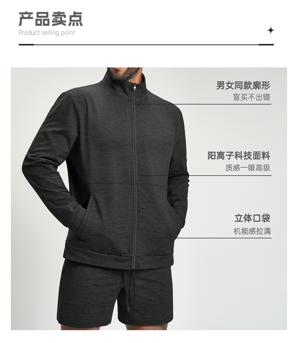 유럽과 미국 남성 스포츠 피트니스 요가 니트 2색 재킷 야외 통근 하이킹 피부 친화적인 통기성 재킷 1500