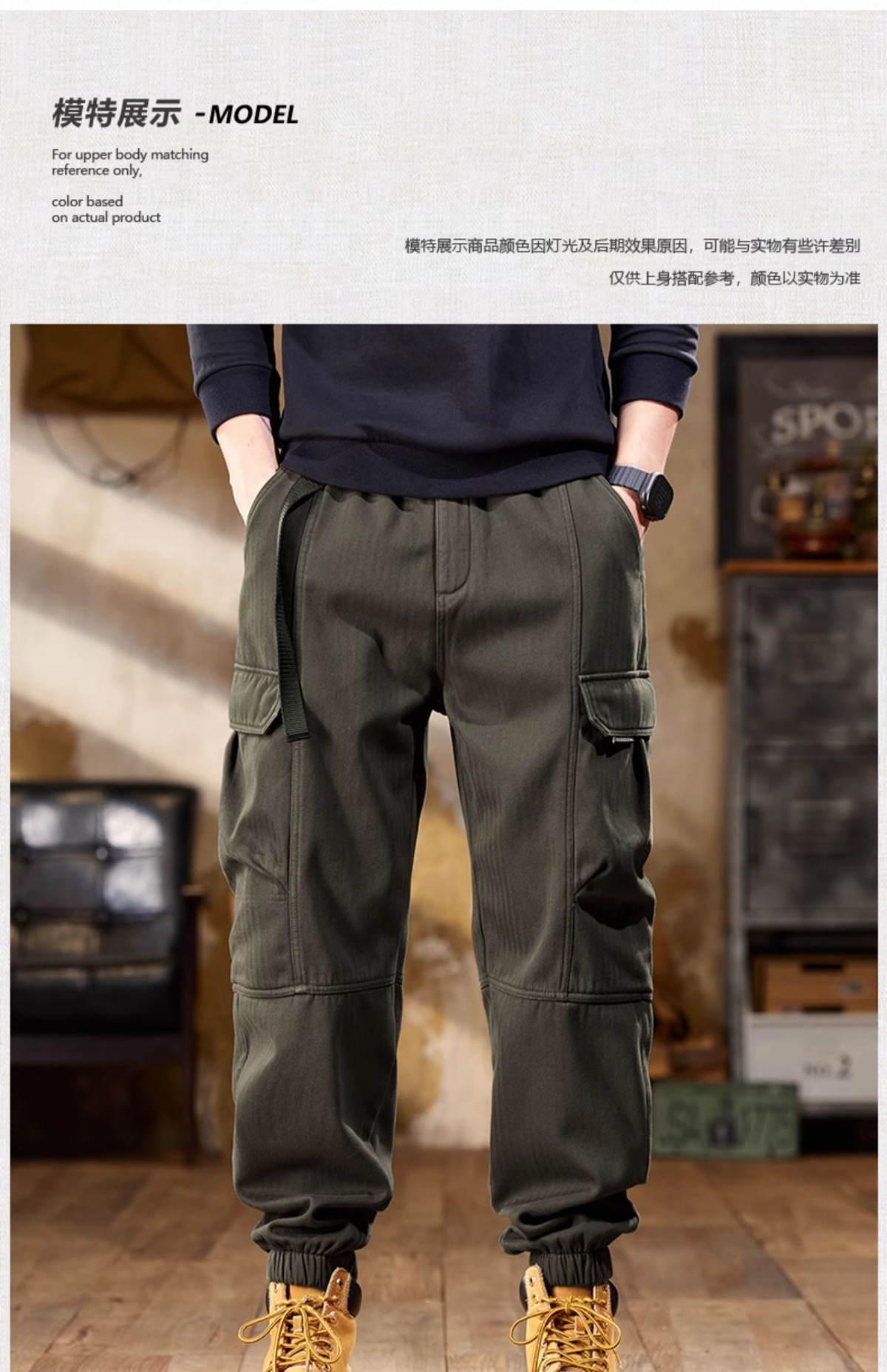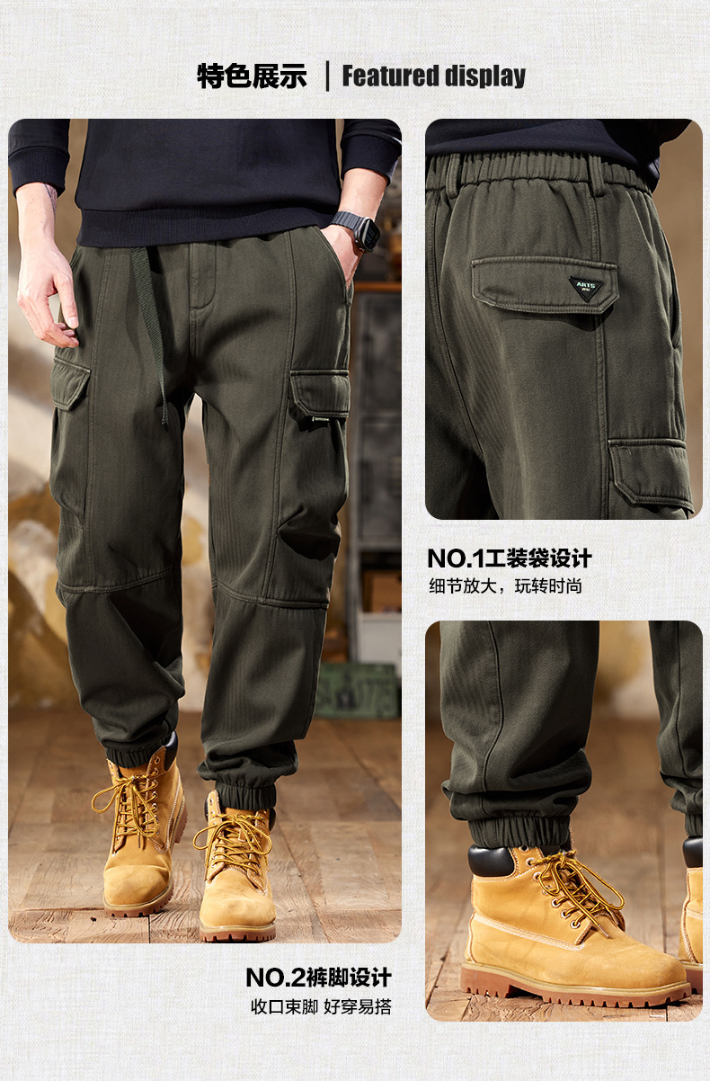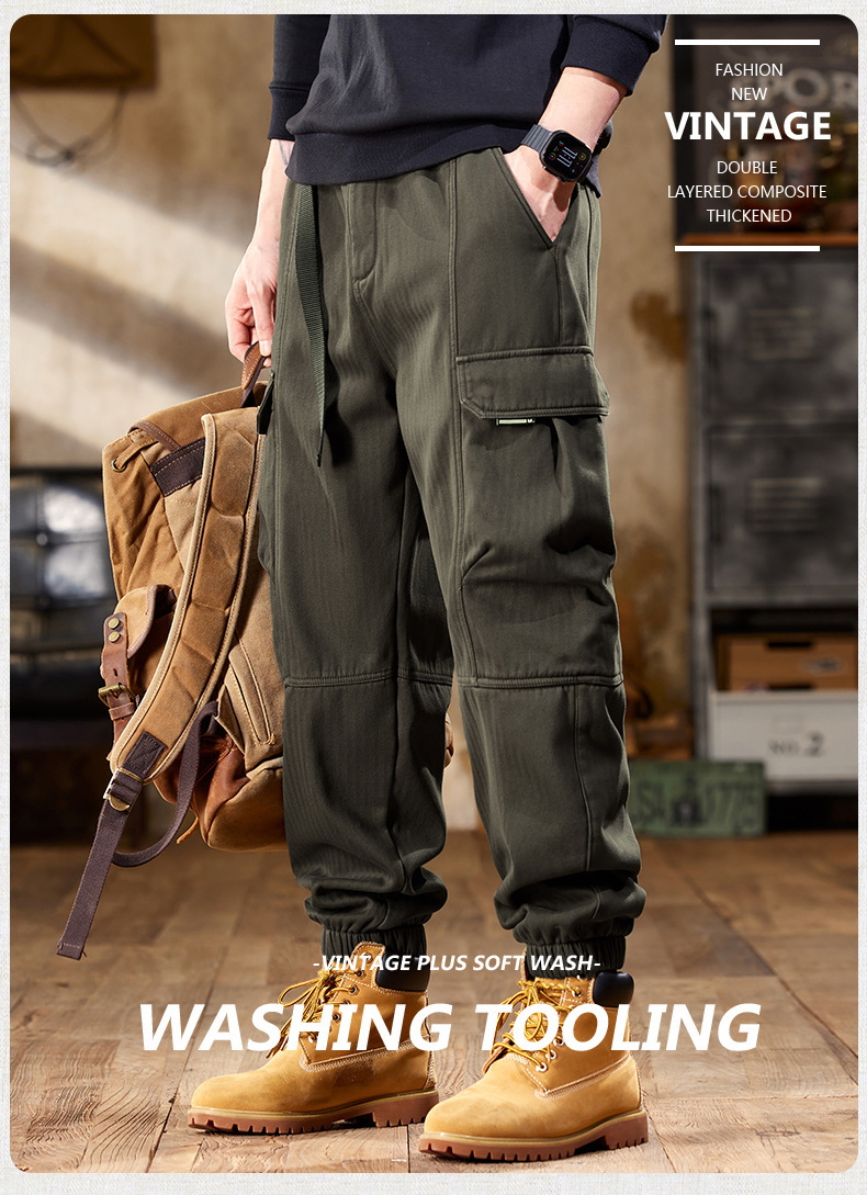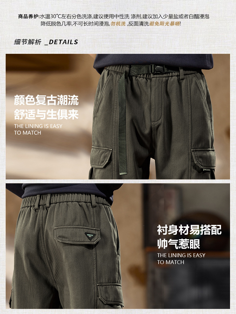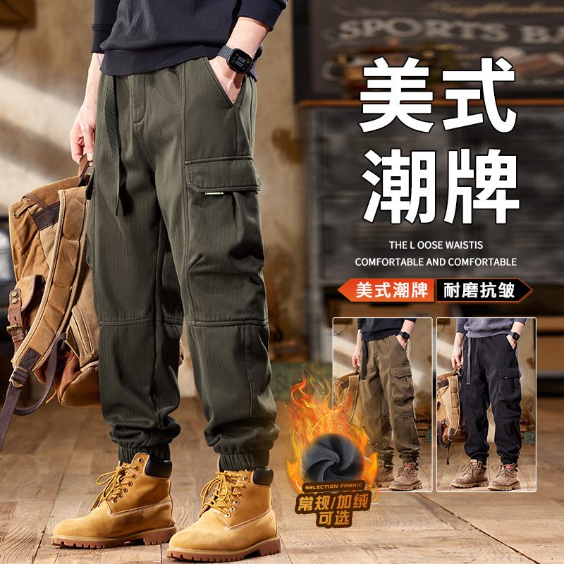 가을 겨울 남성용 아메리칸 헤비웨이트 오버올, 벨벳과 두꺼운 순면 레깅스가 있는 루즈한 캐주얼 바지, 남성용