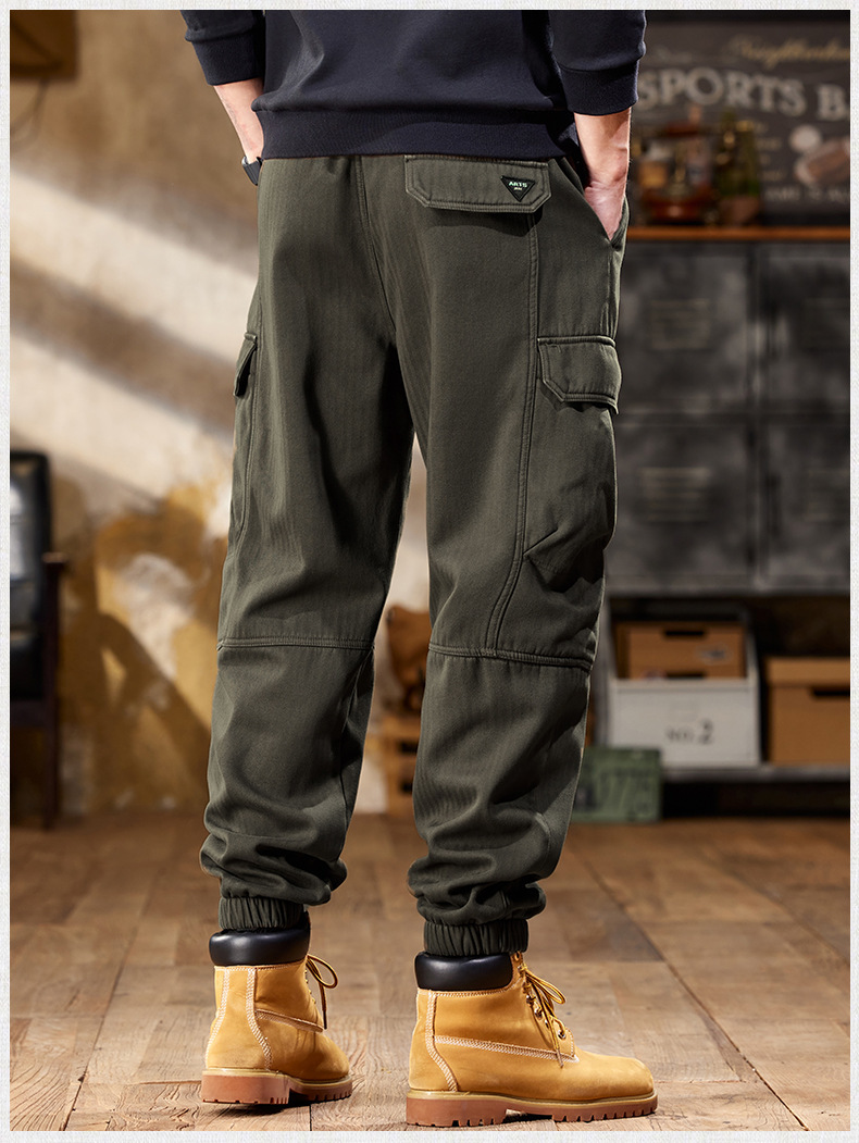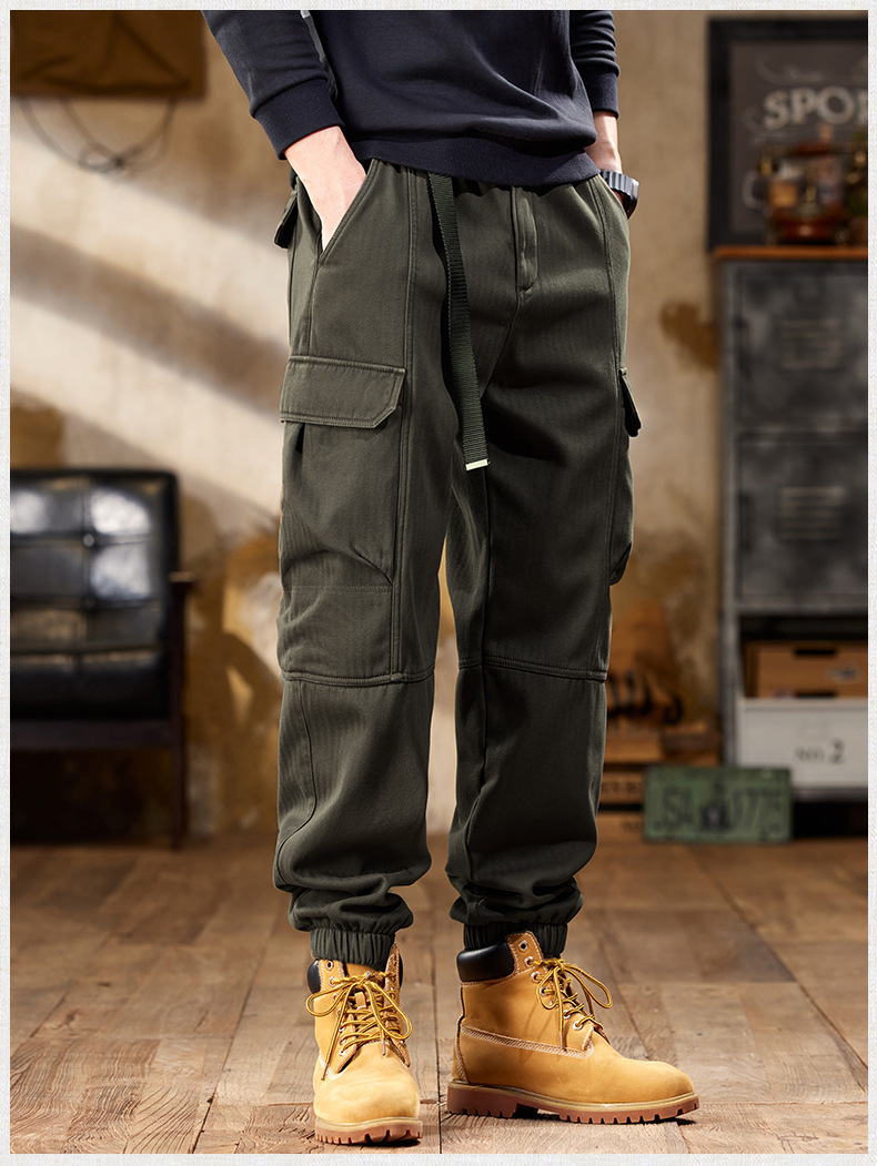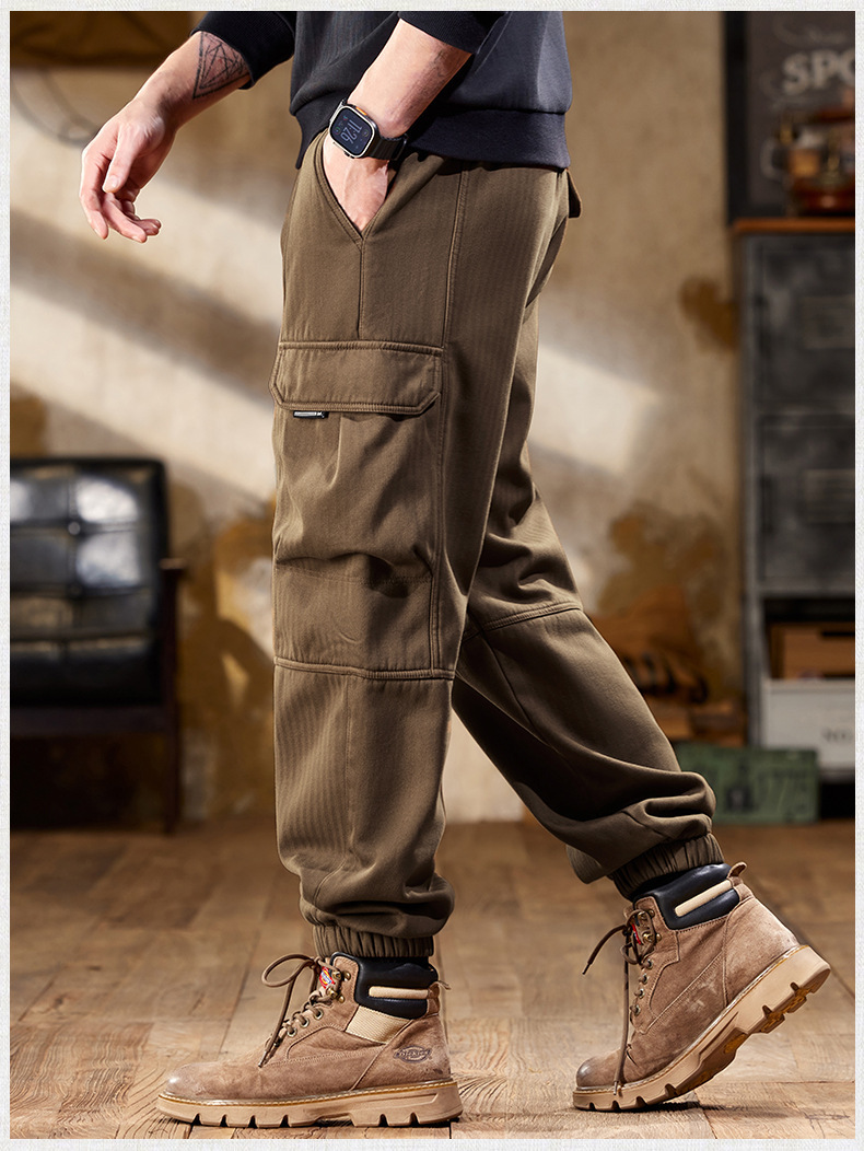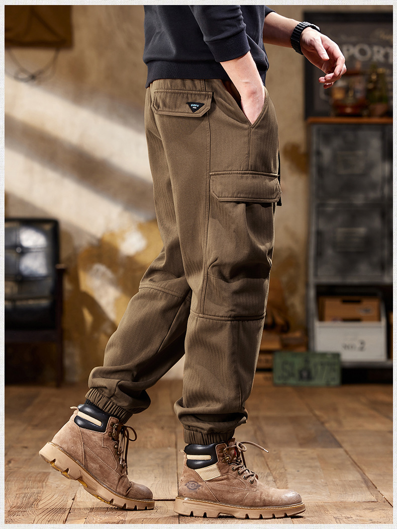 가을 겨울 남성용 아메리칸 헤비웨이트 오버올, 벨벳과 두꺼운 순면 레깅스가 있는 루즈한 캐주얼 바지, 남성용