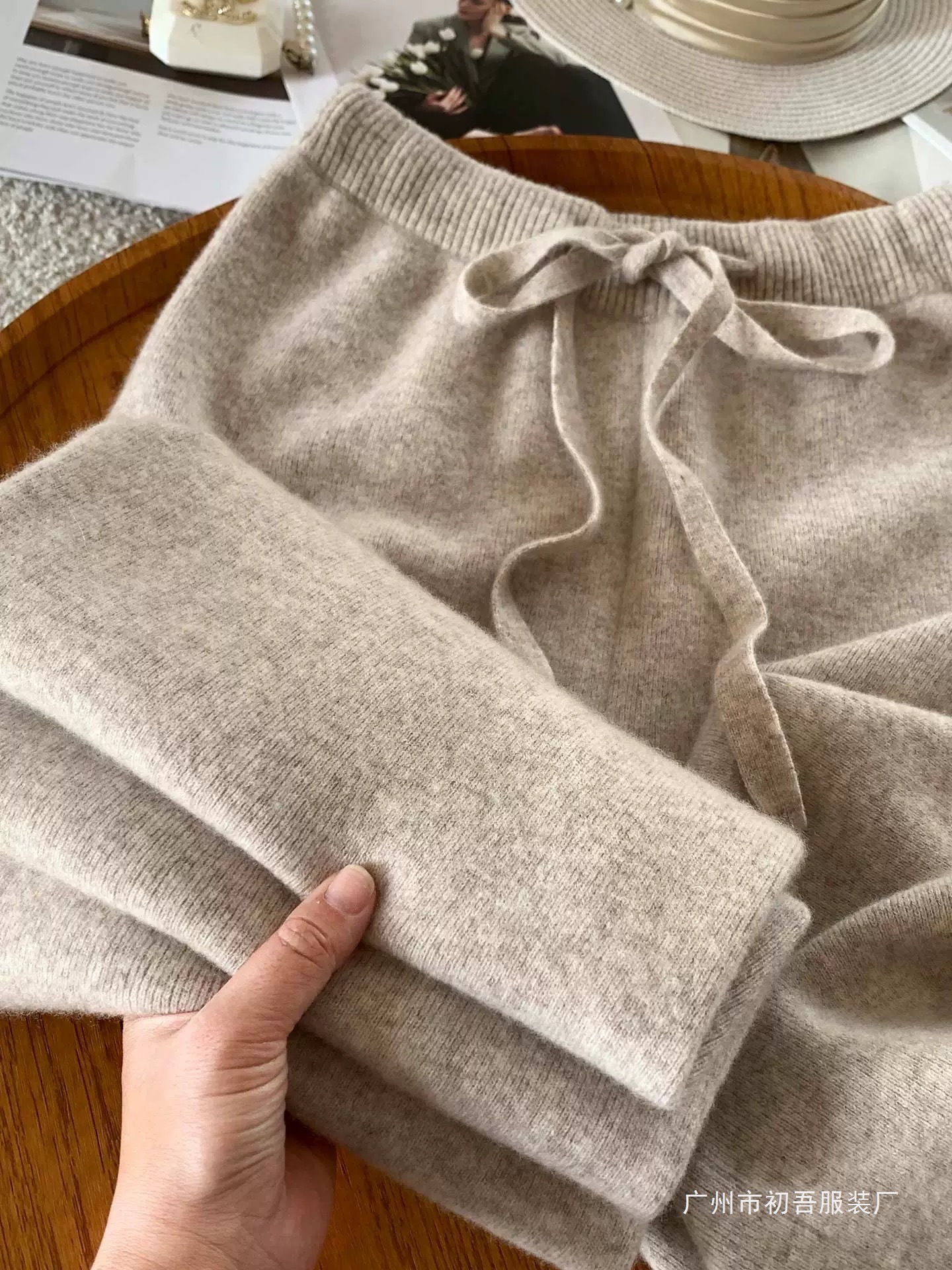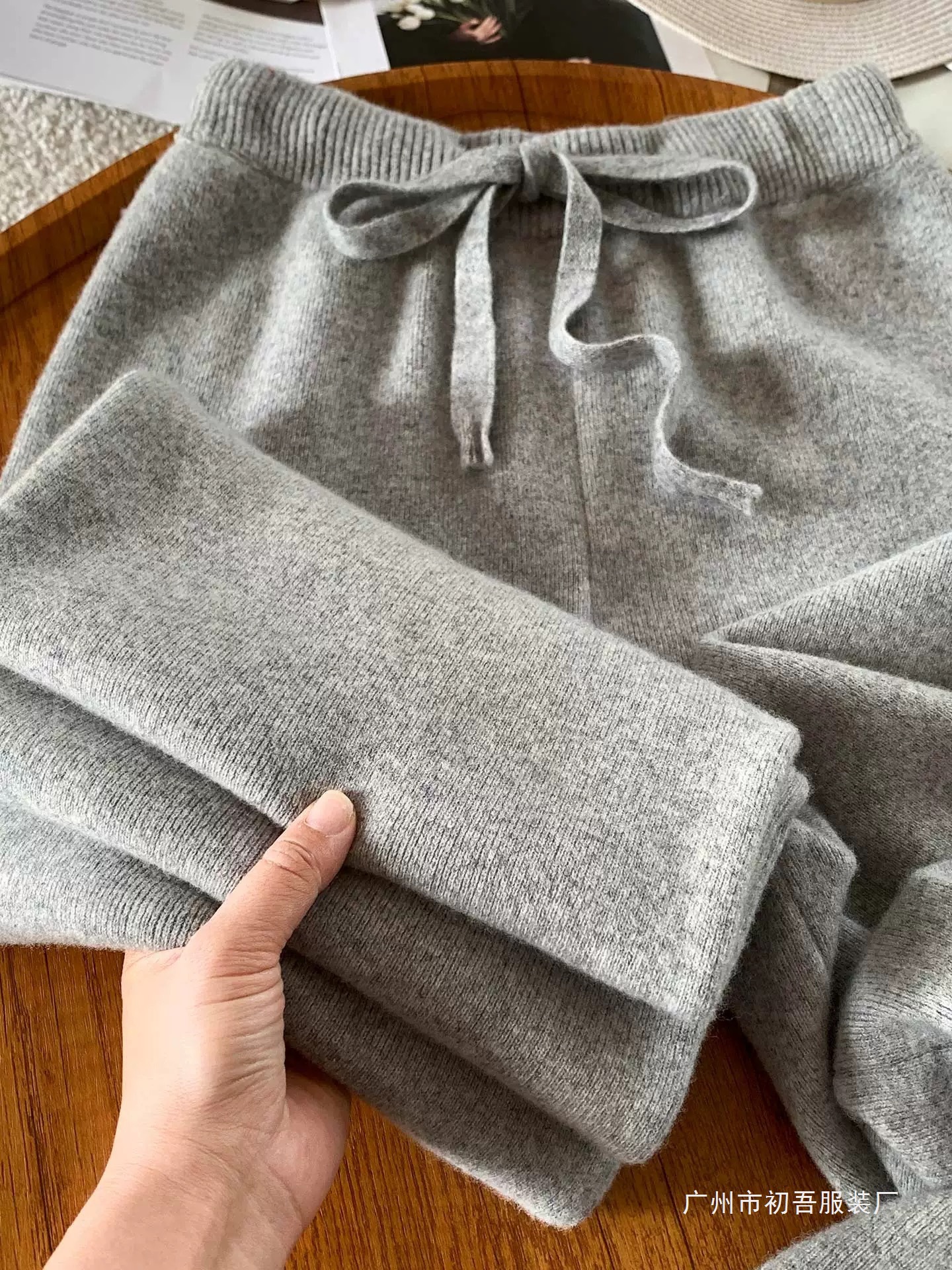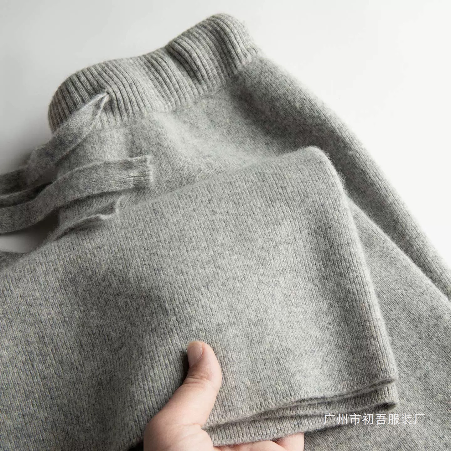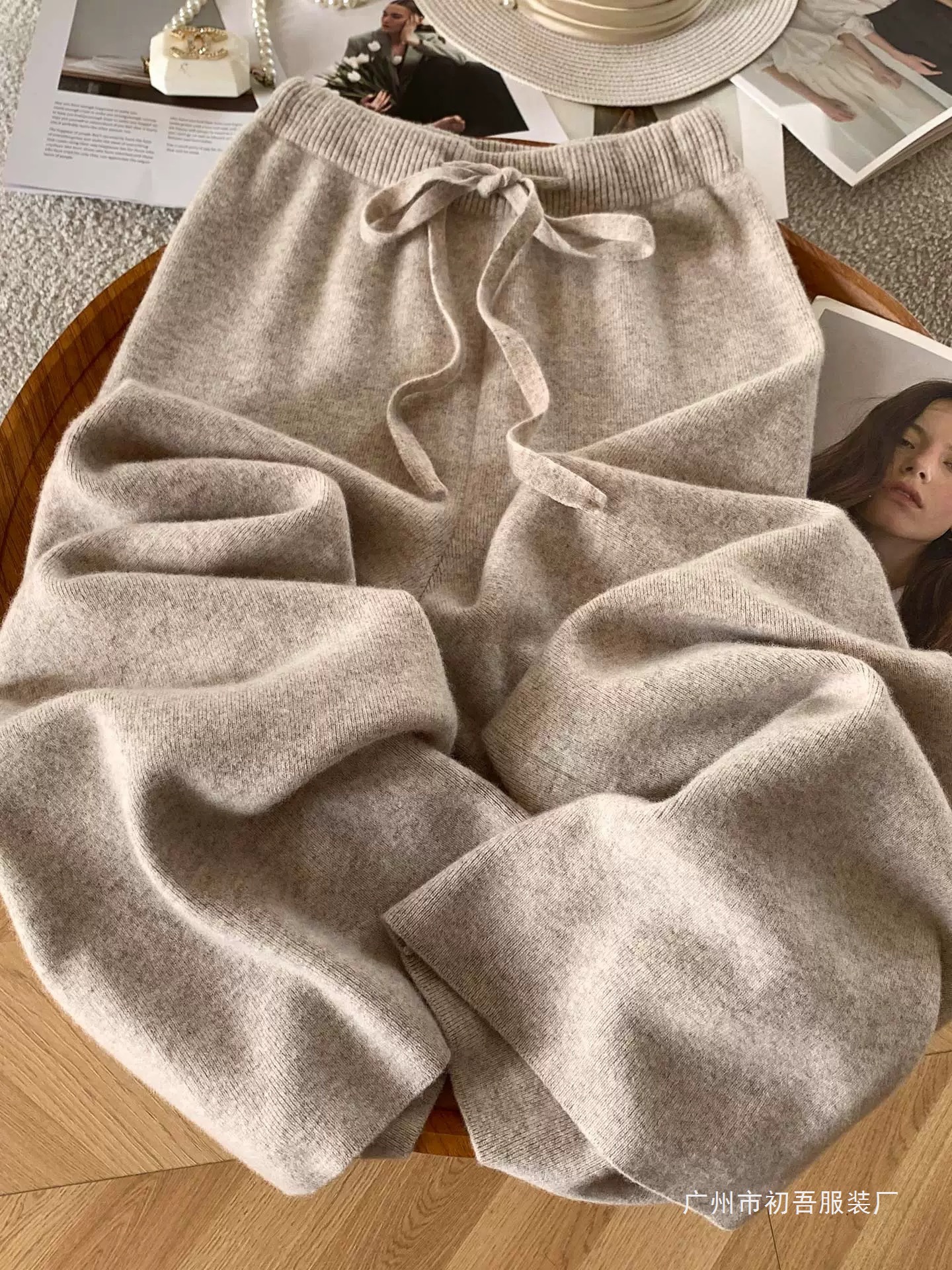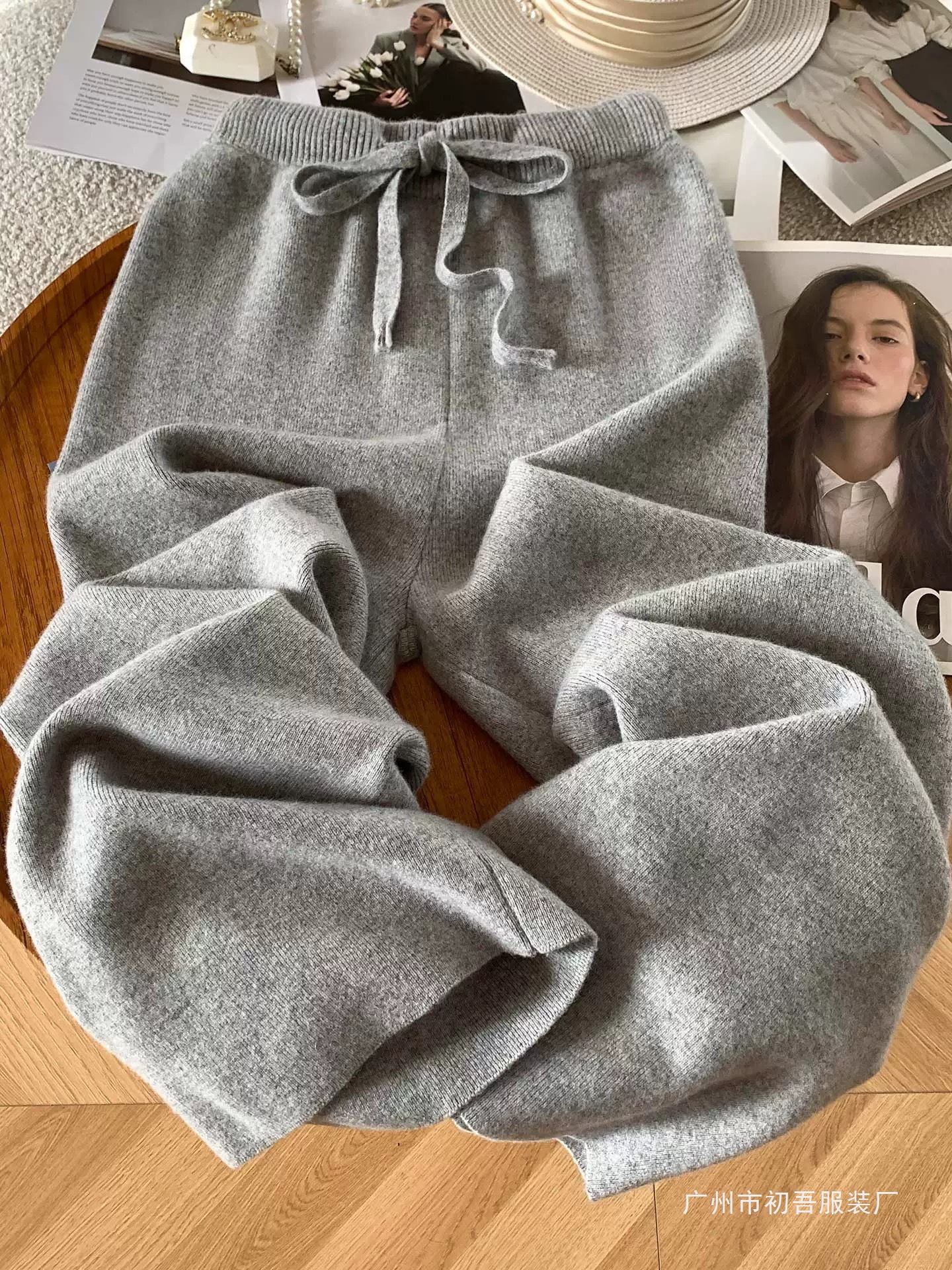 몸집이 작은 여성을 위한 가을 겨울 하이웨이스트 니트 소프트 왁시 울 와이드 팬츠, 활용도 높은 스트레이트 캐시미어 롱 팬츠