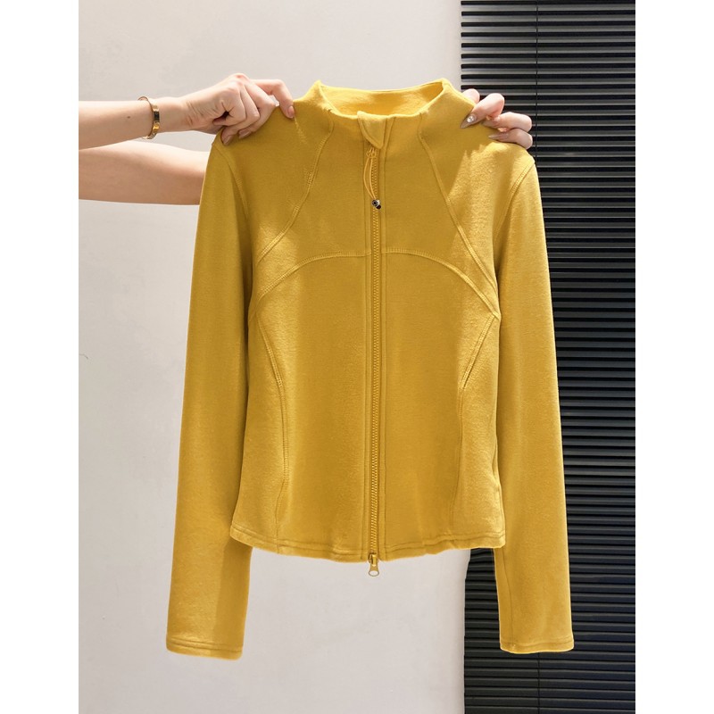 가을 겨울 여성용 하프 터틀넥 더블 지퍼 긴팔 독일 벨벳 가디건 심플 캐주얼 슬림핏 다용도 탑 재킷