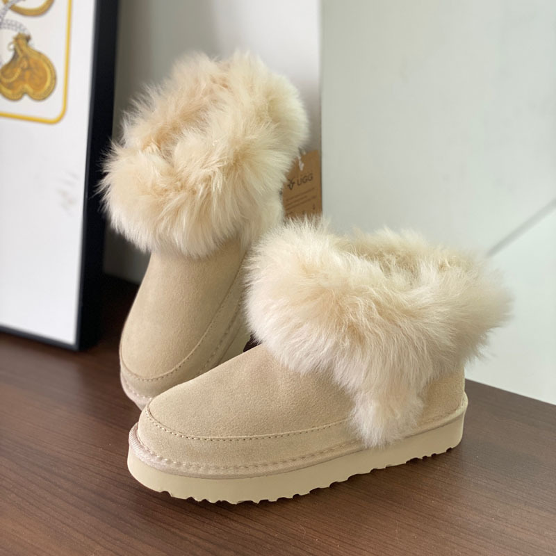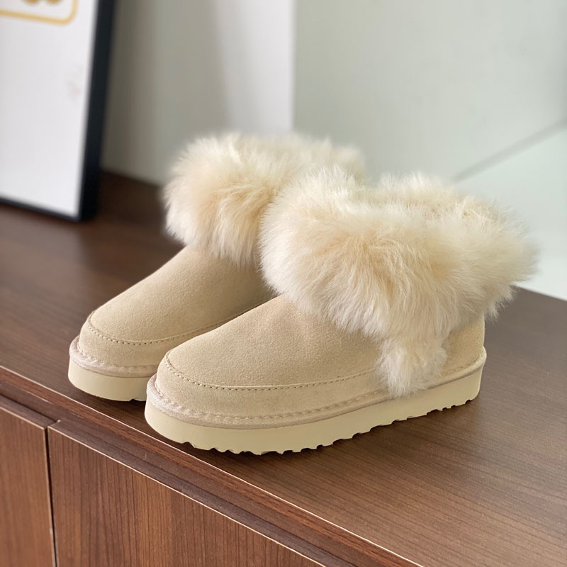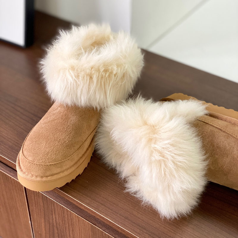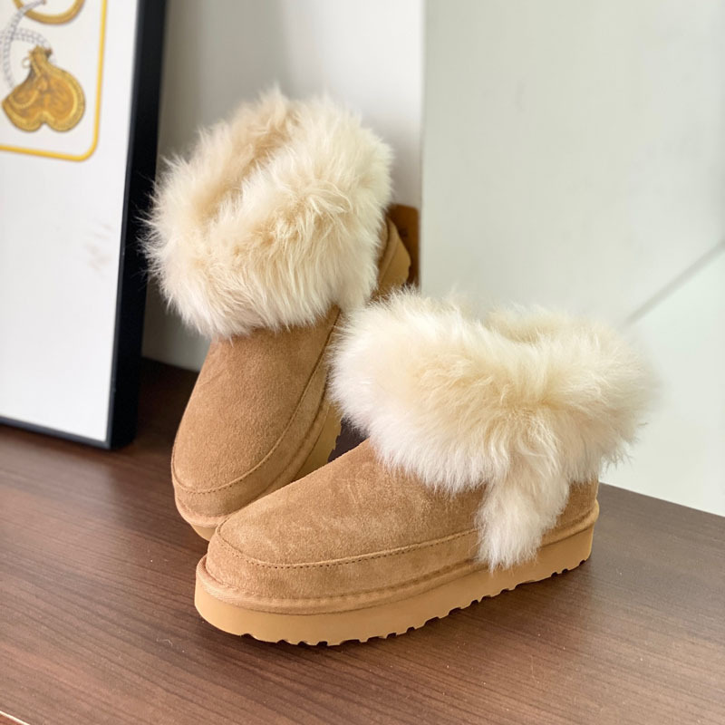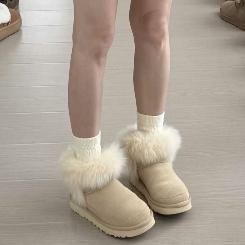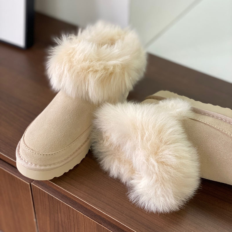 고품질의 새로운 겨울 모피 일체형 두꺼운 밑창 캐주얼 스노우 부츠, 달콤하고 다재다능하며 벨벳으로 두꺼워 여성용 따뜻한 면화