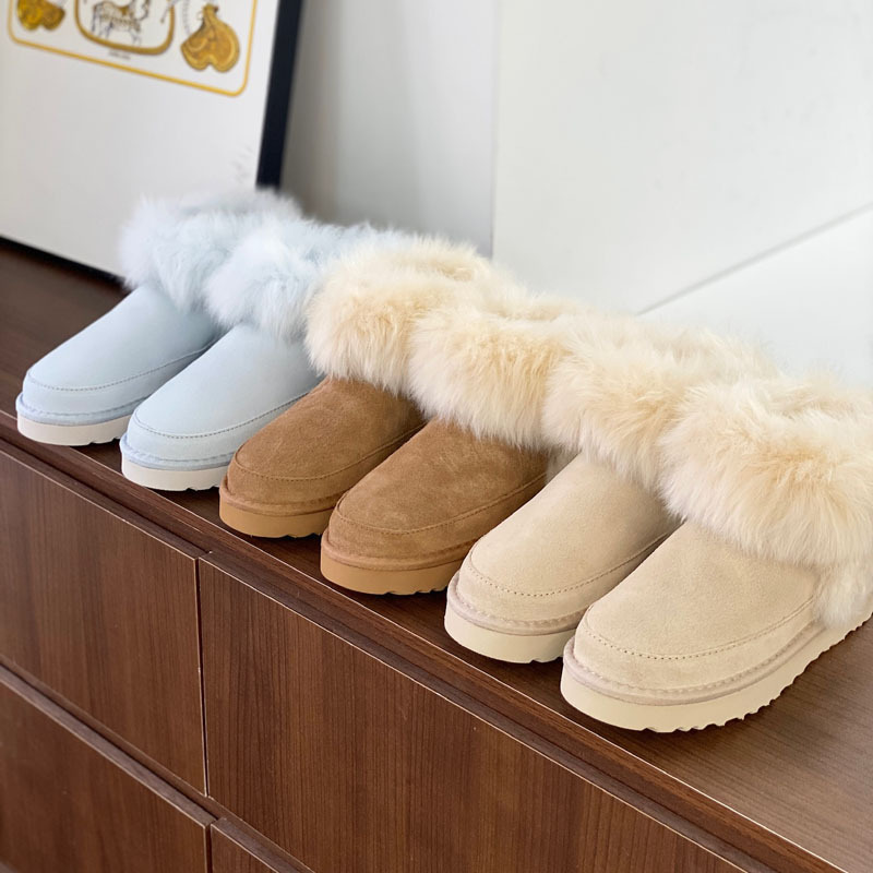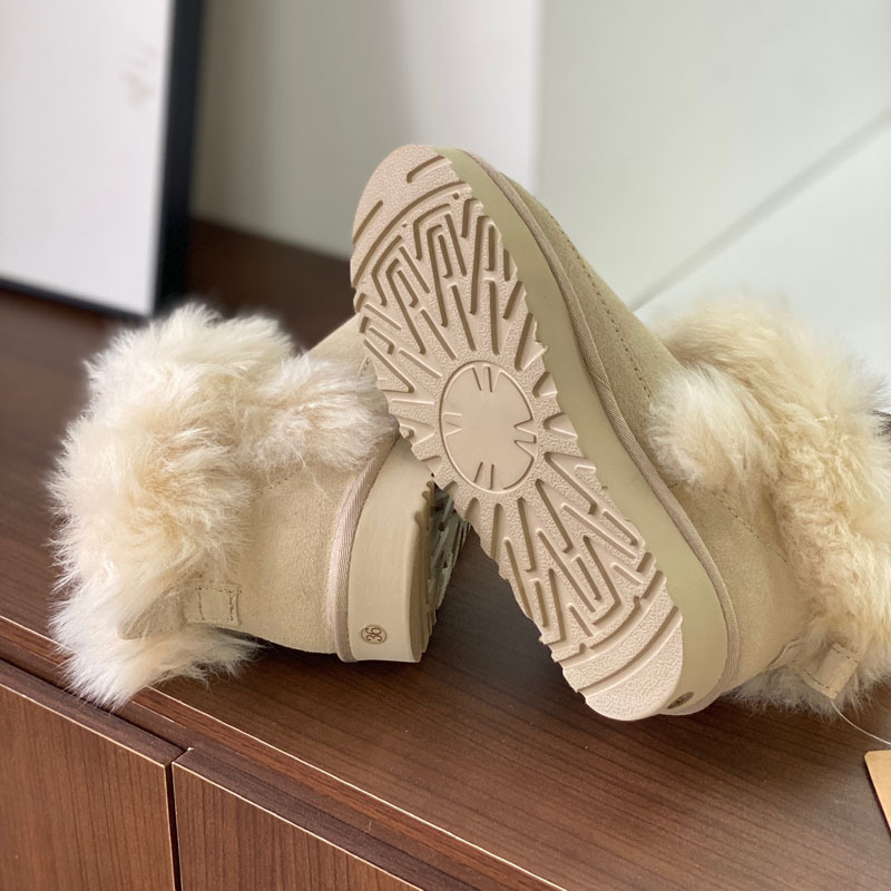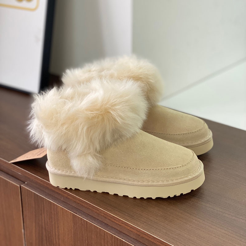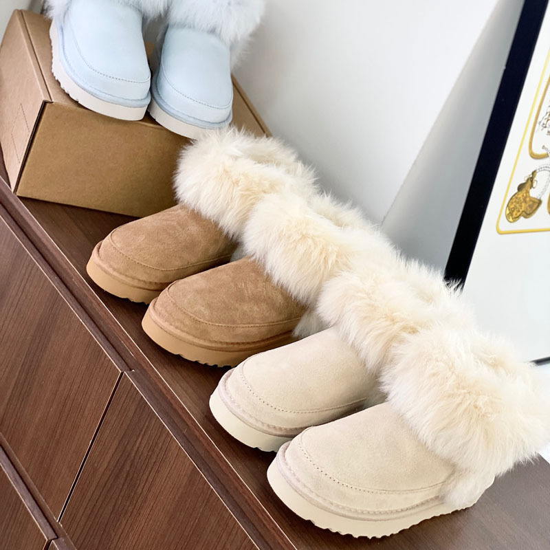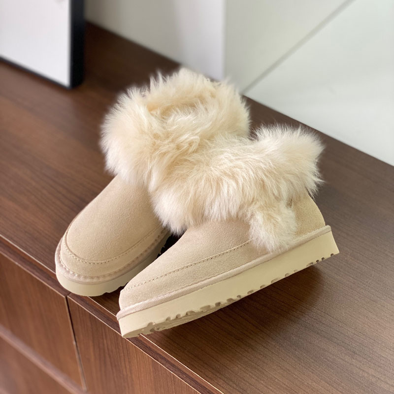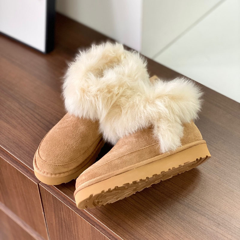 고품질의 새로운 겨울 모피 일체형 두꺼운 밑창 캐주얼 스노우 부츠, 달콤하고 다재다능하며 벨벳으로 두꺼워 여성용 따뜻한 면화