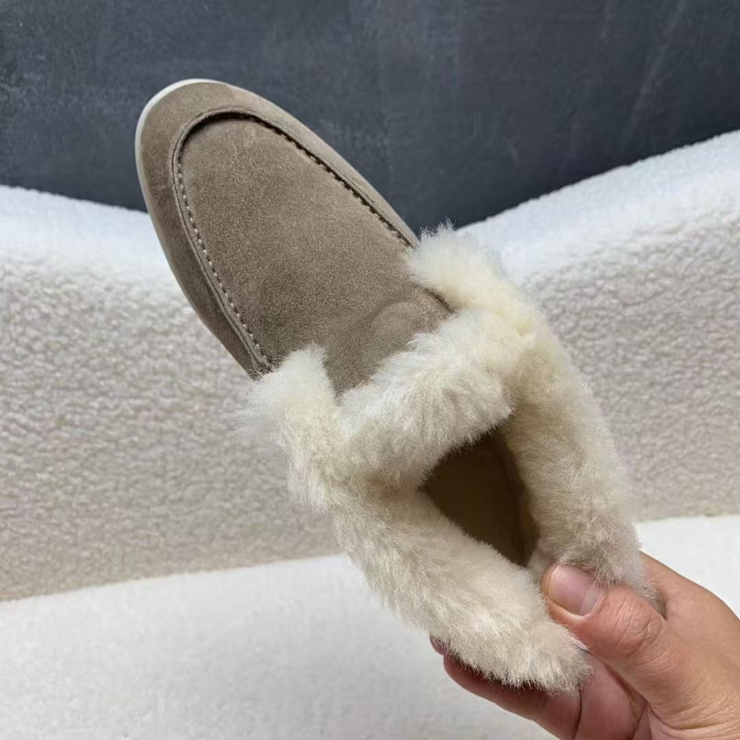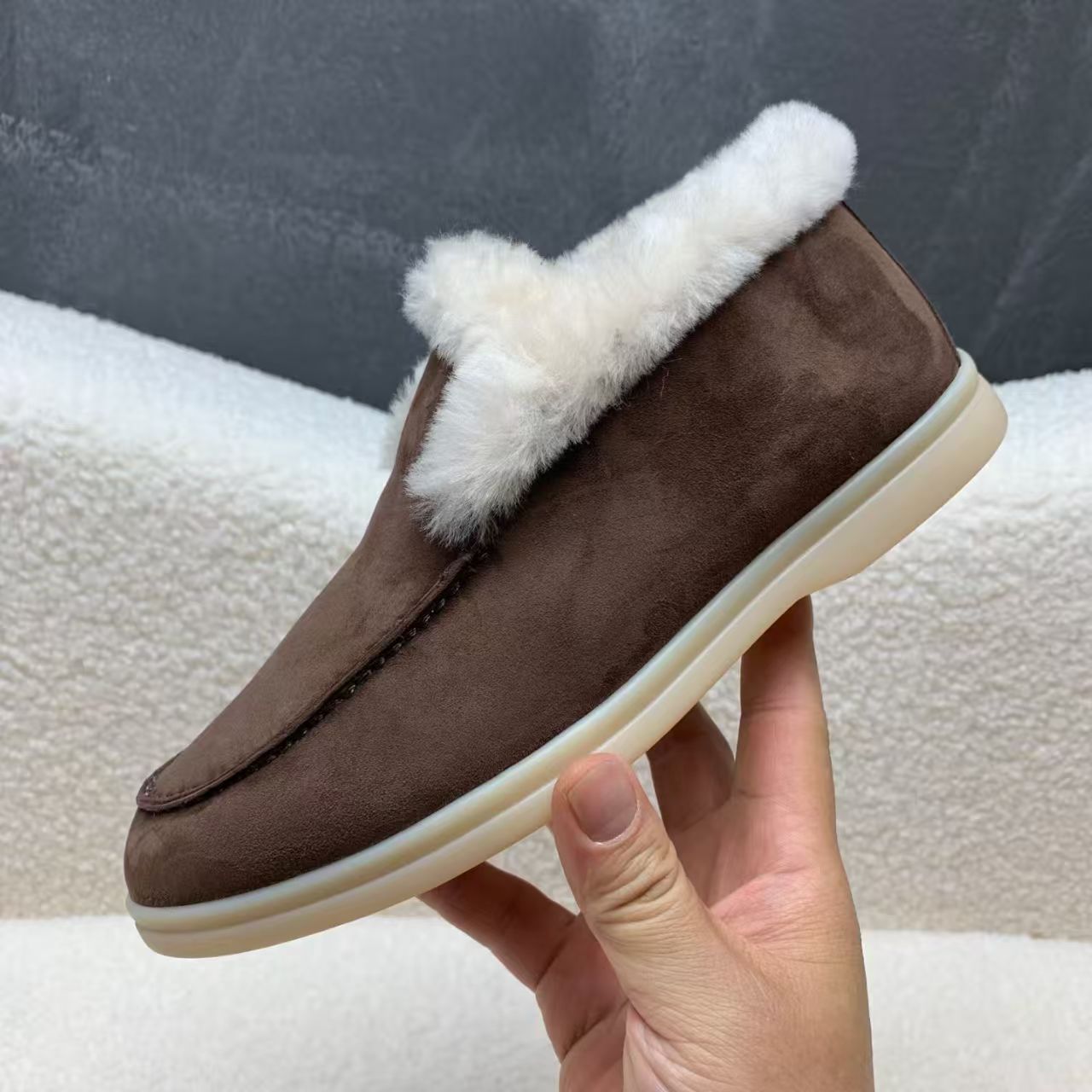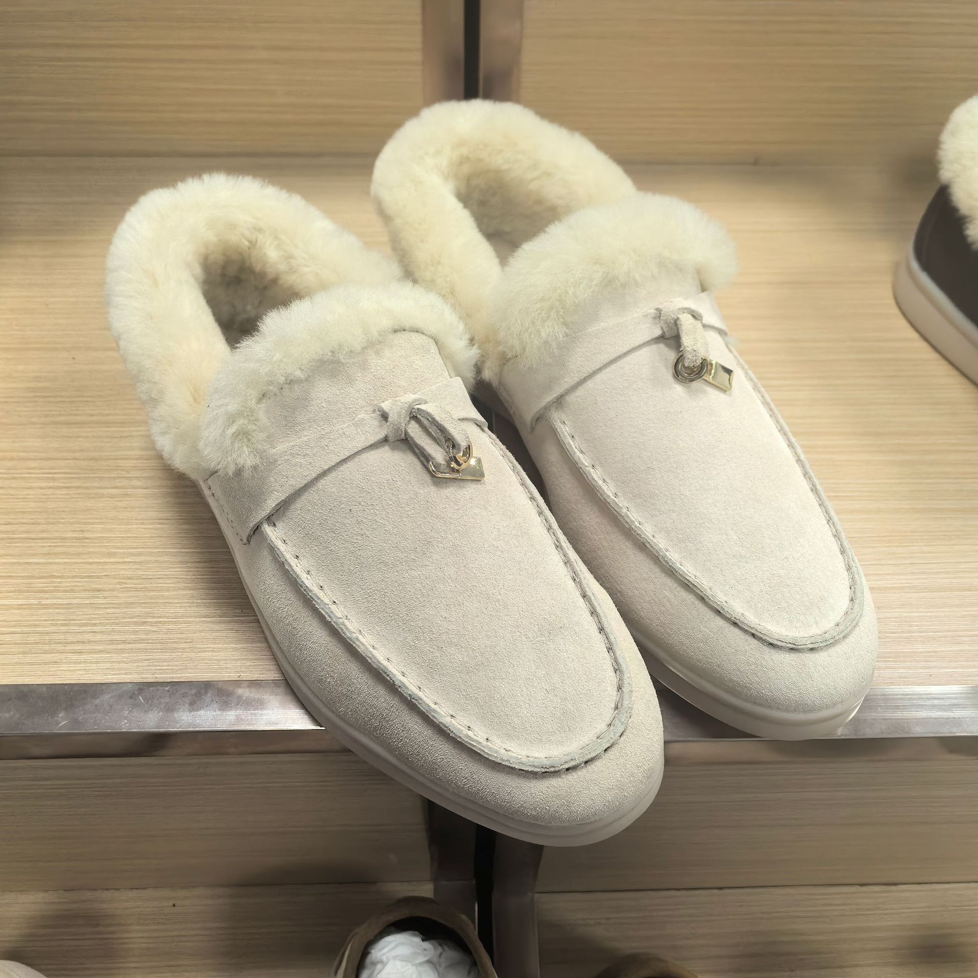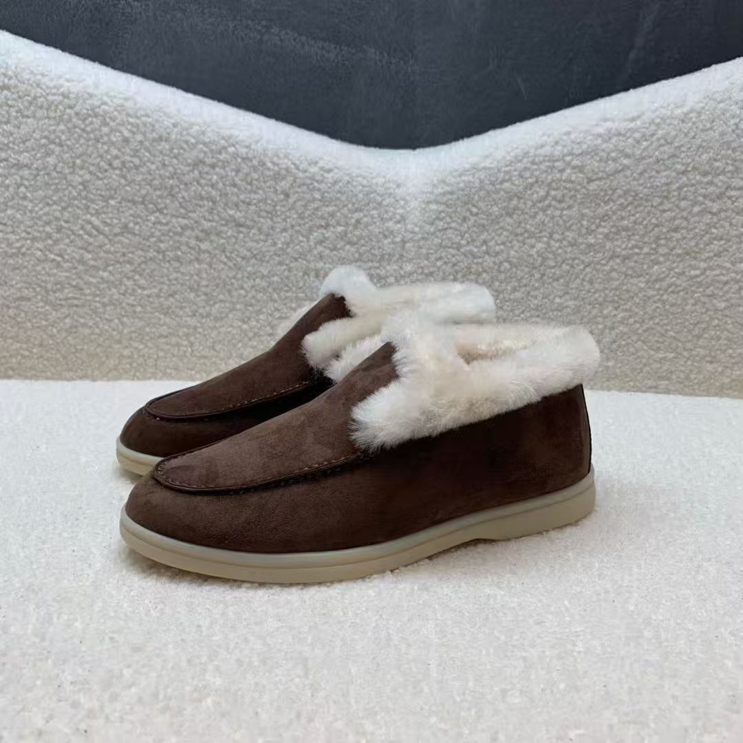 여성을위한 새로운 가을, 겨울 LP 로퍼 플러스 벨벳 따뜻한 모피 올인원 캐주얼 패션 슬립 온 신발 여성용