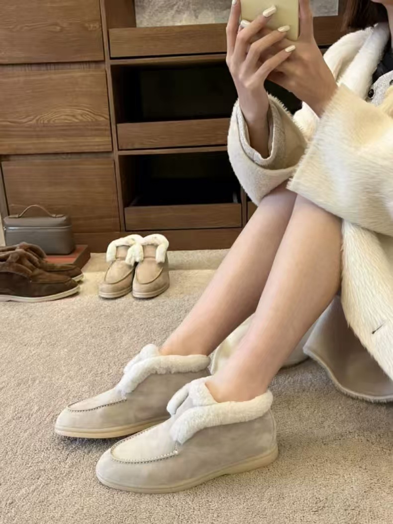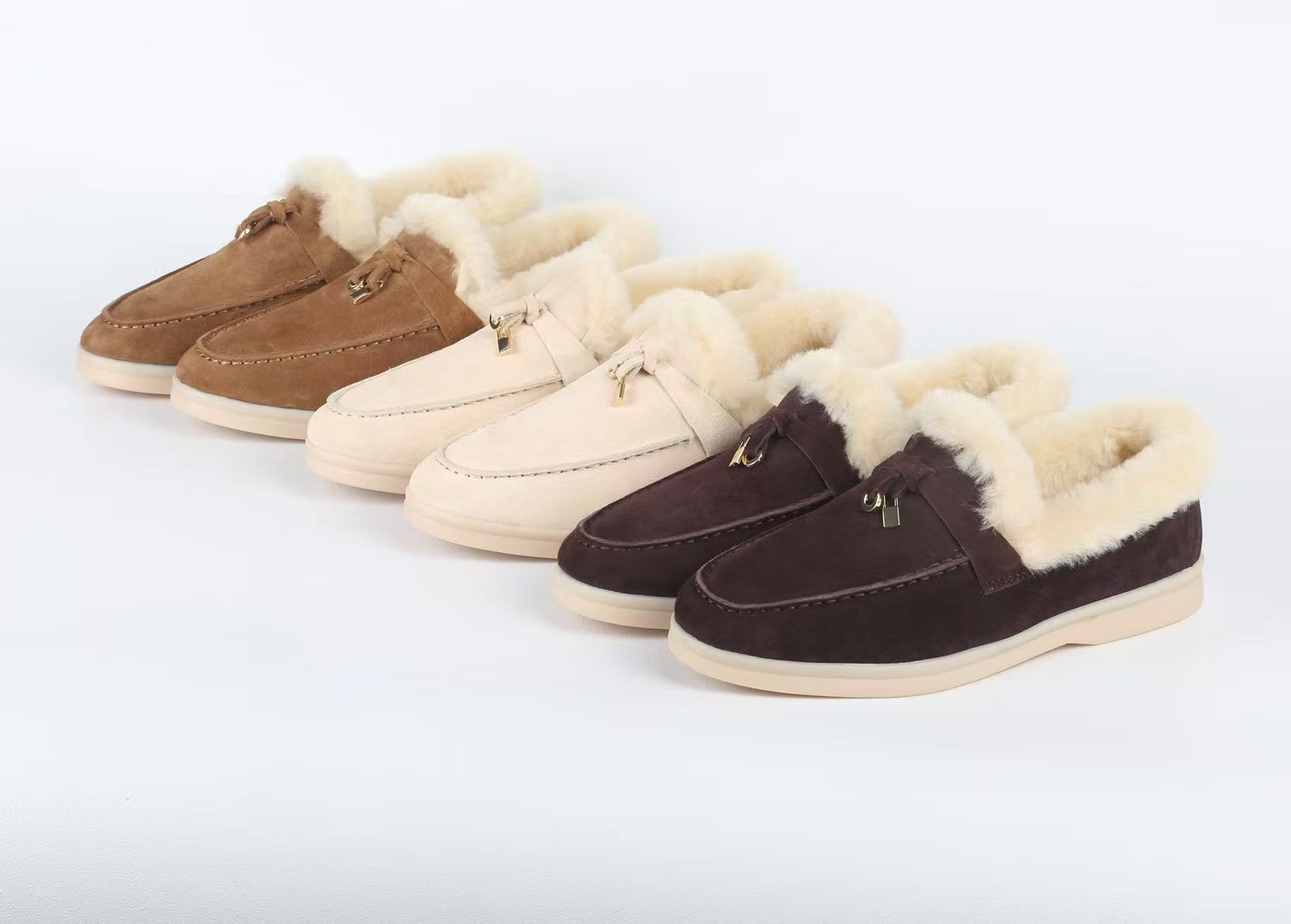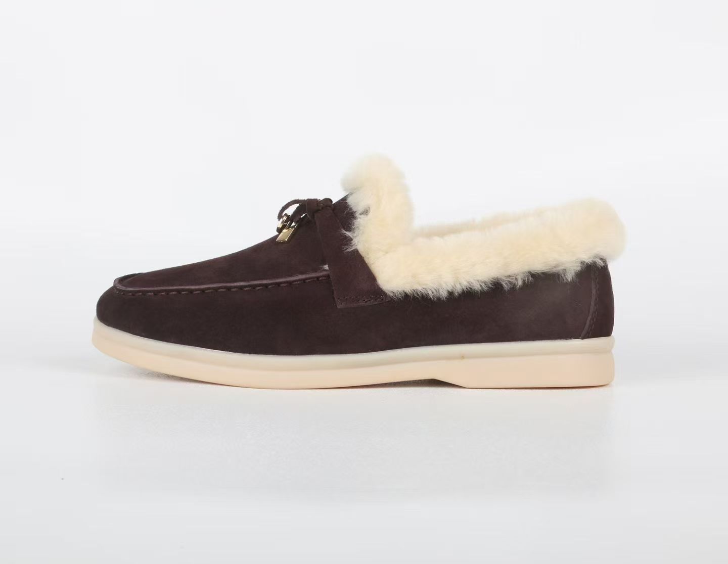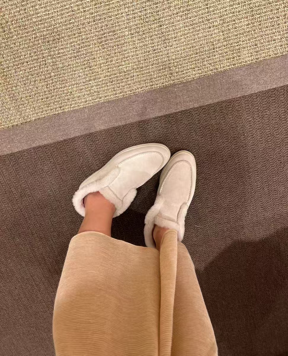 여성을위한 새로운 가을, 겨울 LP 로퍼 플러스 벨벳 따뜻한 모피 올인원 캐주얼 패션 슬립 온 신발 여성용