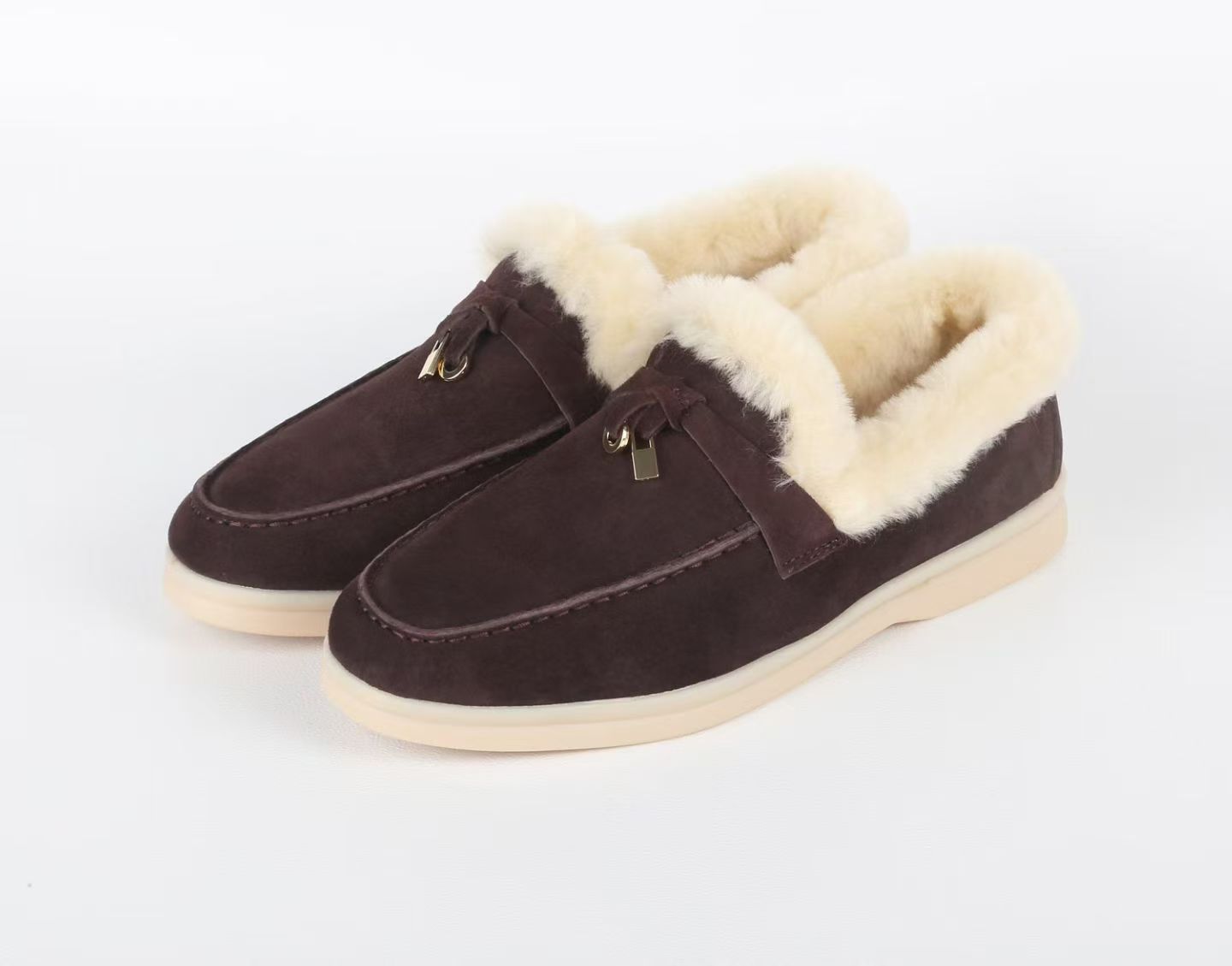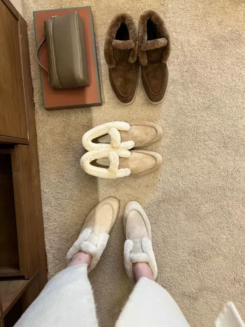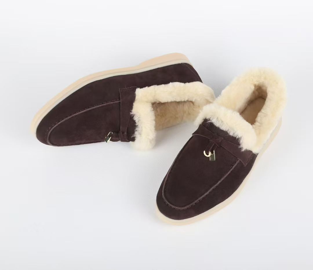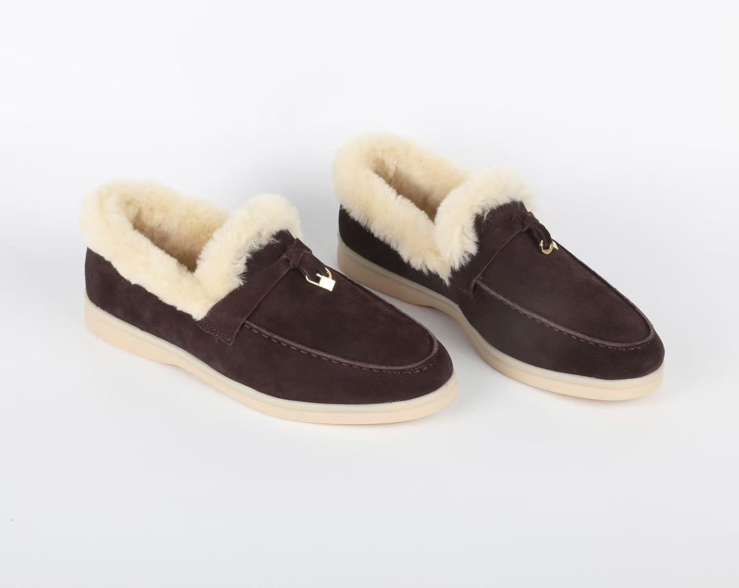 여성을위한 새로운 가을, 겨울 LP 로퍼 플러스 벨벳 따뜻한 모피 올인원 캐주얼 패션 슬립 온 신발 여성용