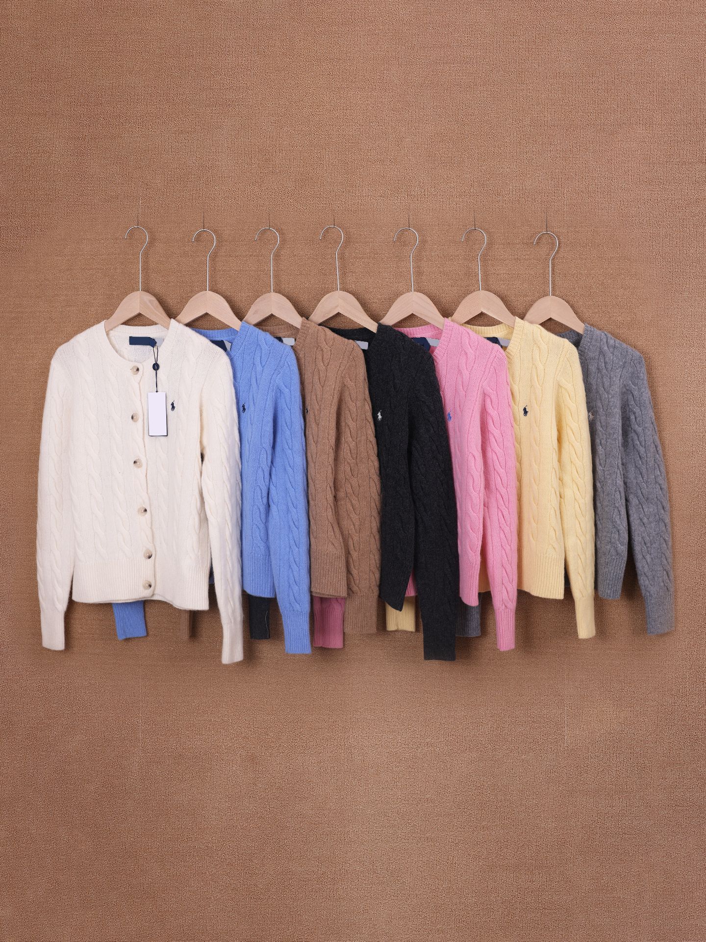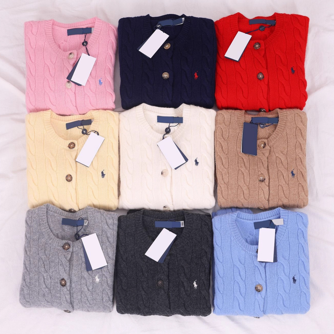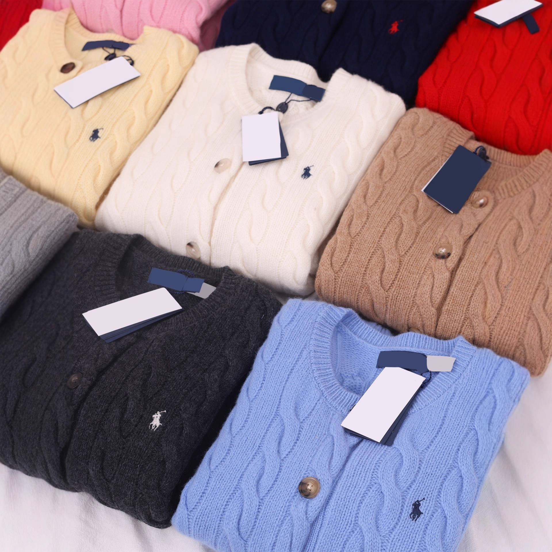 RL 라프 [80% 울 20% 캐시미어 가디건] 포니 로고 자수 케이블 니트/스캔 코드 가능 고품질 SF