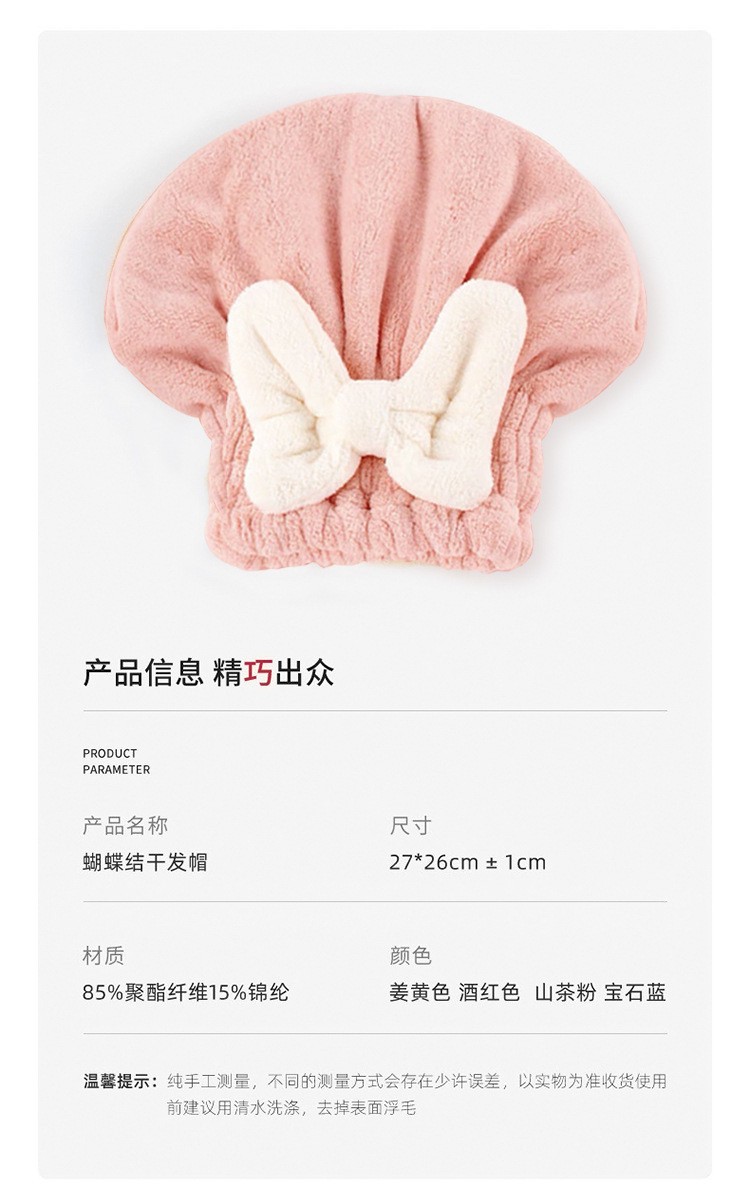 | 货号 | 蝴蝶结干发帽 | 加工定制 | 否 |