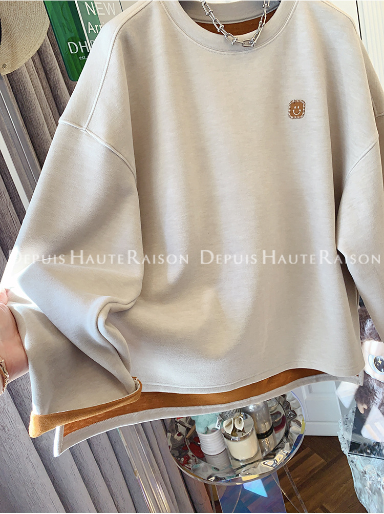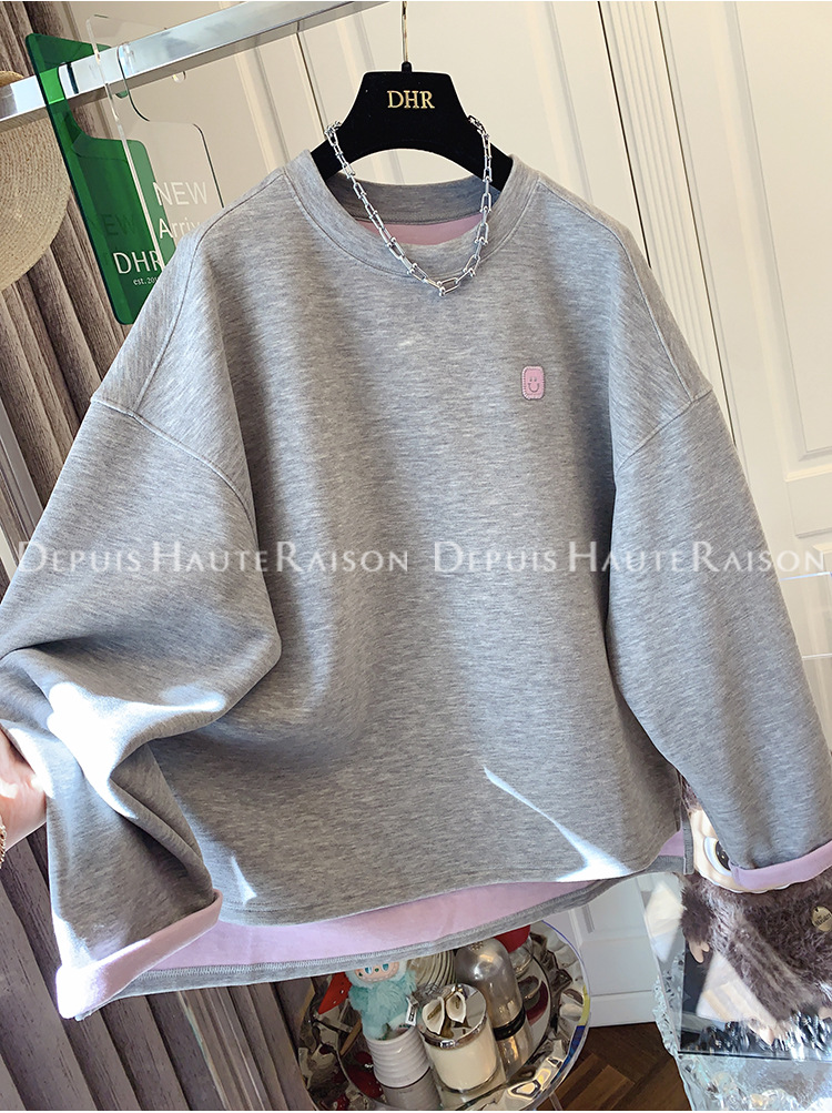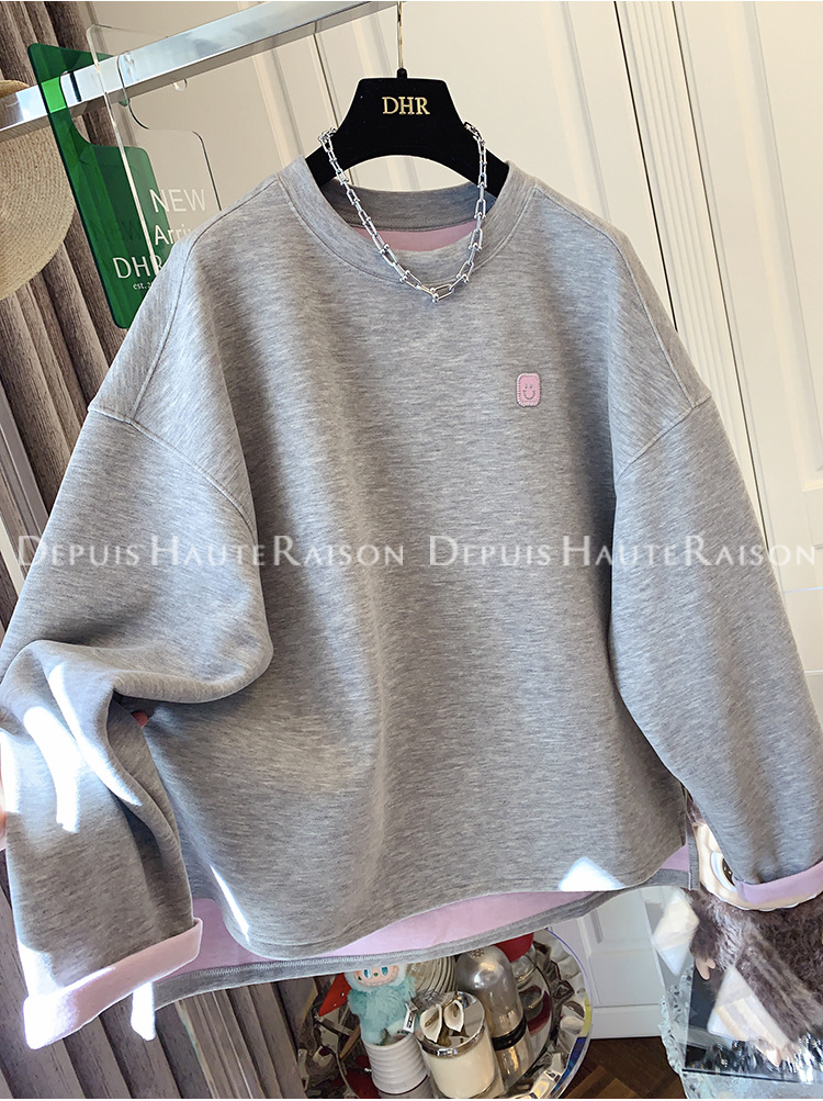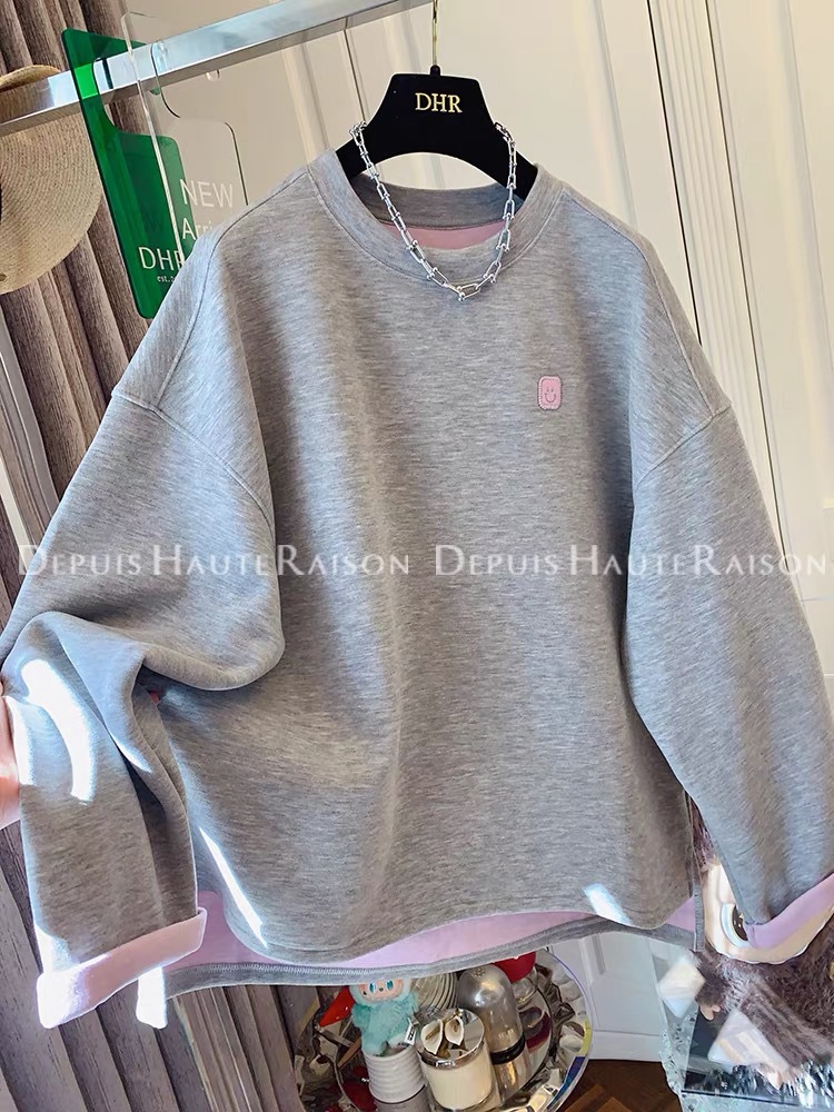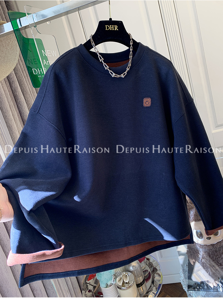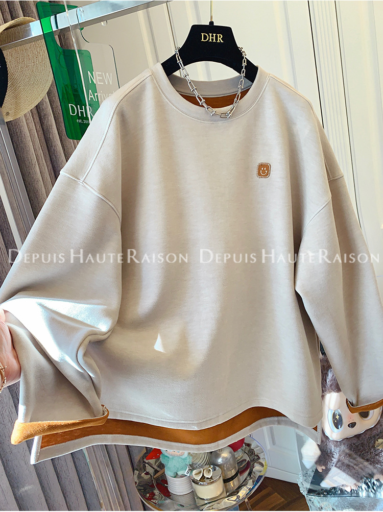 가을, 겨울 플러스 사이즈 120kg 캐주얼 다목적 뚱뚱한 소녀 라운드 넥 얇은 대비 색 스웨트 루즈 탑 여성