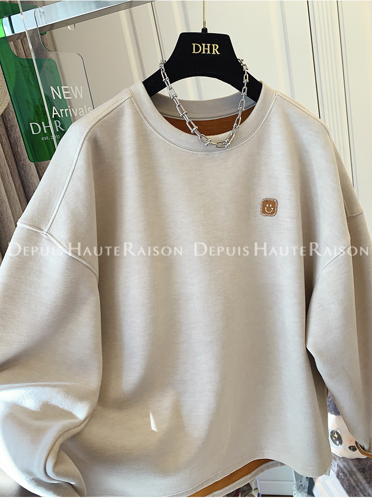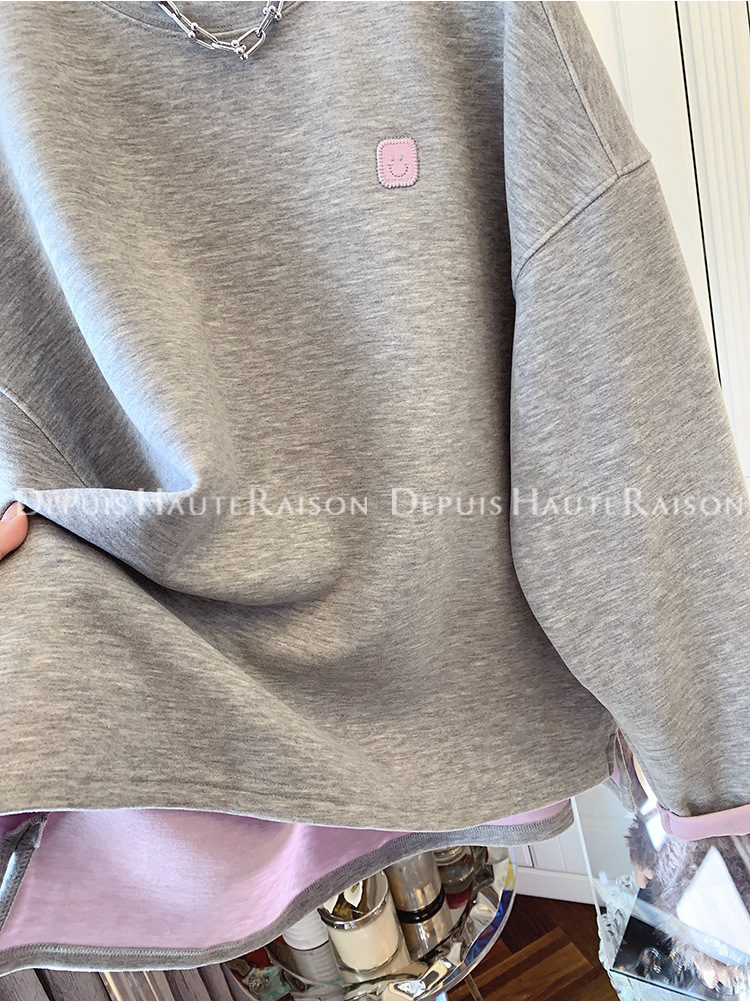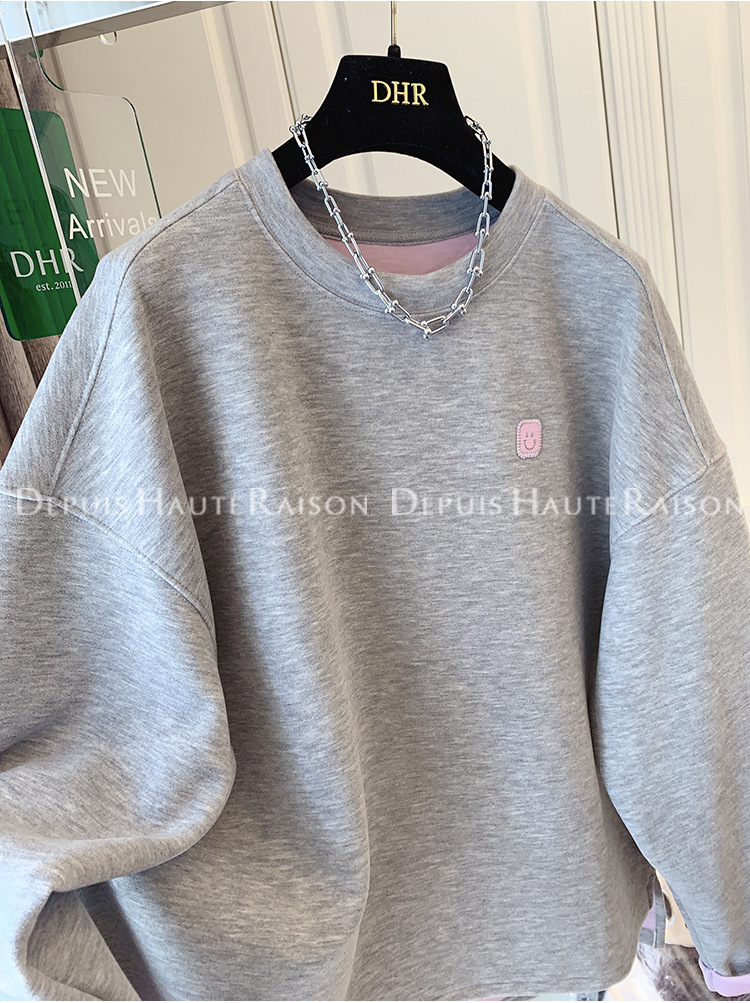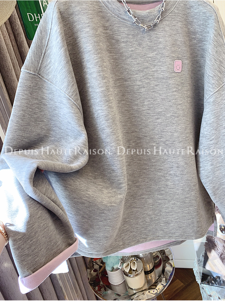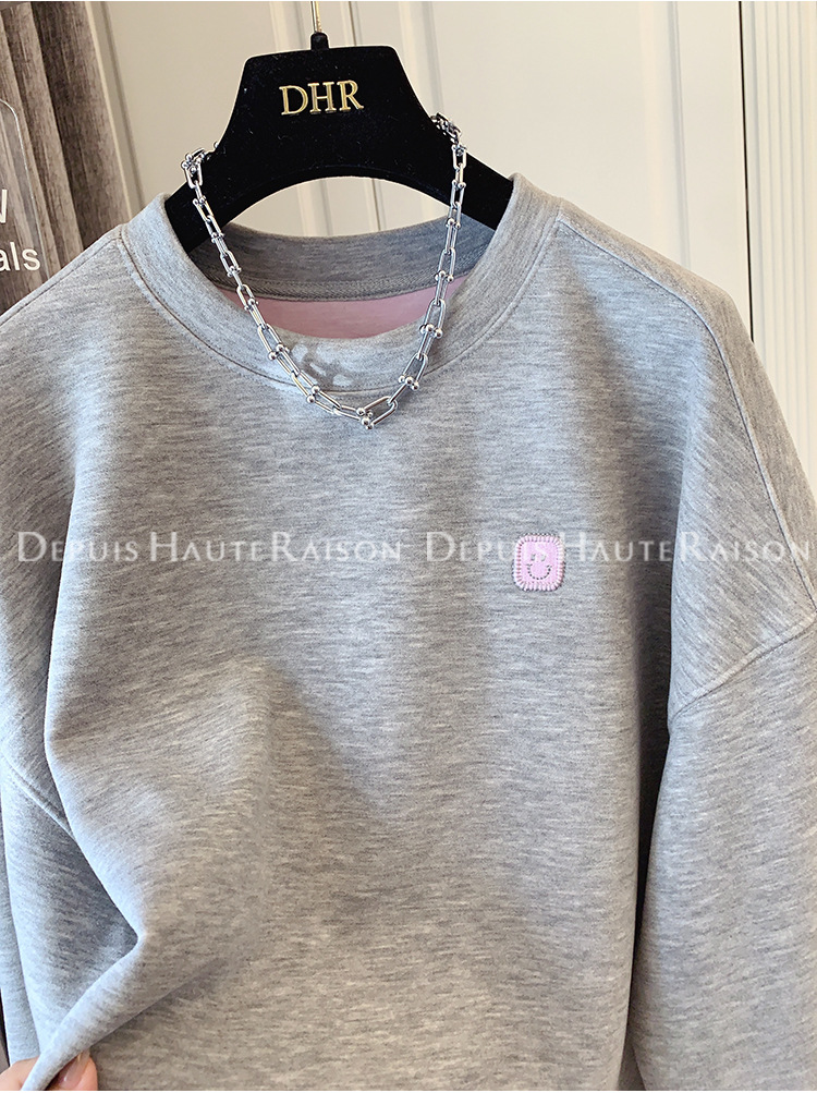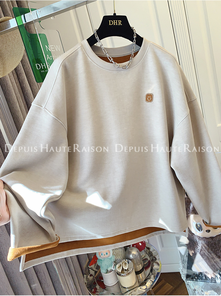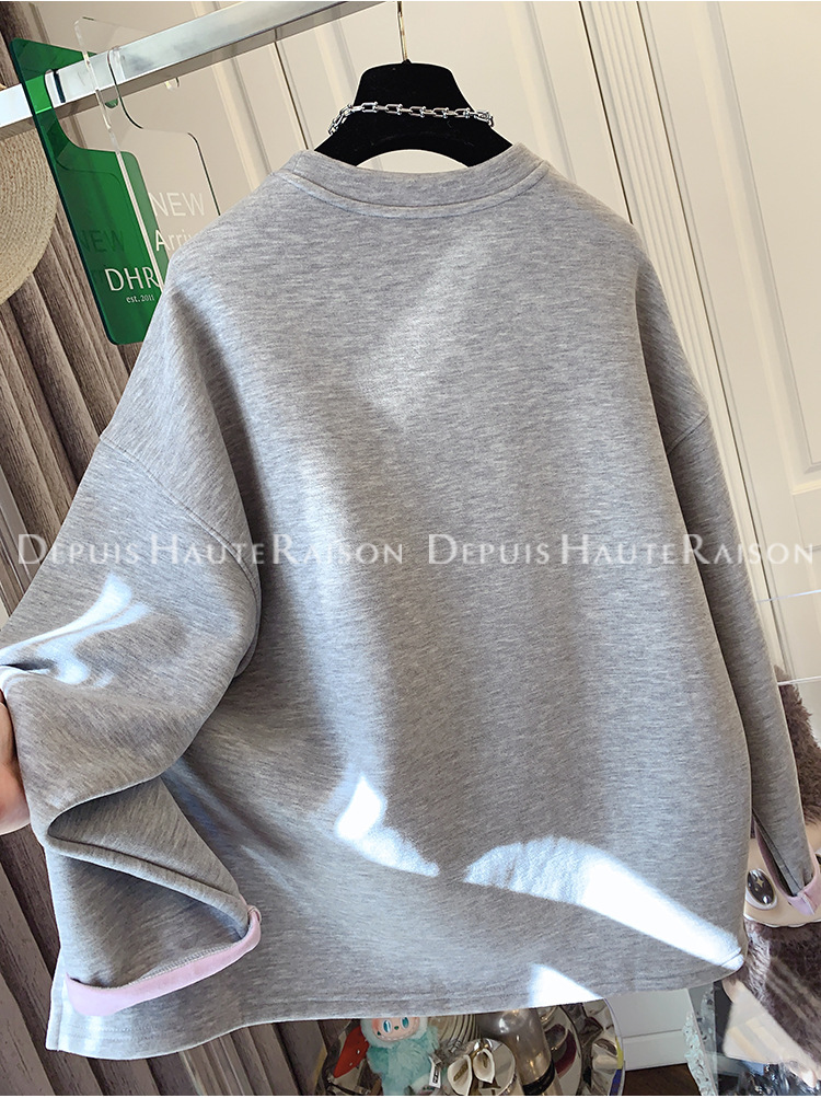 가을, 겨울 플러스 사이즈 120kg 캐주얼 다목적 뚱뚱한 소녀 라운드 넥 얇은 대비 색 스웨트 루즈 탑 여성