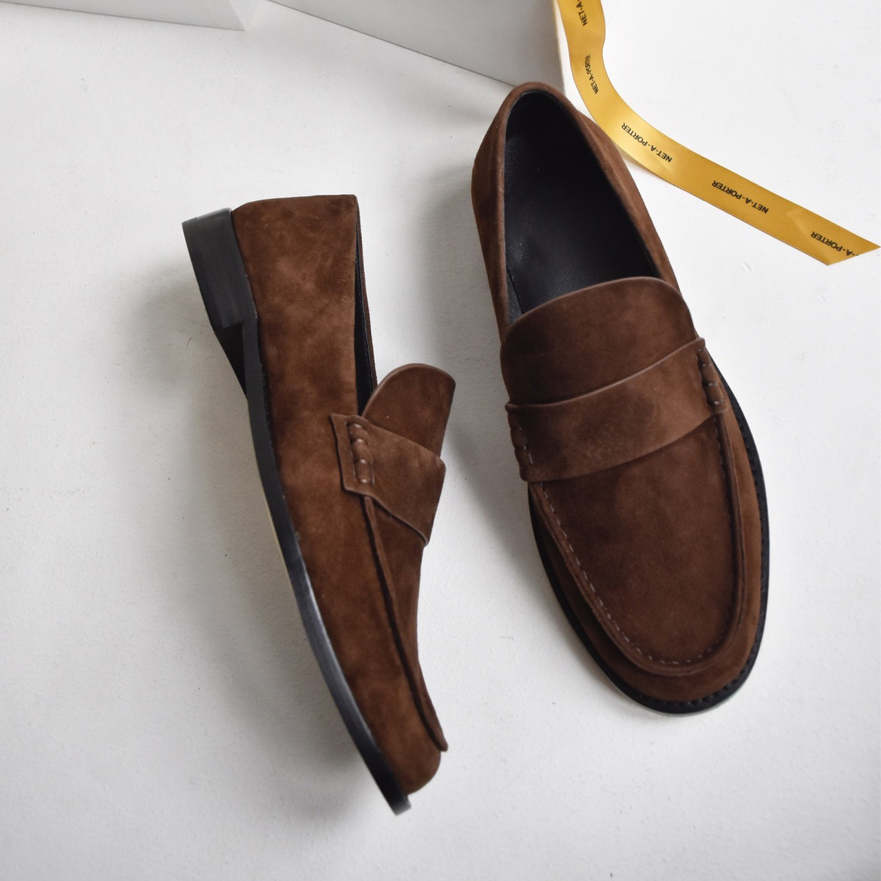 THEROW 미니멀리스트 레트로 로퍼 Dongguan 순수 오리지널 고품질 대학 스타일 여성용 작은 가죽 신발