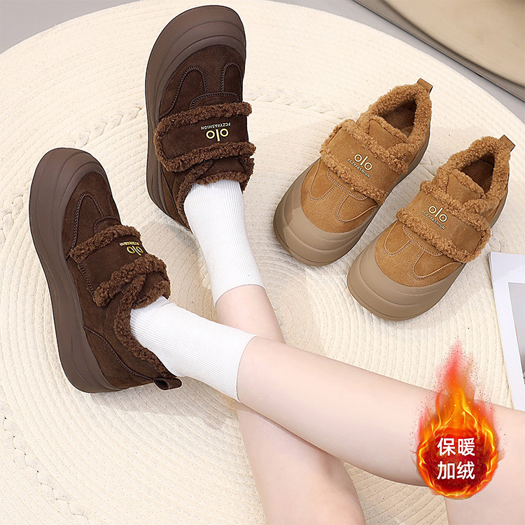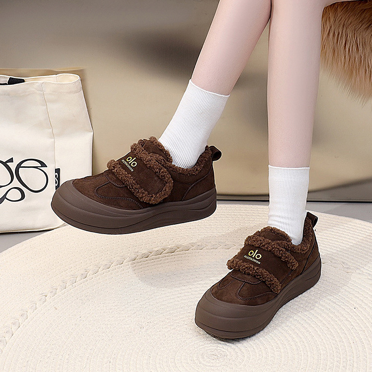 겨울 신상품 대형 여성화 41~43 사이즈, 패셔너블한 레트로 스타일의 플리스 안감 운동화, 플리스 안감의 따뜻한 대형 솜덧신