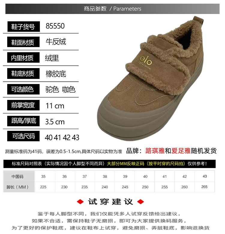 | 鞋垫材质 | 人造毛 | 款式 | 加绒棉鞋 |