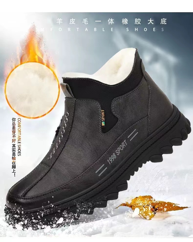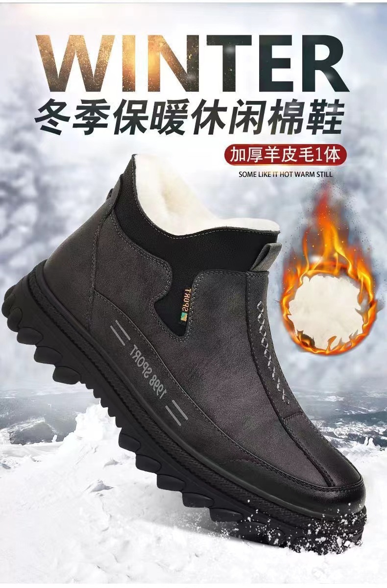 벨벳으로 두꺼워진 겨울 면화, 따뜻한 남성화, 미끄럼 방지 가죽 방수 캐주얼 신발, 내마모성 작업화, 국경 간 도매