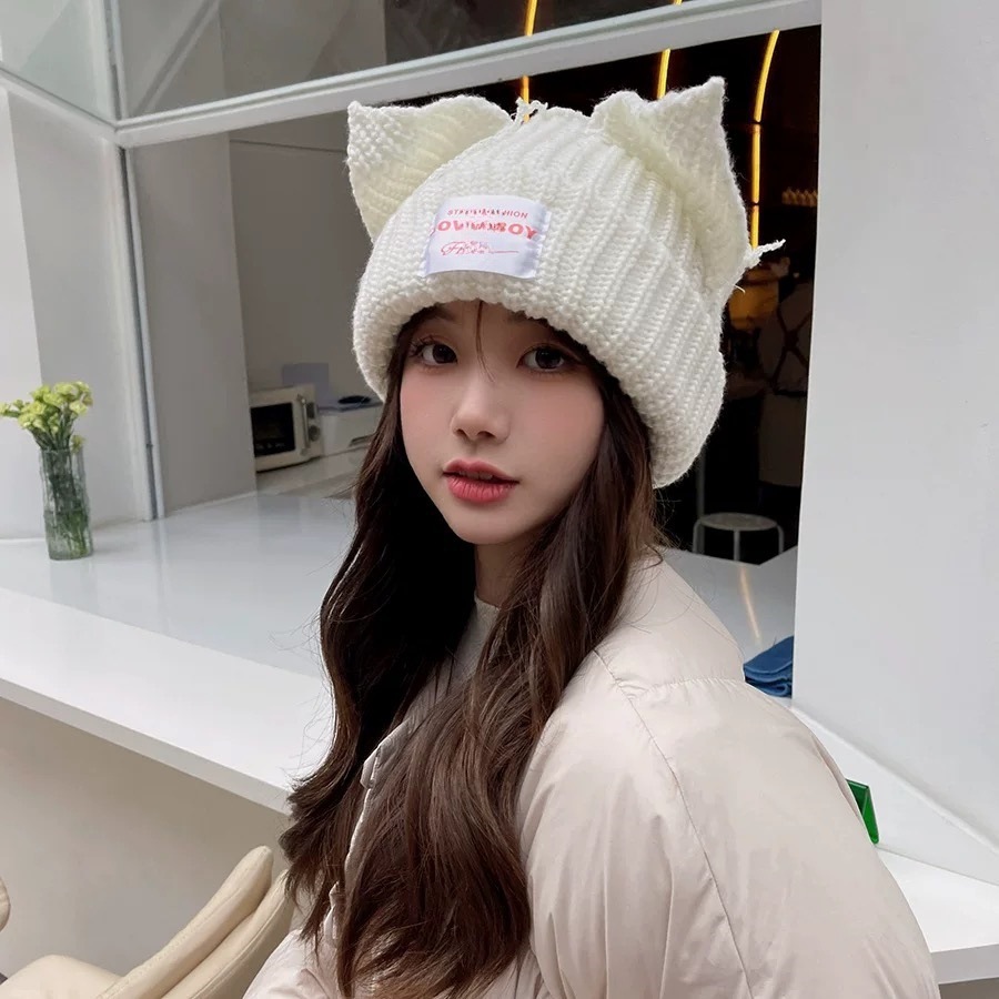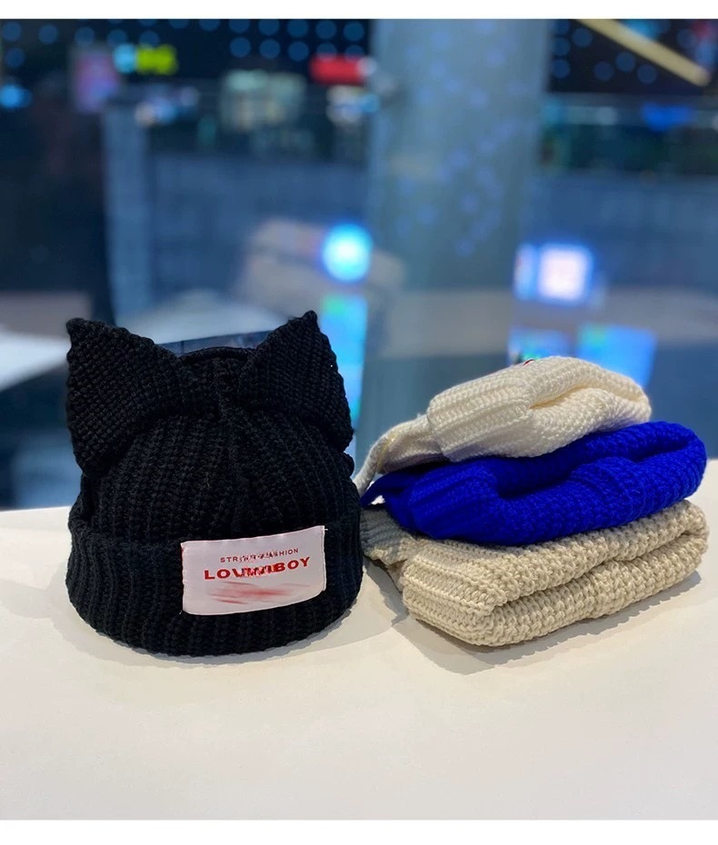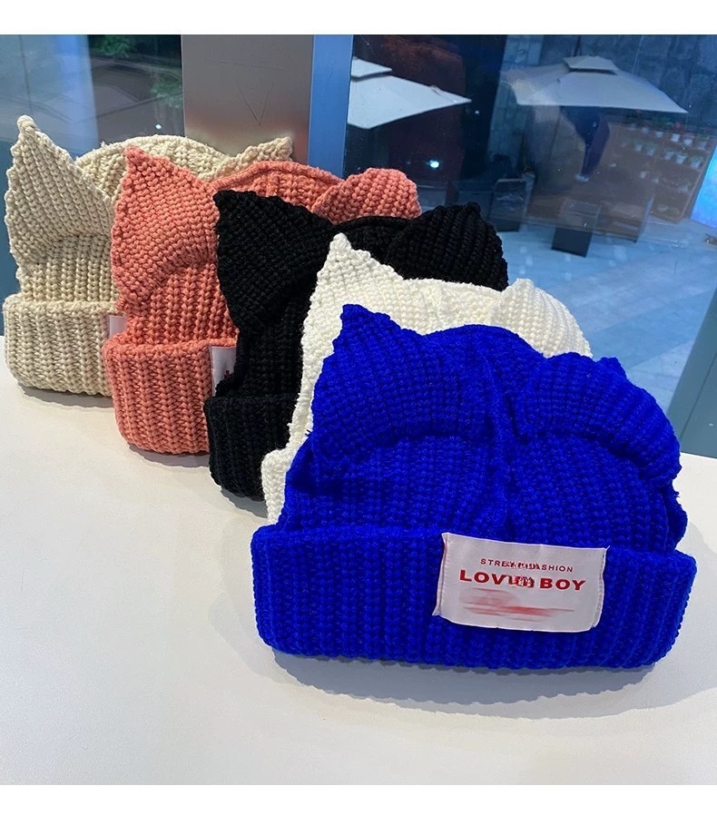 돼지 귀 커플 겨울 여성 모직 모자 니트 모자 고양이 가을, 겨울 따뜻한 유럽과 미국의 맞춤형 모자 남성 틈새 귀여운