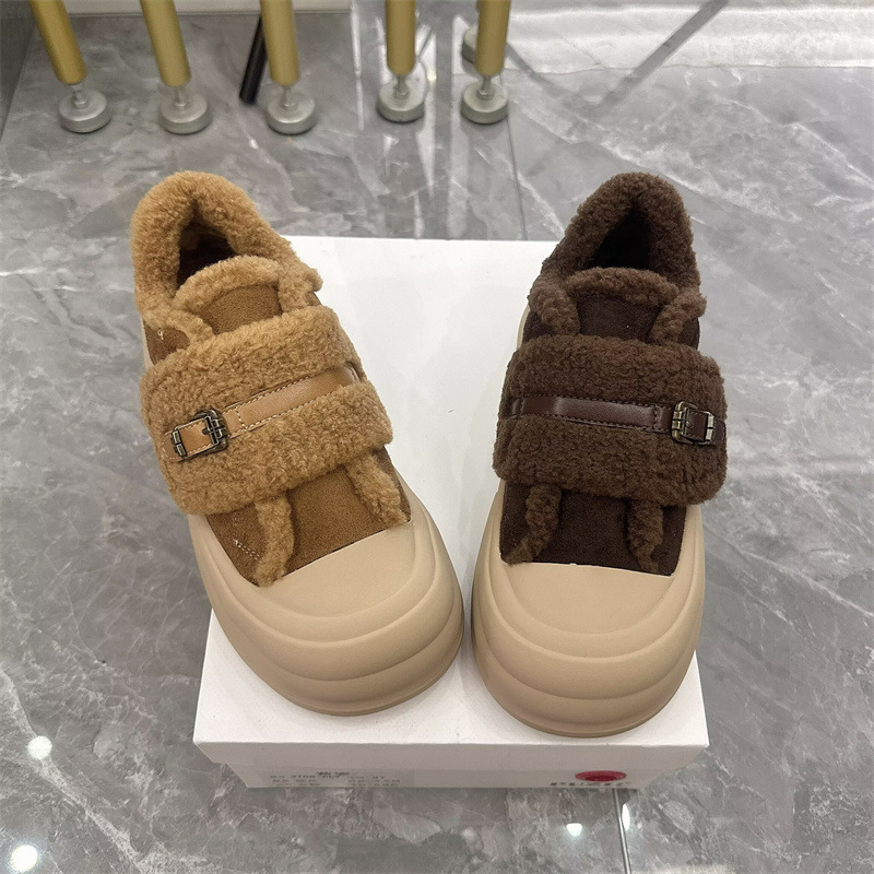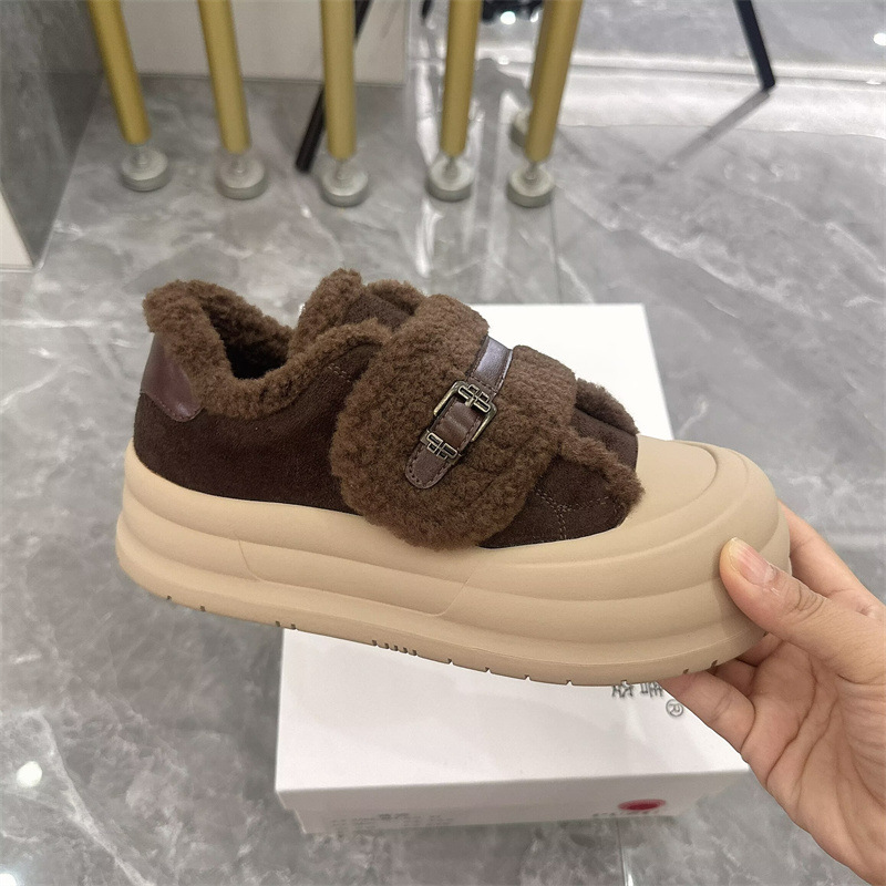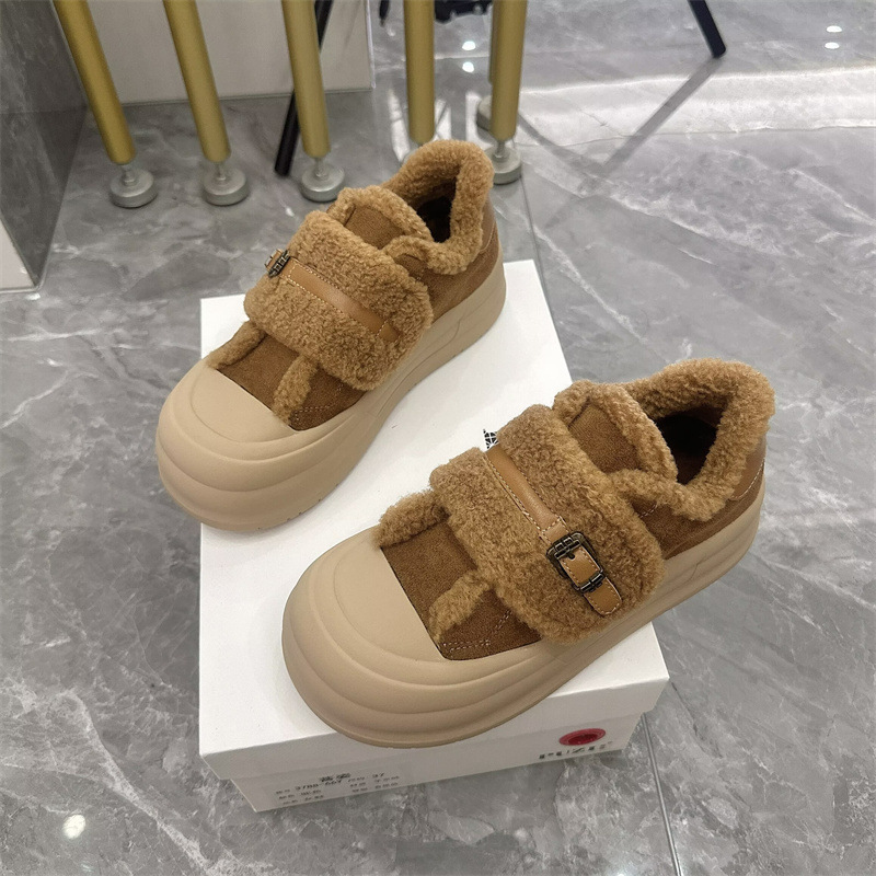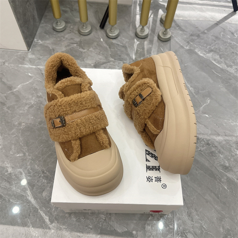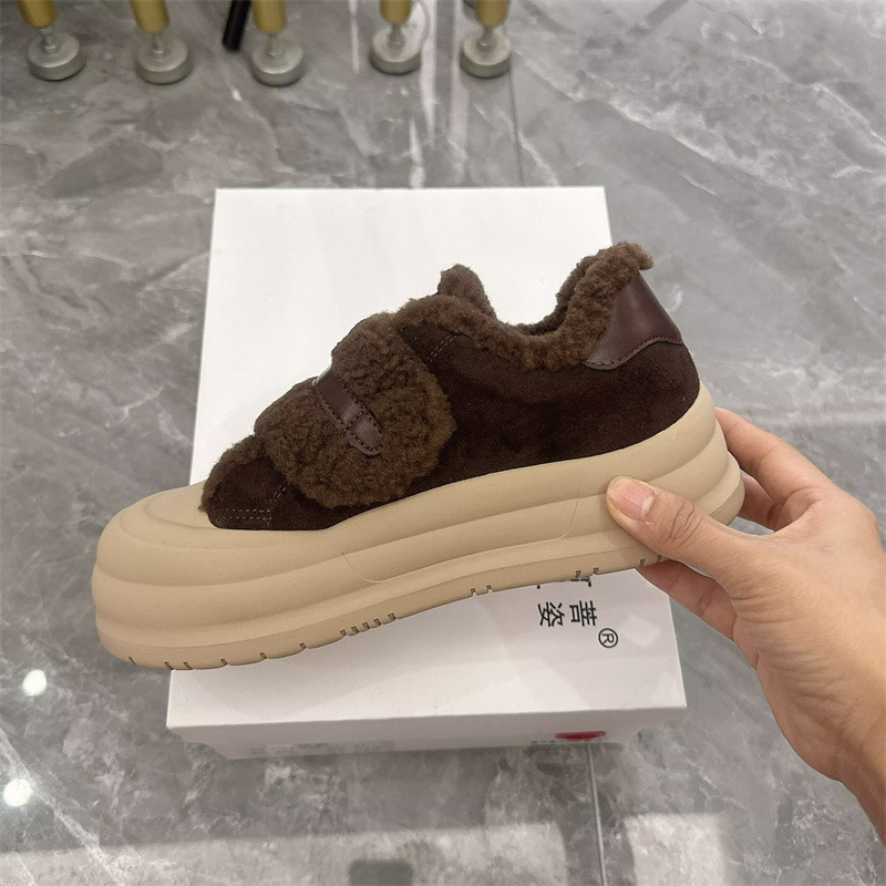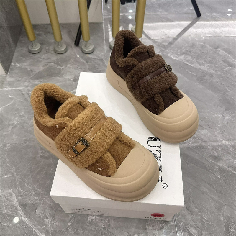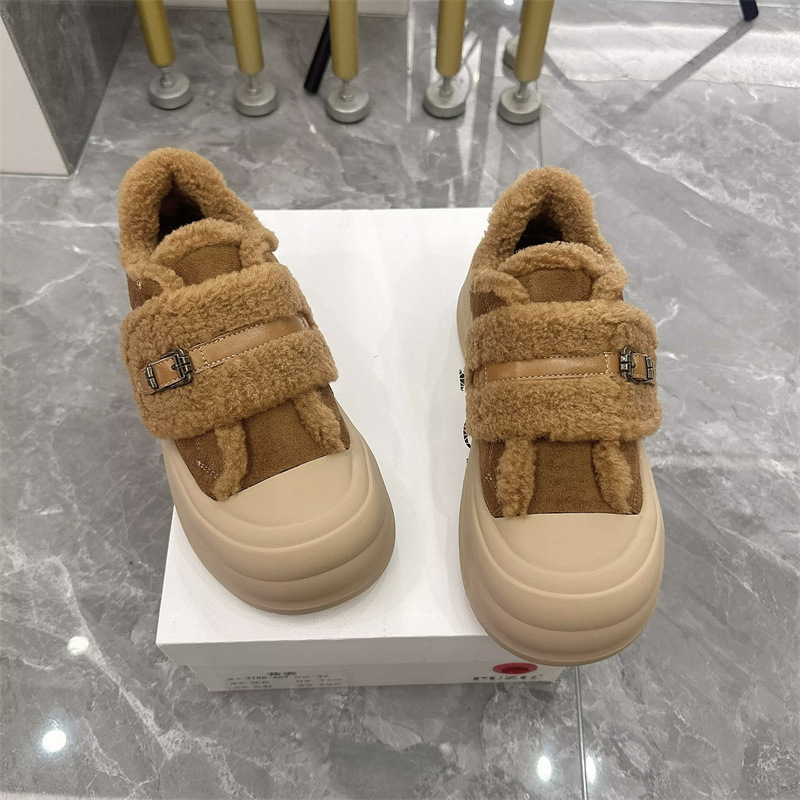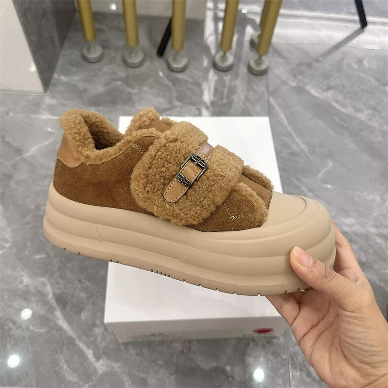 2025 벨크로 모피 신발 여성 신발 두꺼운 밑창 따뜻한 스노우 부츠 플러스 벨벳 다목적 빵 신발 겨울 면화 3788