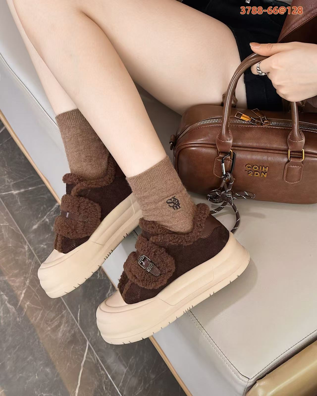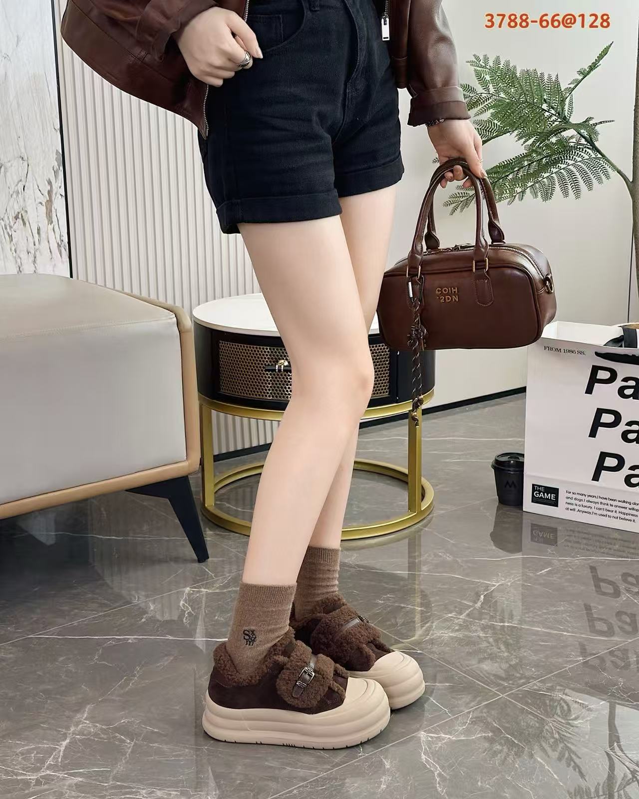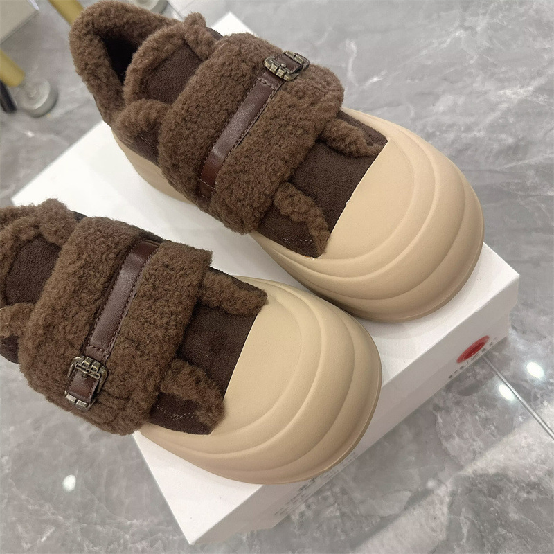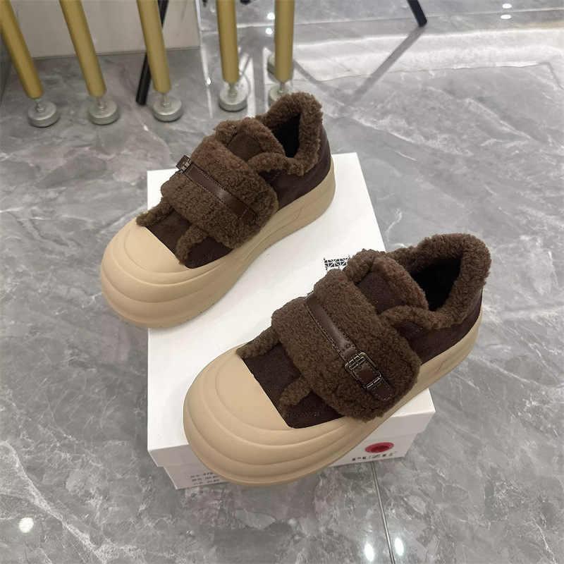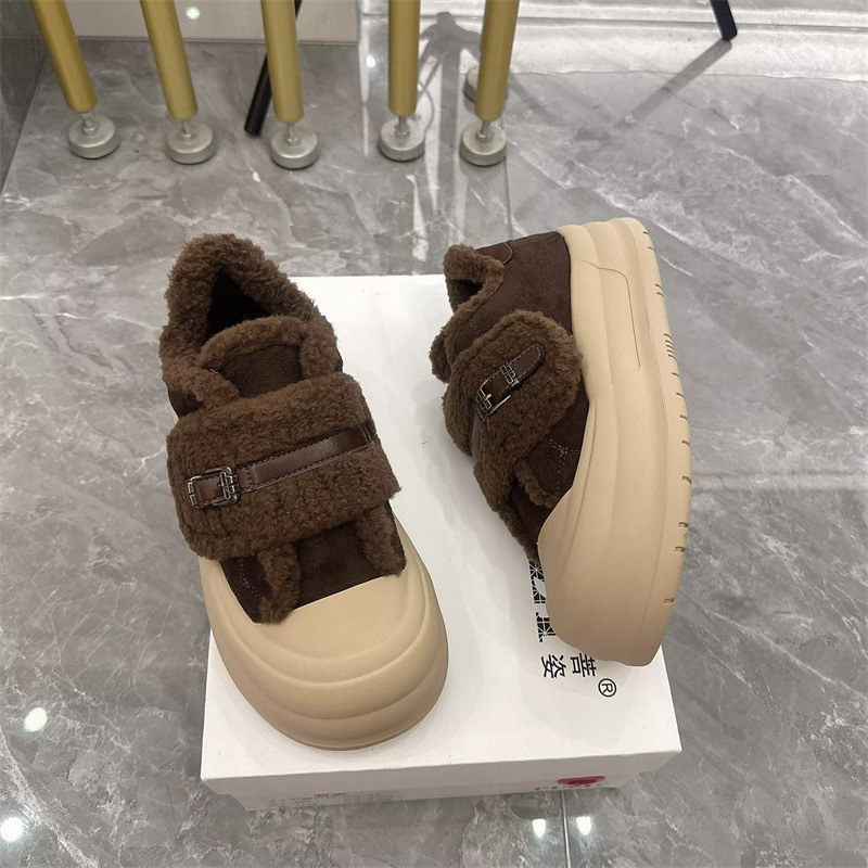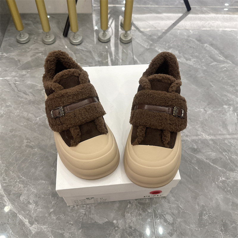 2025 벨크로 모피 신발 여성 신발 두꺼운 밑창 따뜻한 스노우 부츠 플러스 벨벳 다목적 빵 신발 겨울 면화 3788