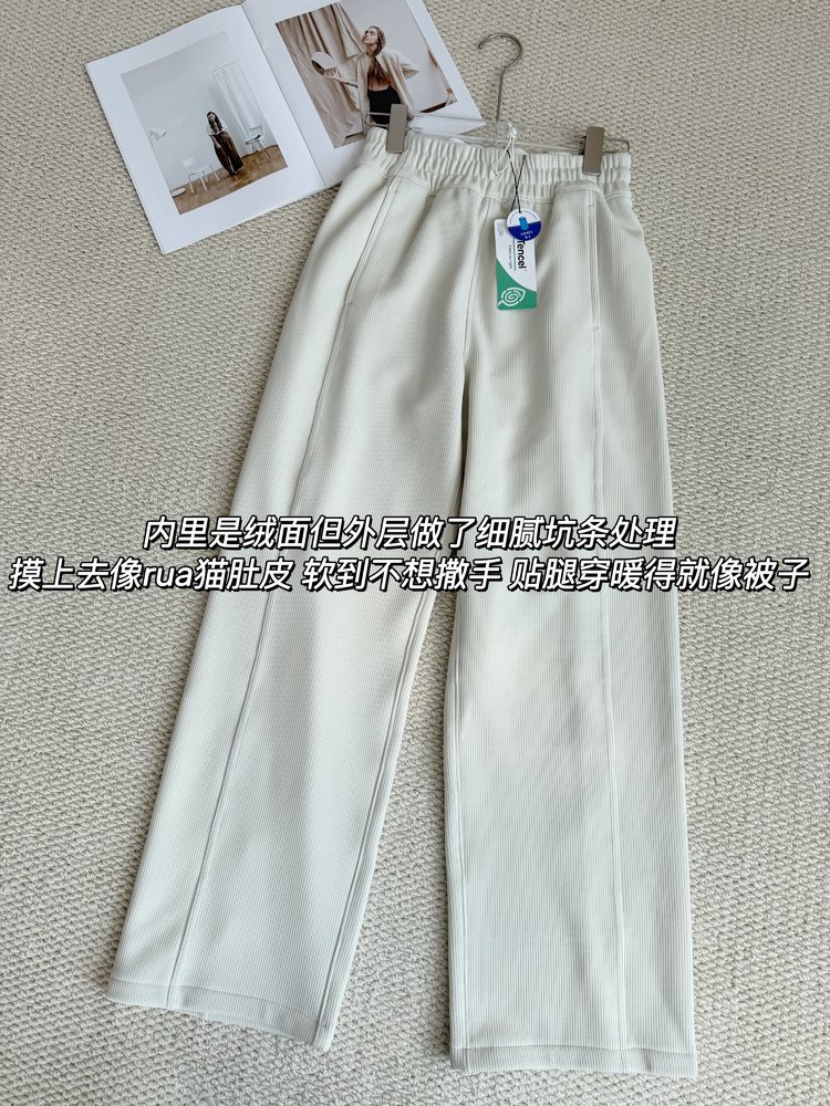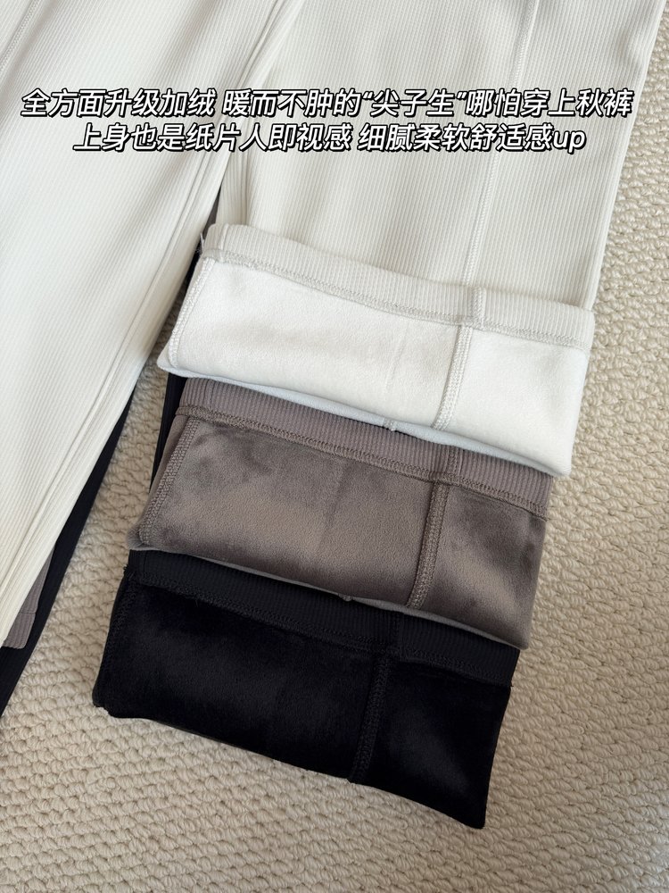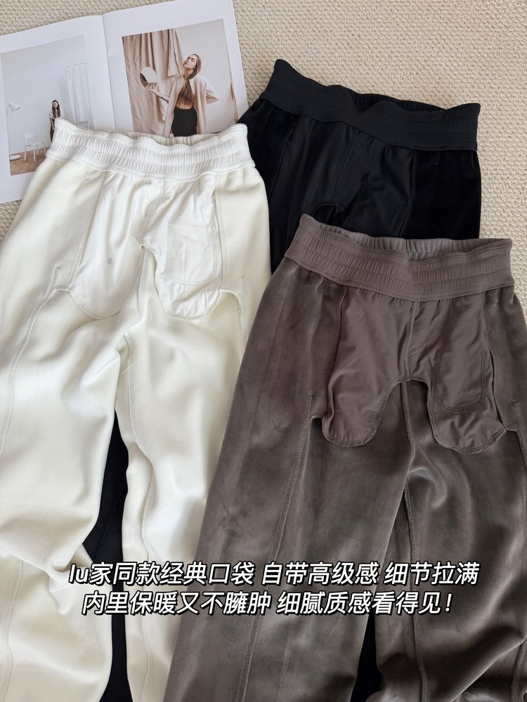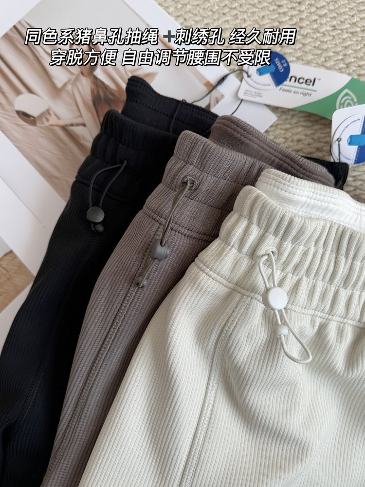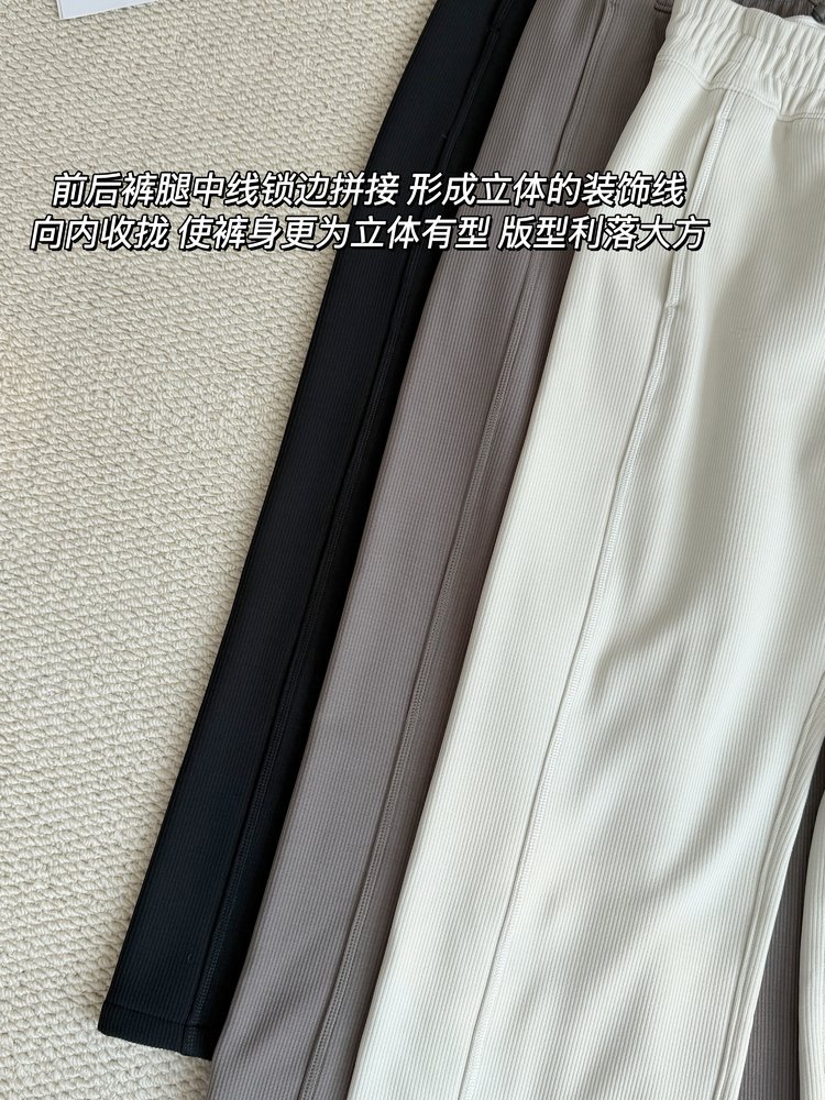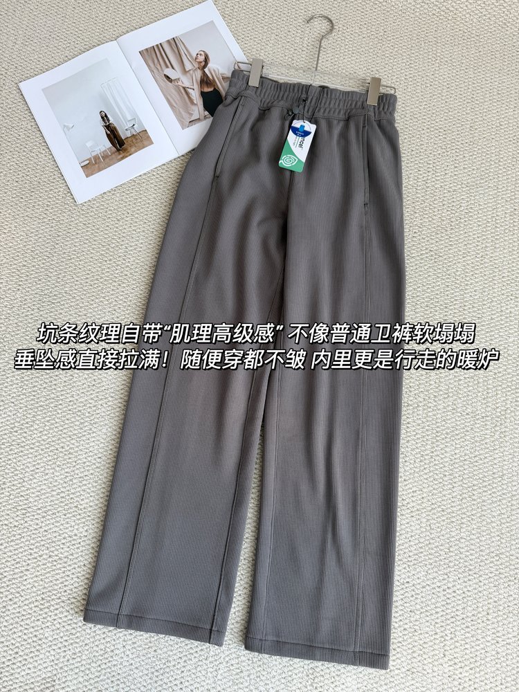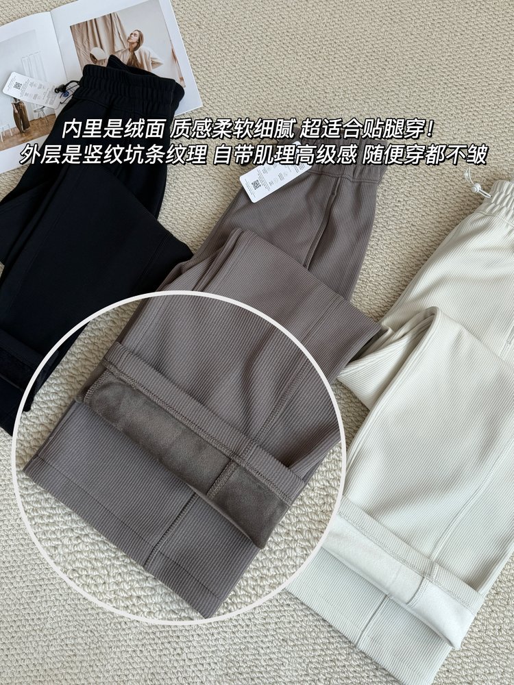 2025 룰루 플러스 벨벳 버전의 신축성 있는 바지와 같은 스타일의 골지 바지 캐주얼 와이드 팬츠 여성용 미드 웨이스트 바지