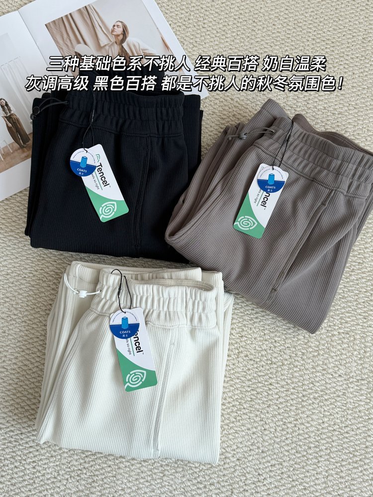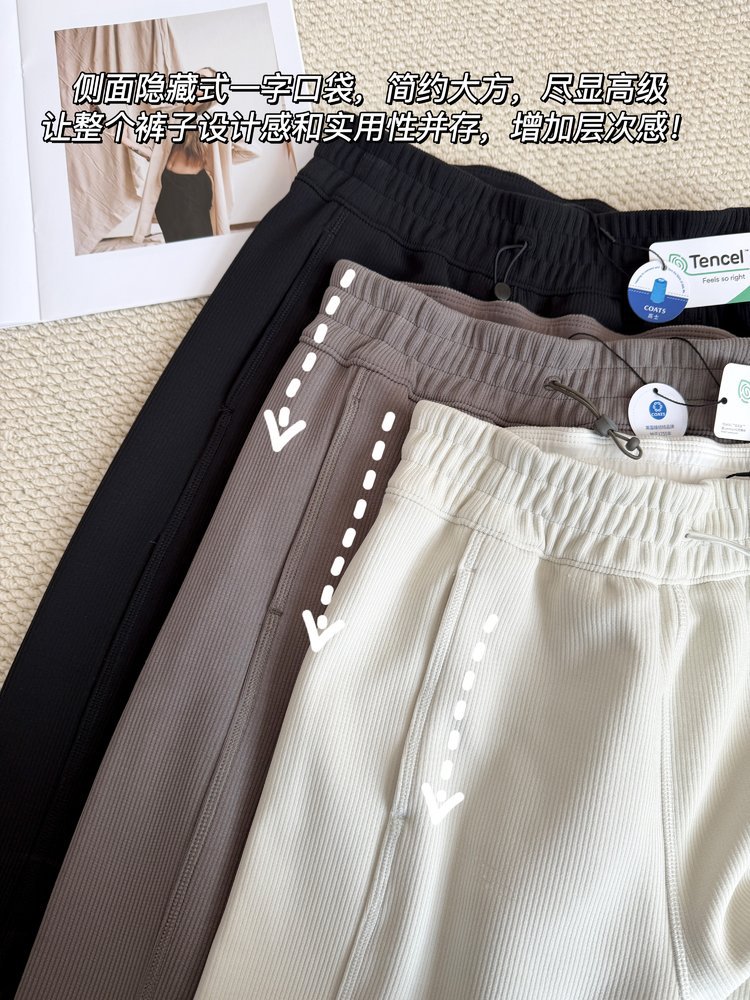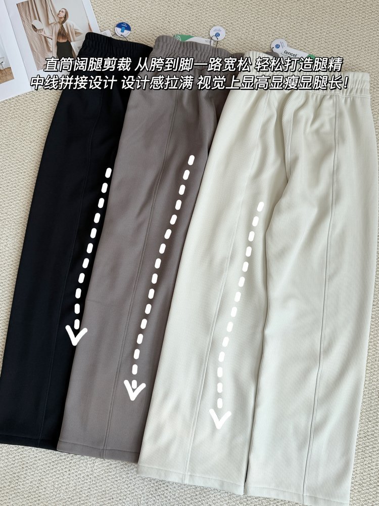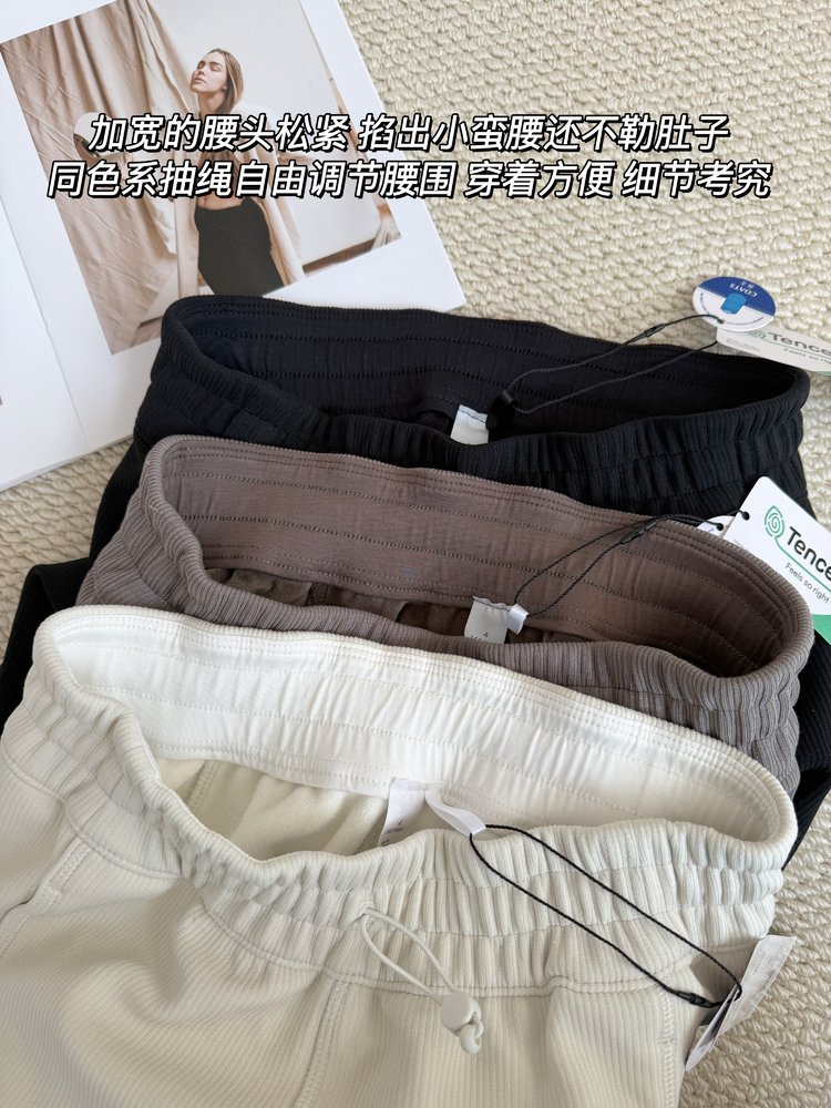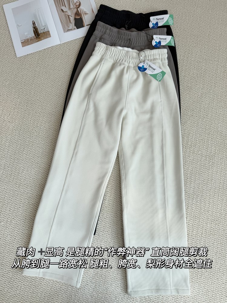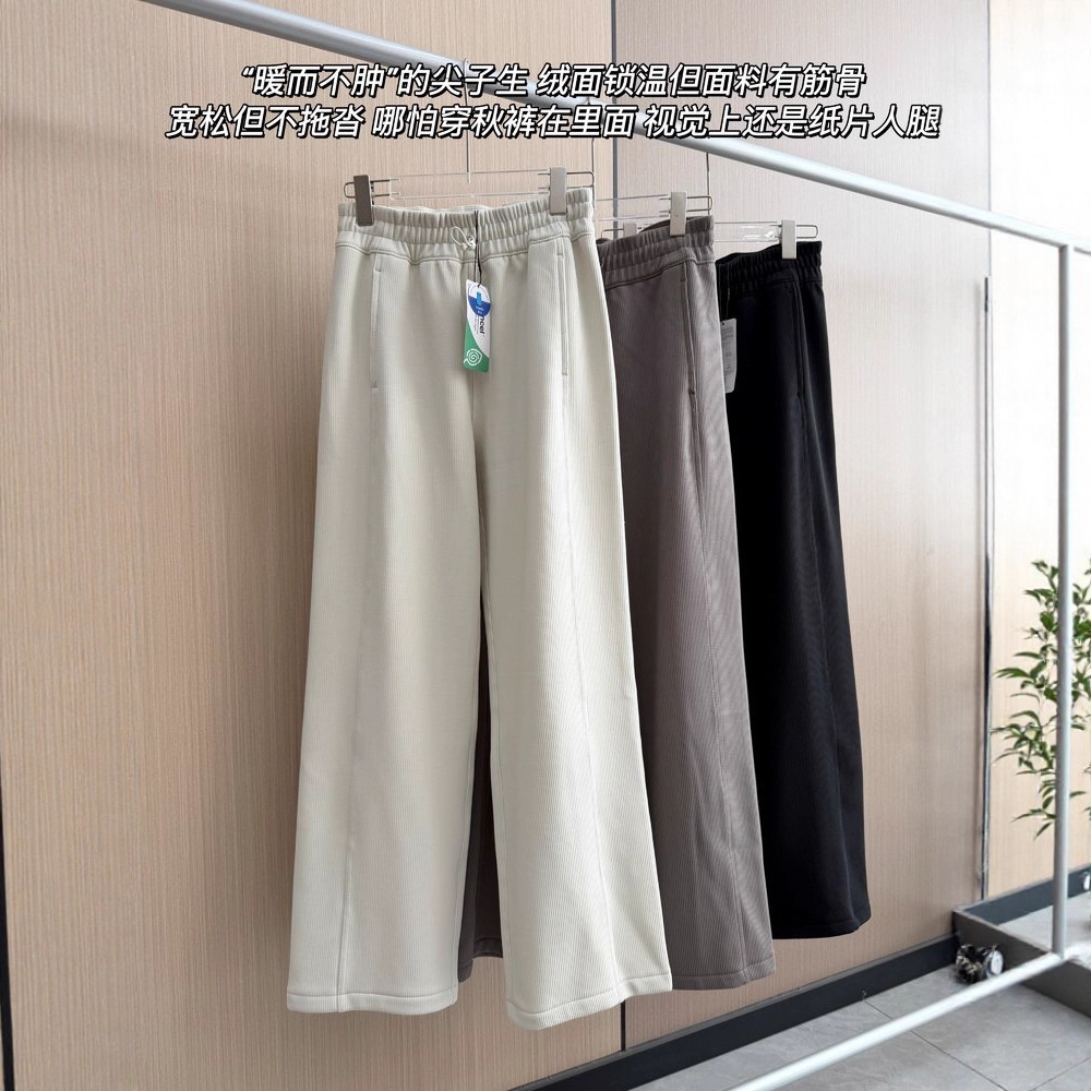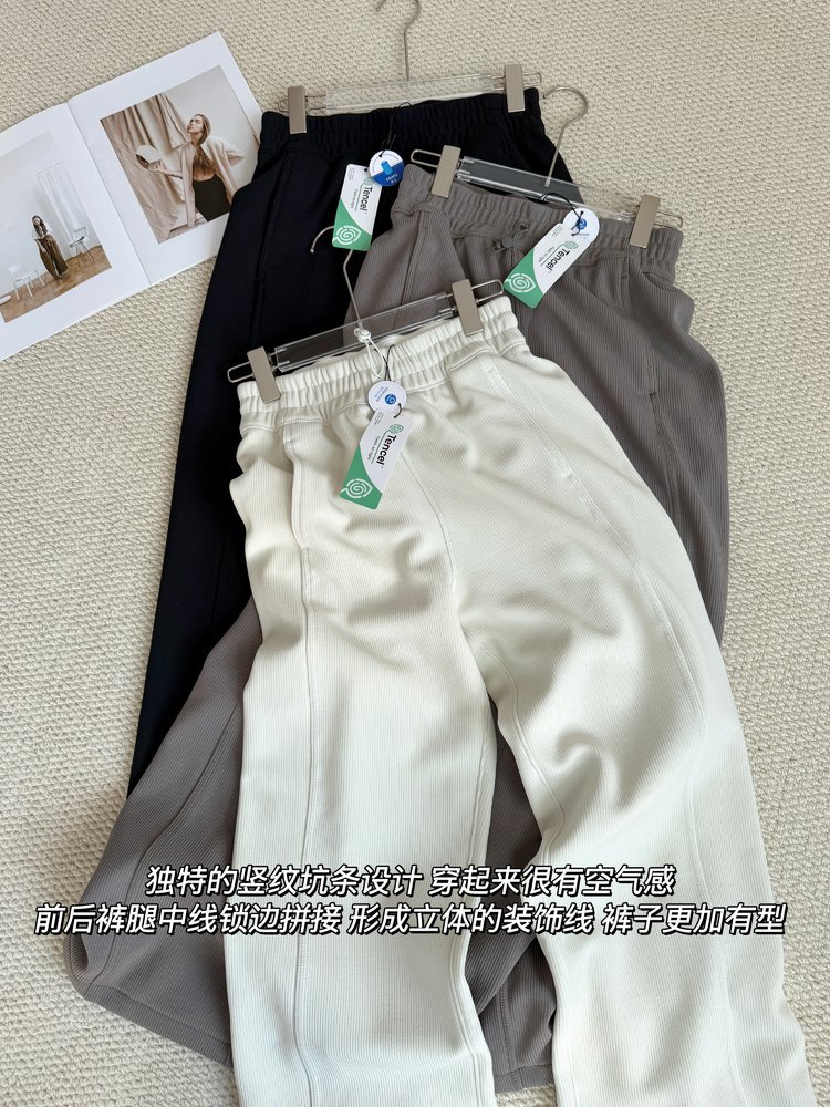2025 룰루 플러스 벨벳 버전의 신축성 있는 바지와 같은 스타일의 골지 바지 캐주얼 와이드 팬츠 여성용 미드 웨이스트 바지
