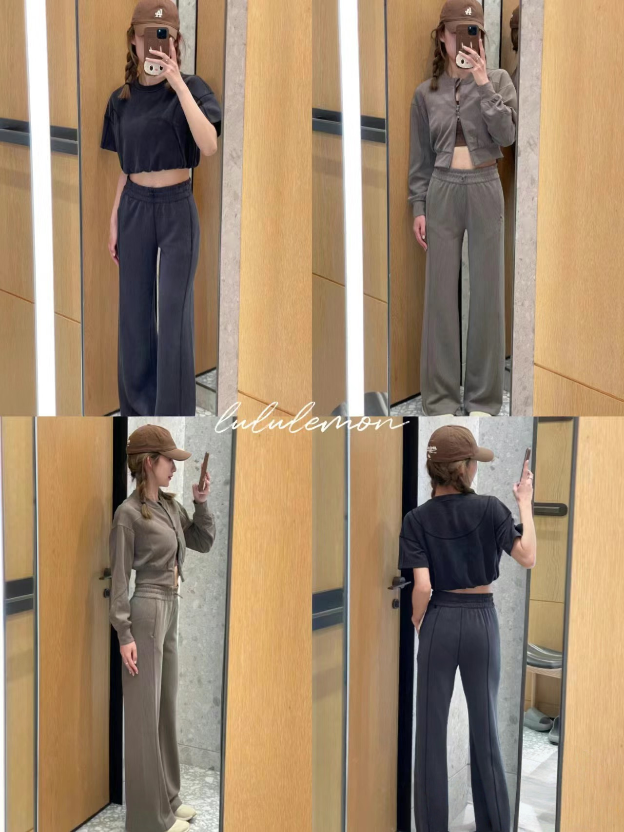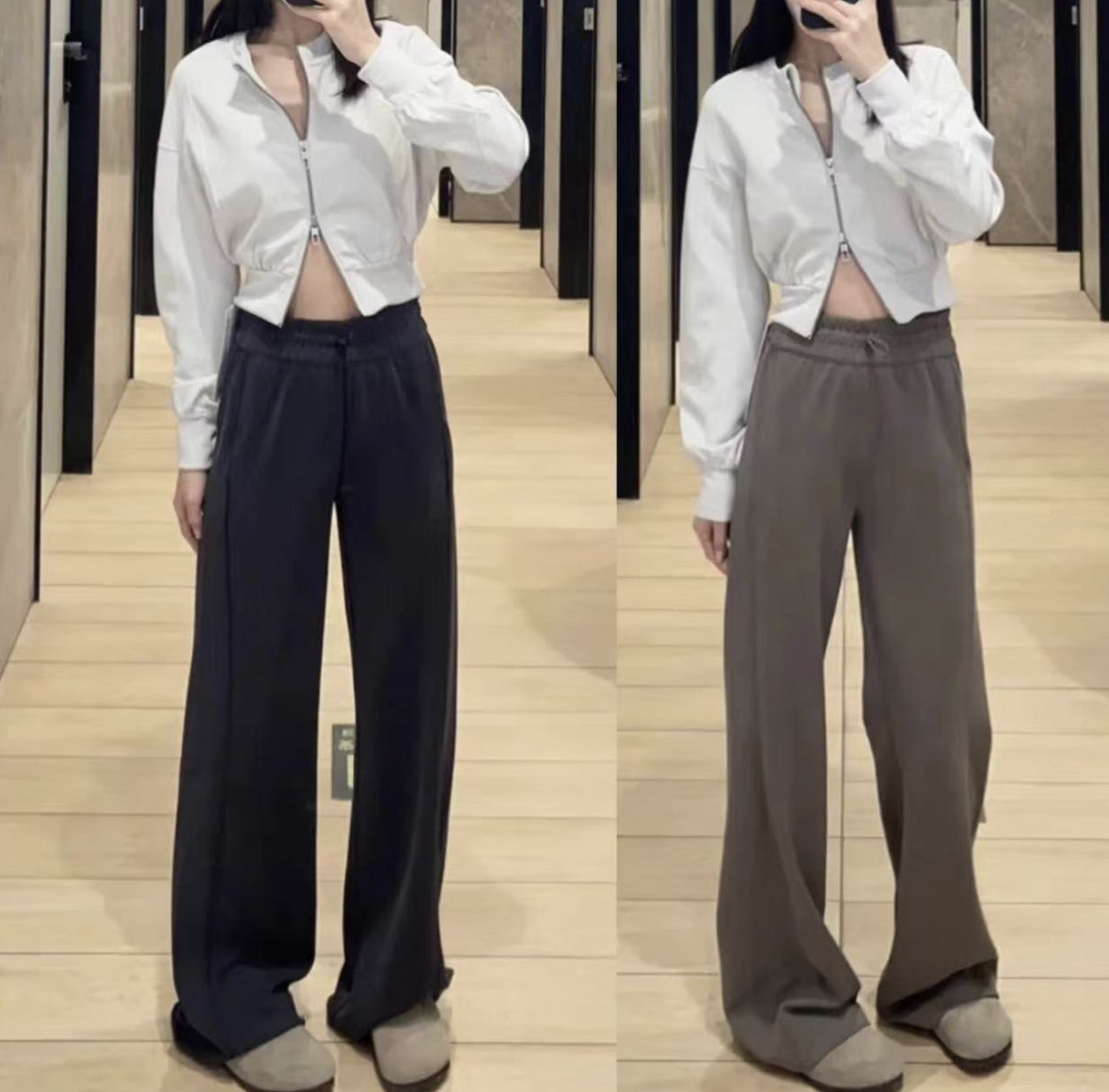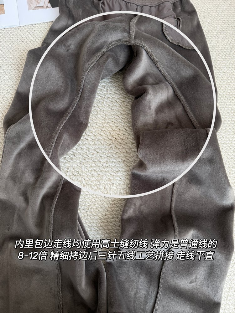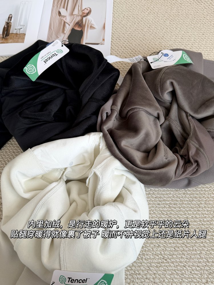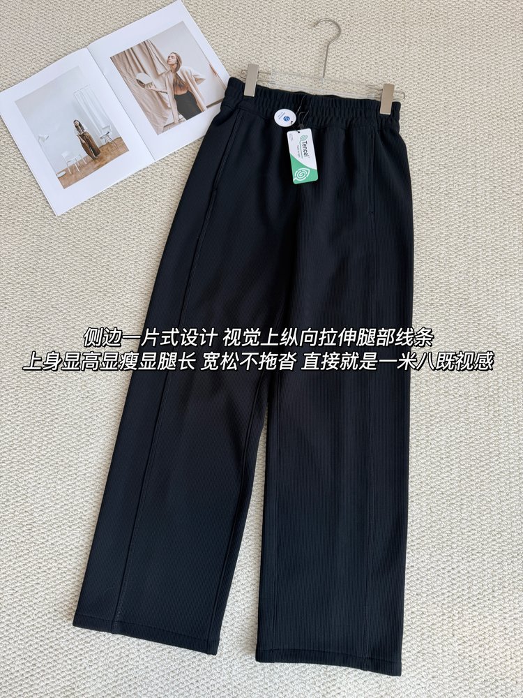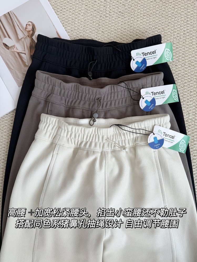 2025 룰루 플러스 벨벳 버전의 신축성 있는 바지와 같은 스타일의 골지 바지 캐주얼 와이드 팬츠 여성용 미드 웨이스트 바지