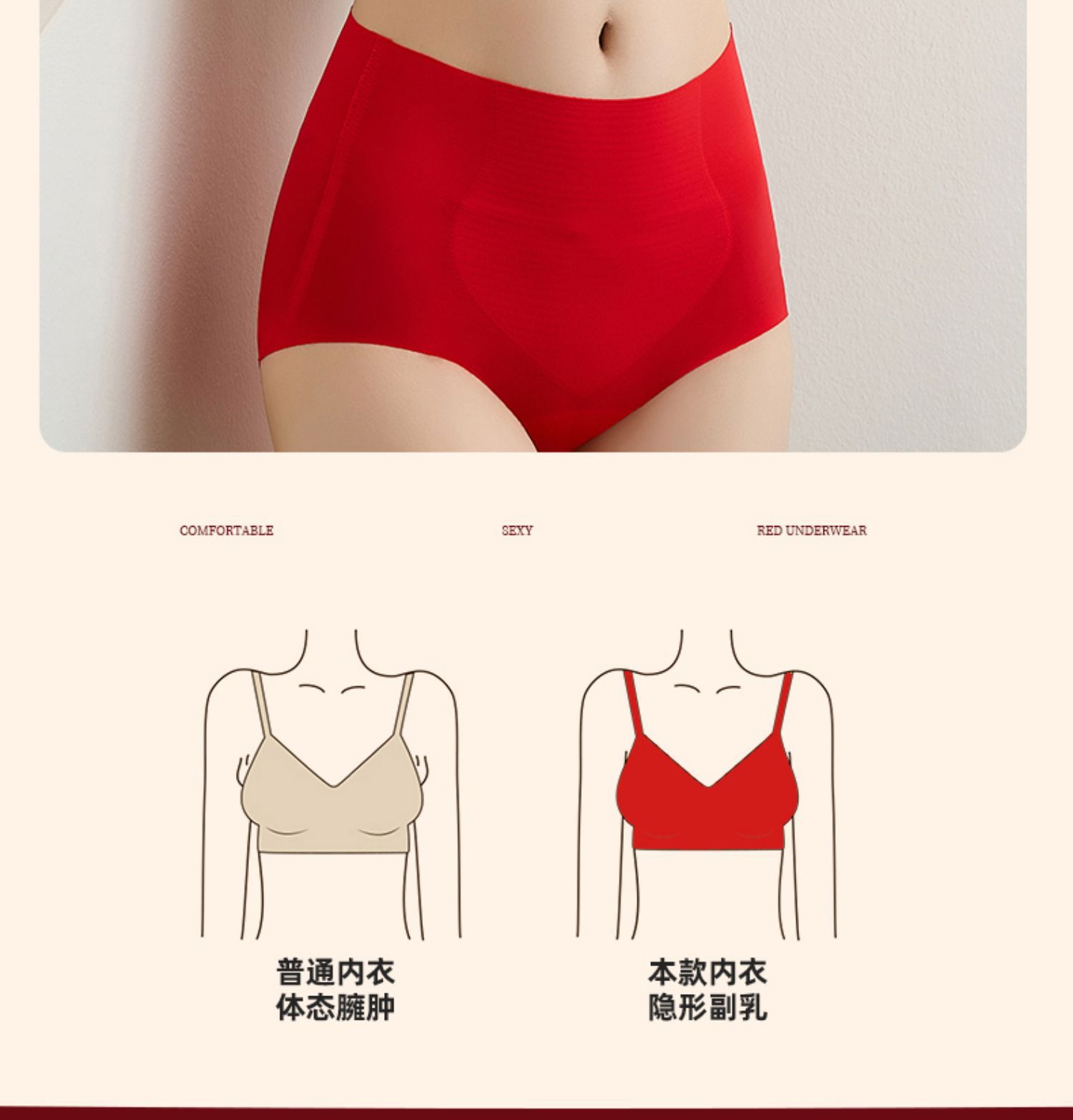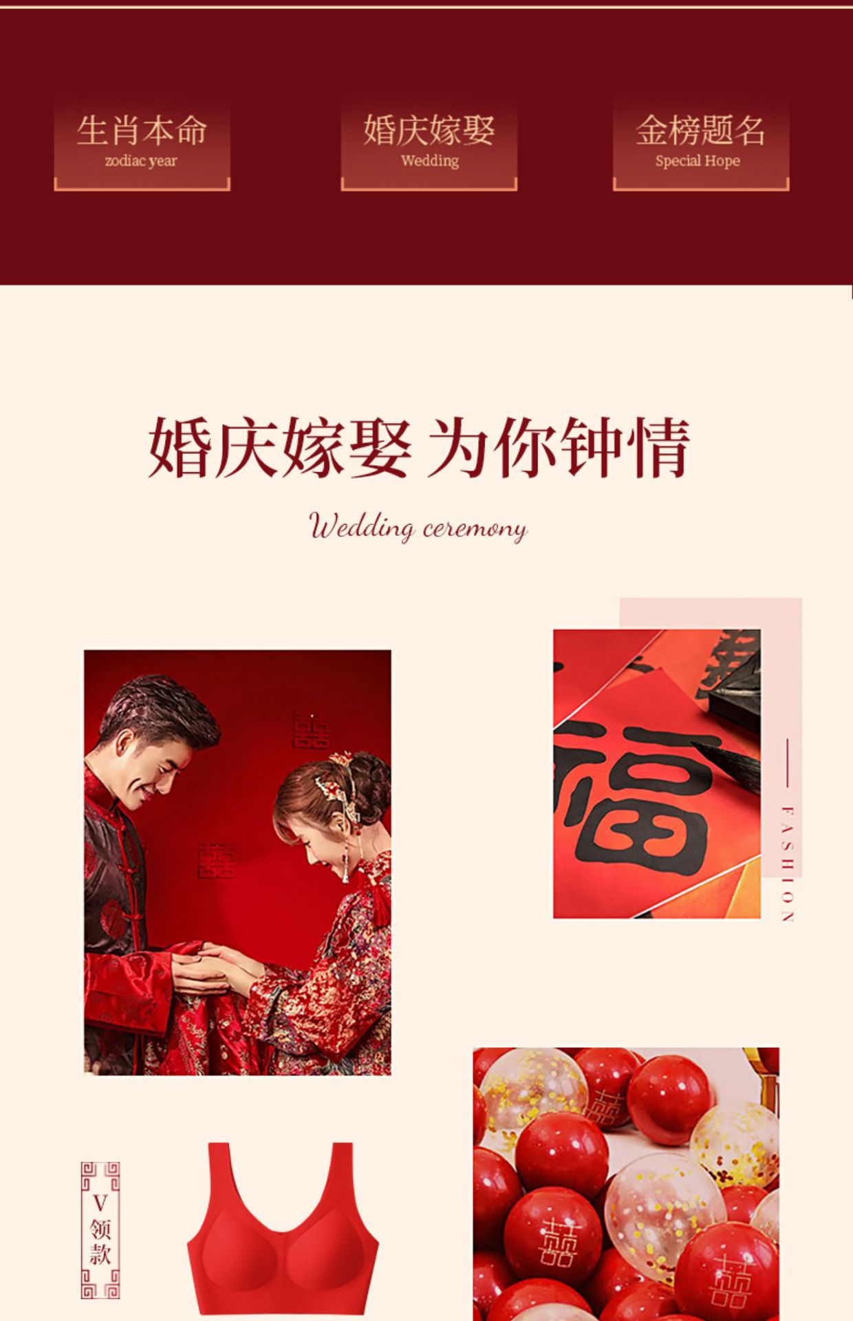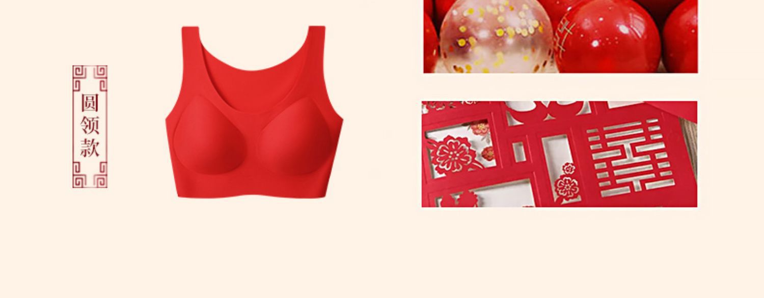 고정컵, 흔적없는 빨간색 속옷, 여성복, 무테 브라, 결혼식 신부, 뱀의 해