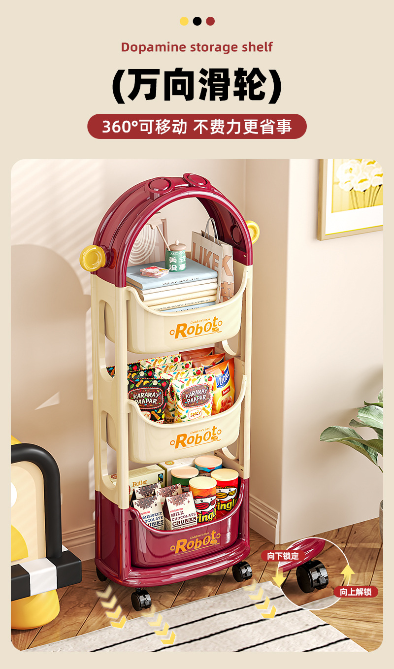 스낵 트롤리 보관함 도파민 색상 일치 서랍 바닥 거실 이동식 홈 어린이 보관함