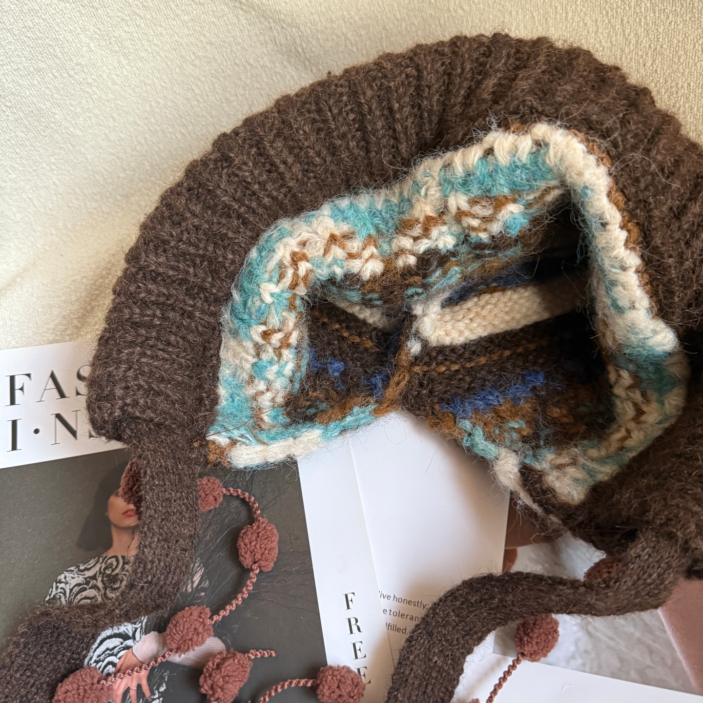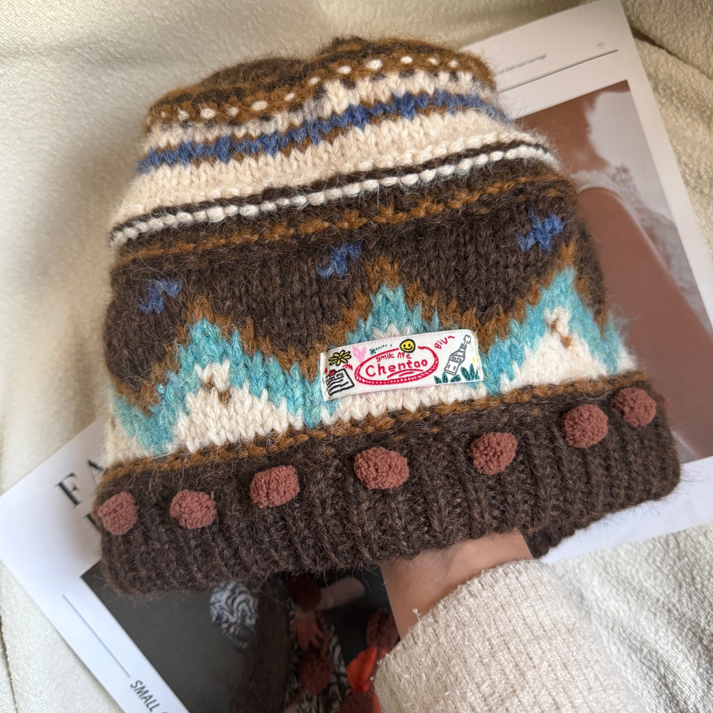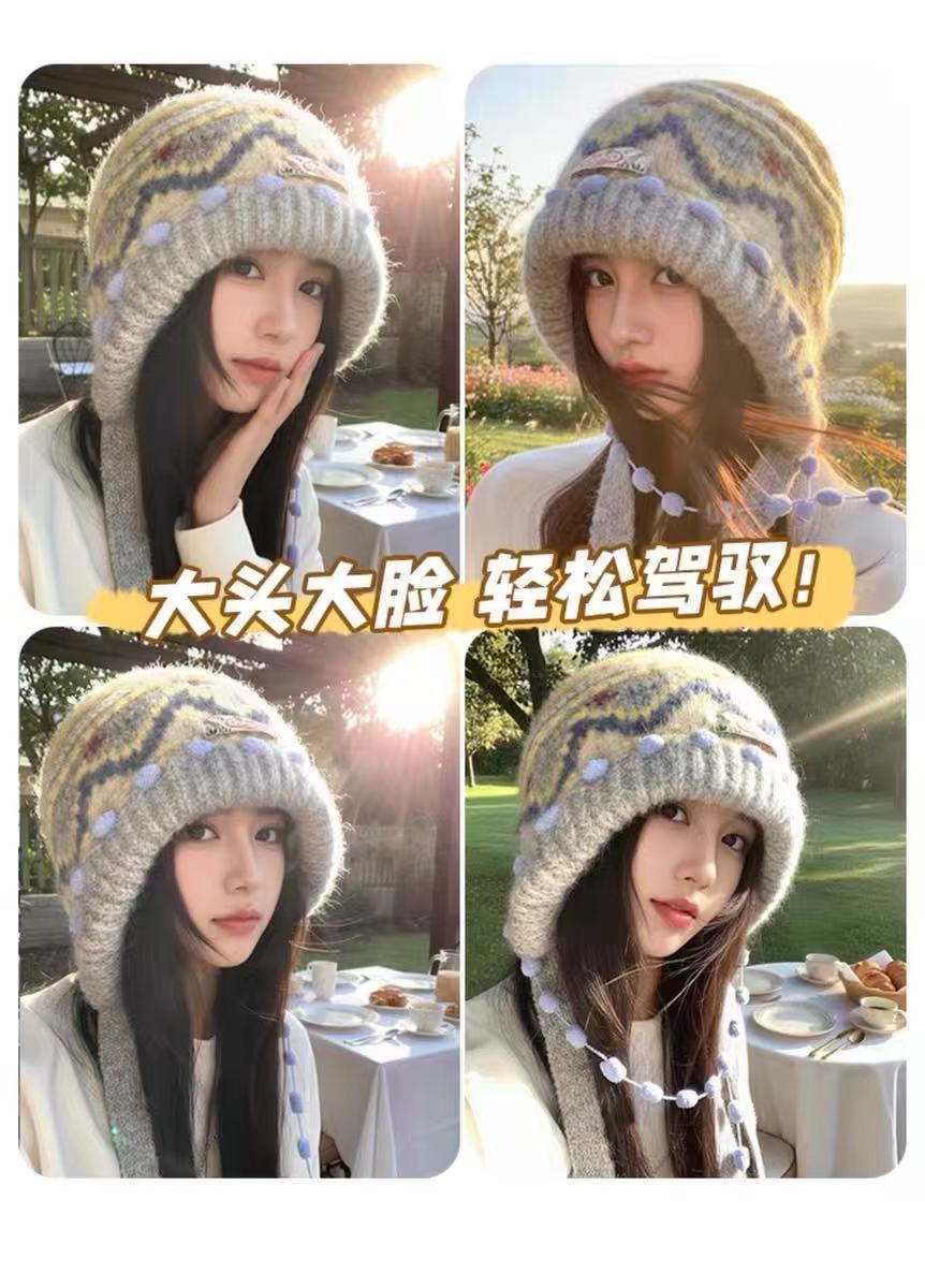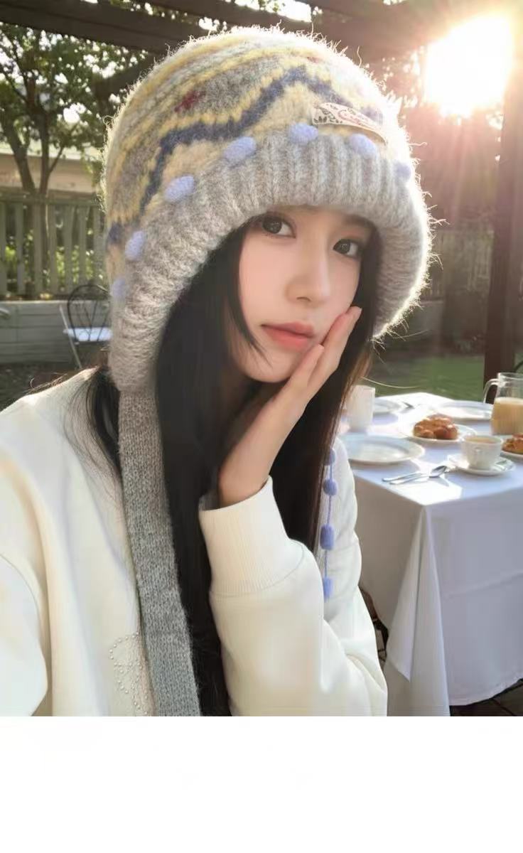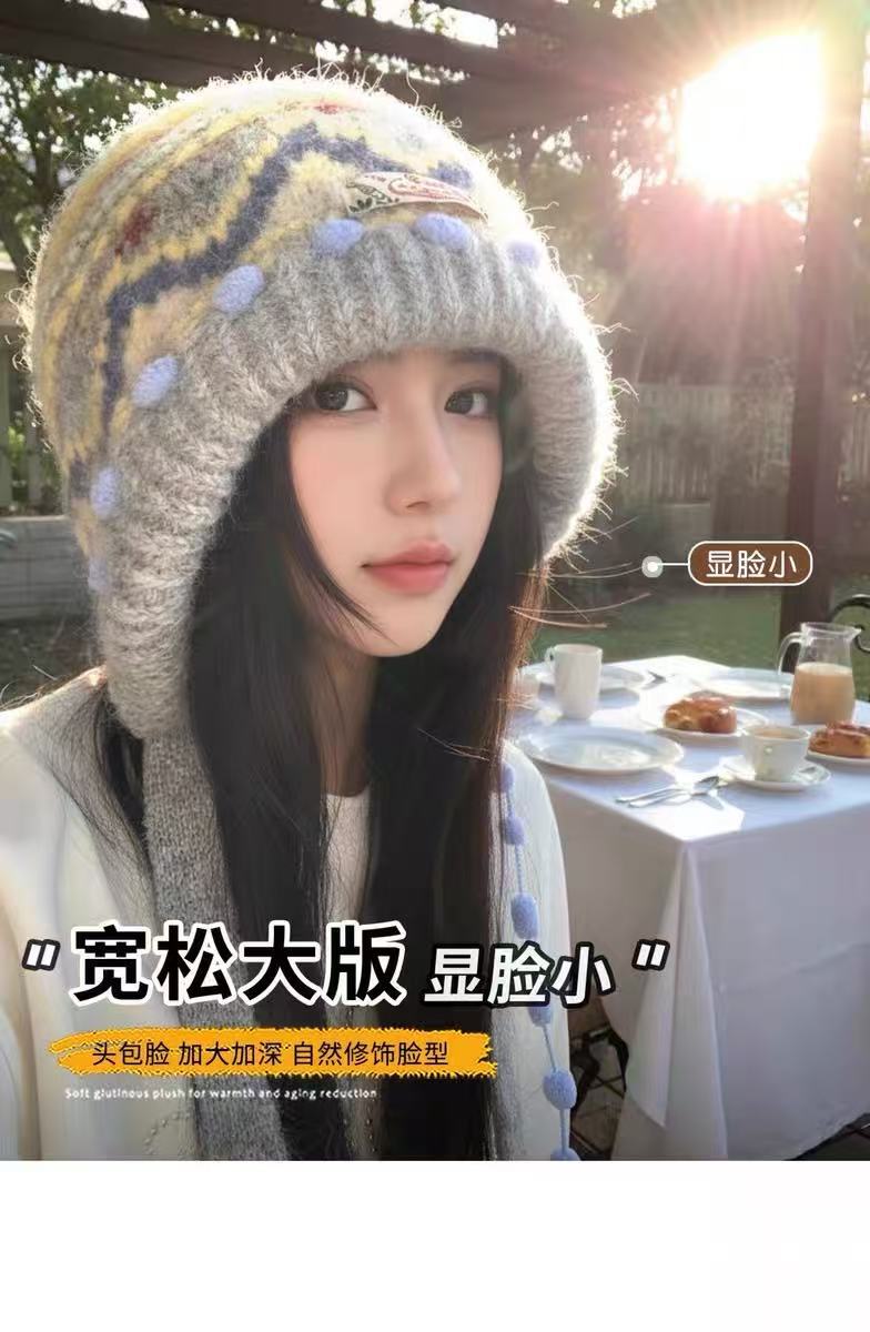 여성을위한 페어 아일 복고풍 니트 바오 터프 모자 2025 새로운 가을, 겨울 얼굴이 보이는 작은 따뜻하고 방한 귀 보호 모직 모자