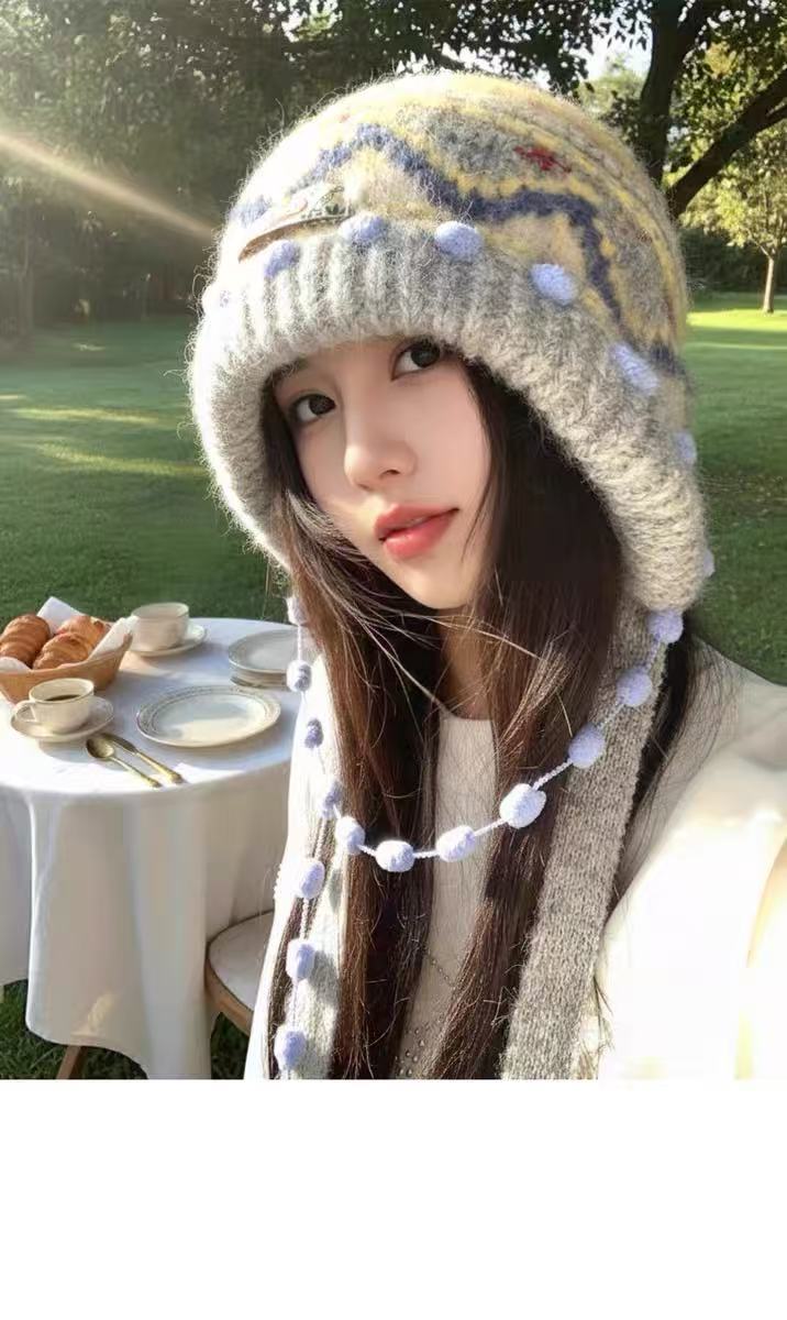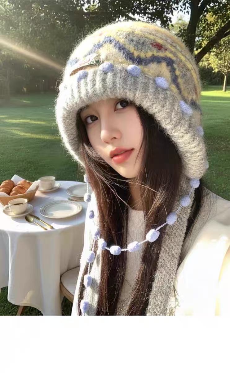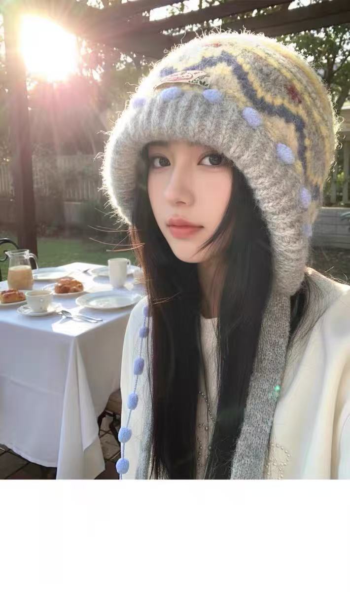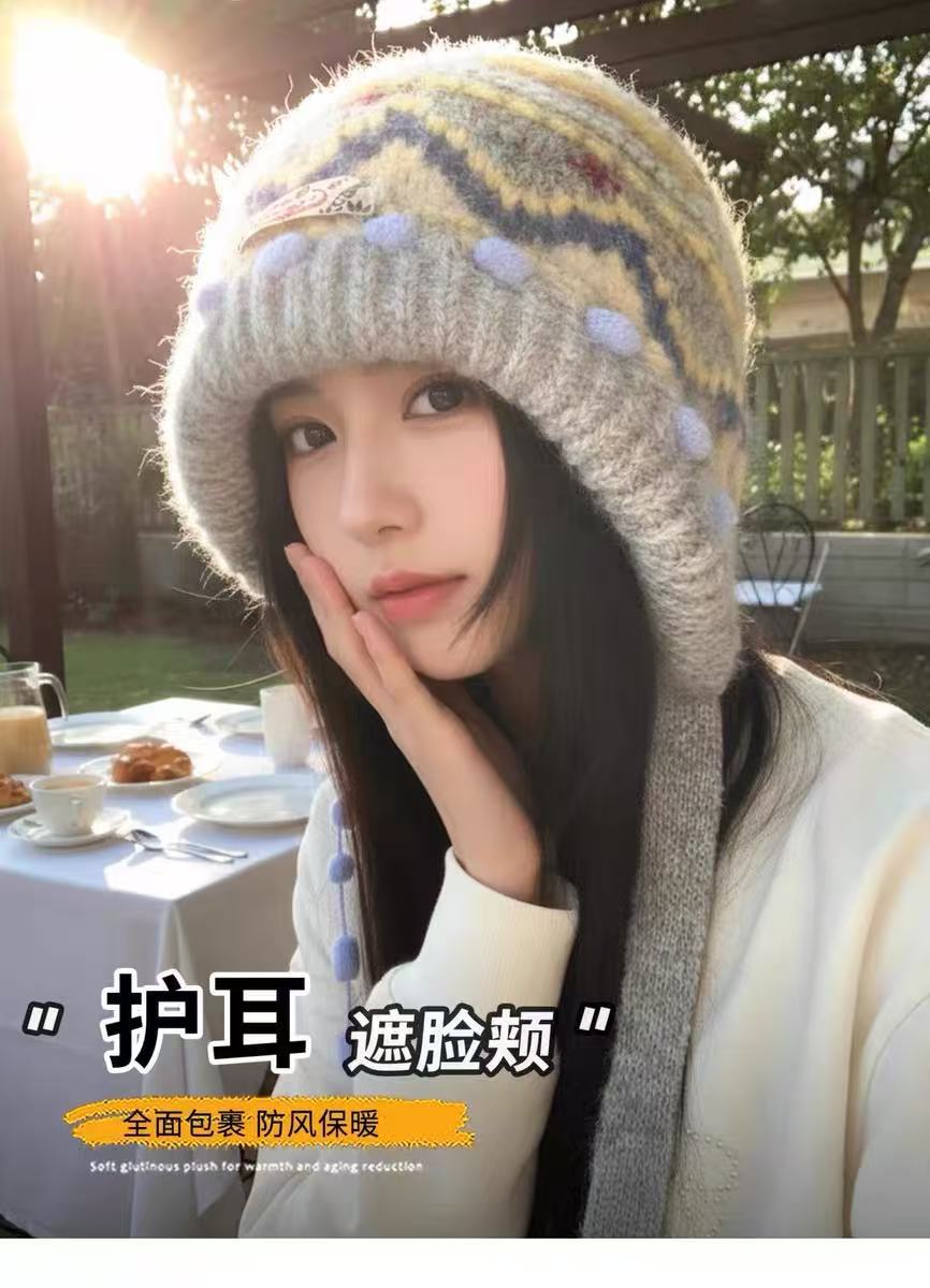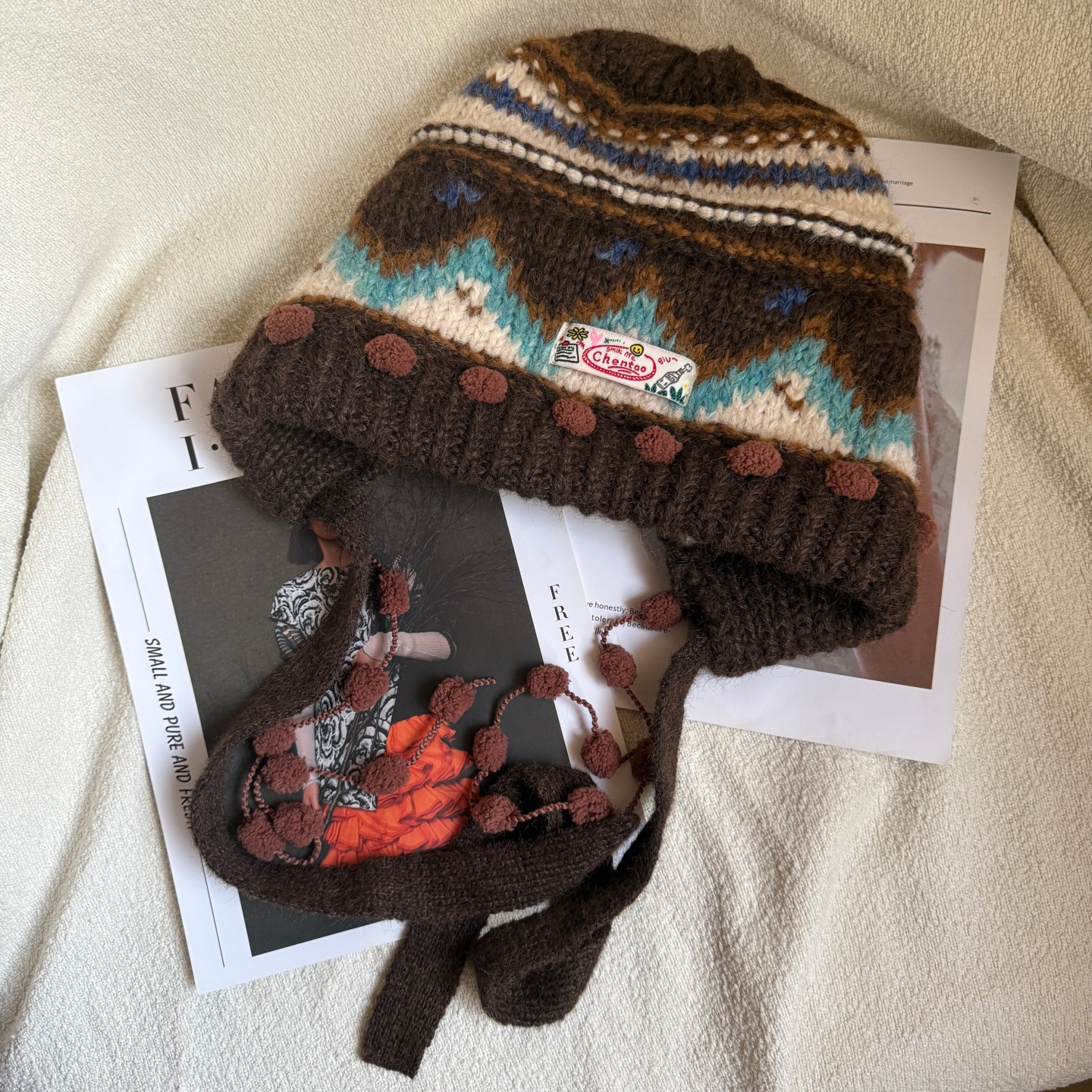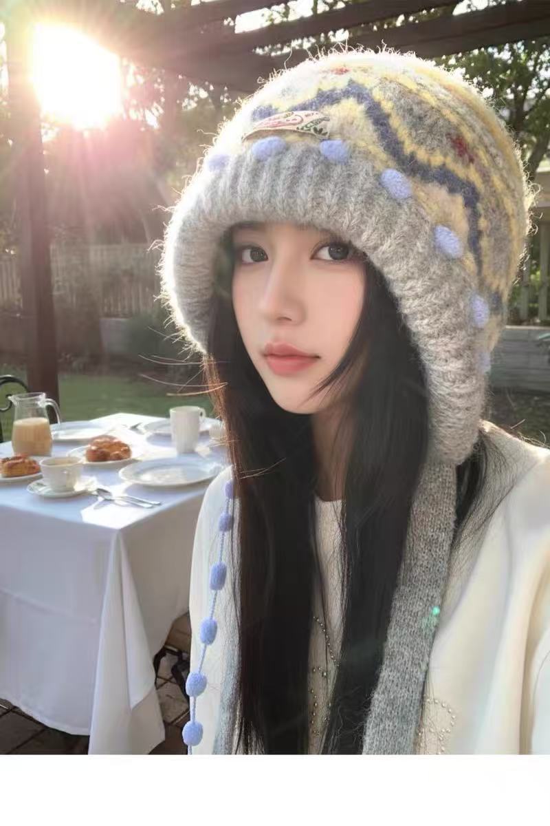 여성을위한 페어 아일 복고풍 니트 바오 터프 모자 2025 새로운 가을, 겨울 얼굴이 보이는 작은 따뜻하고 방한 귀 보호 모직 모자